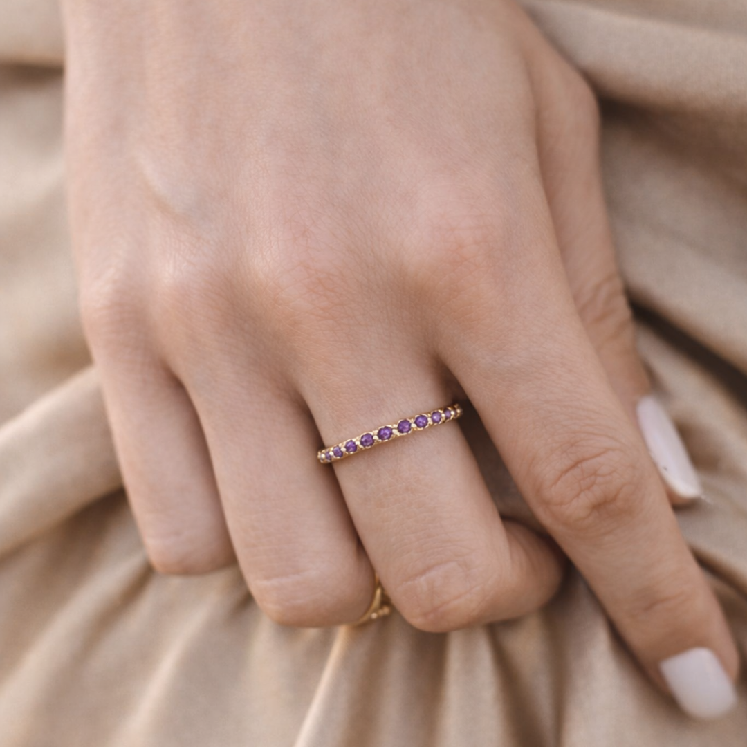 Lila Çiçekli Minimal Yüzük