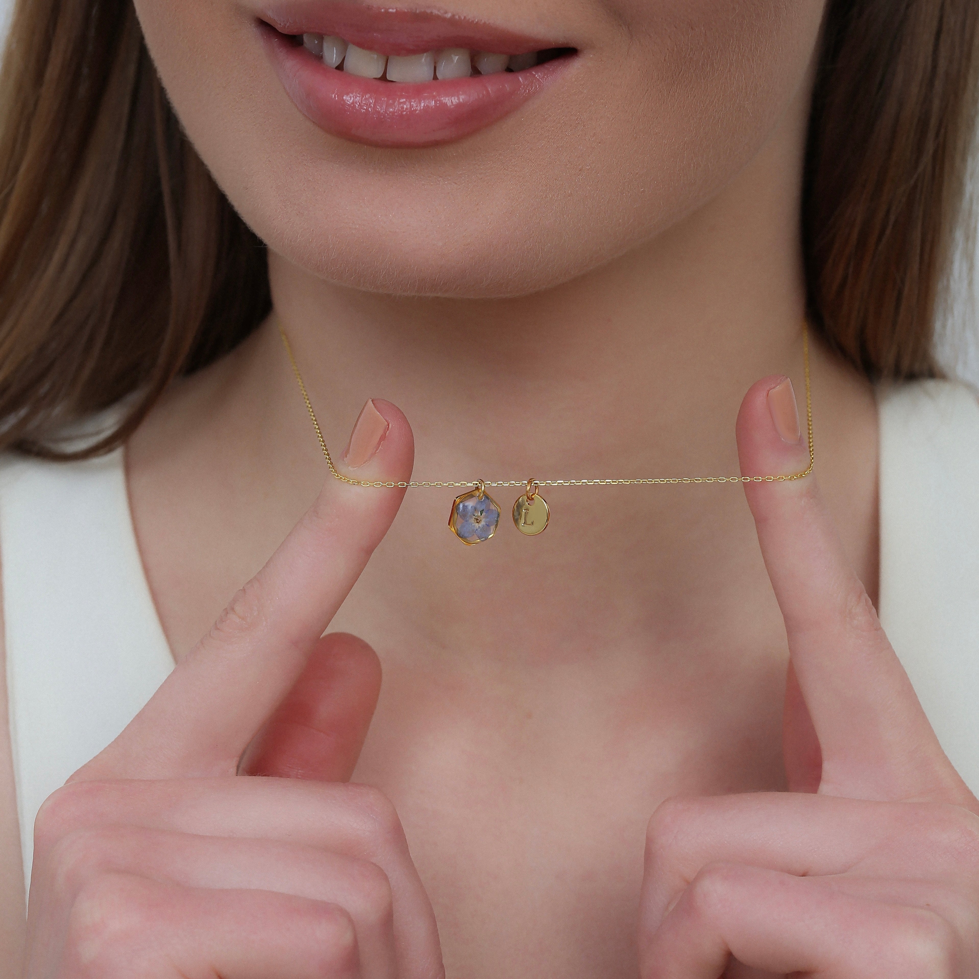 Çiçekler kuruma sürecini tamamladıktan sonra, her biri özenle minik parçalara ayrılır. Her bir çiçek parçası, reçine ile sabitlenerek koruma altına alınır. Bu sayede doğanın zarif dokusu uzun süre bozulmadan korunur ve takıların içinde ölümsüzleşir. Her detay, titizlikle işlenir ve takıya hayat verir.