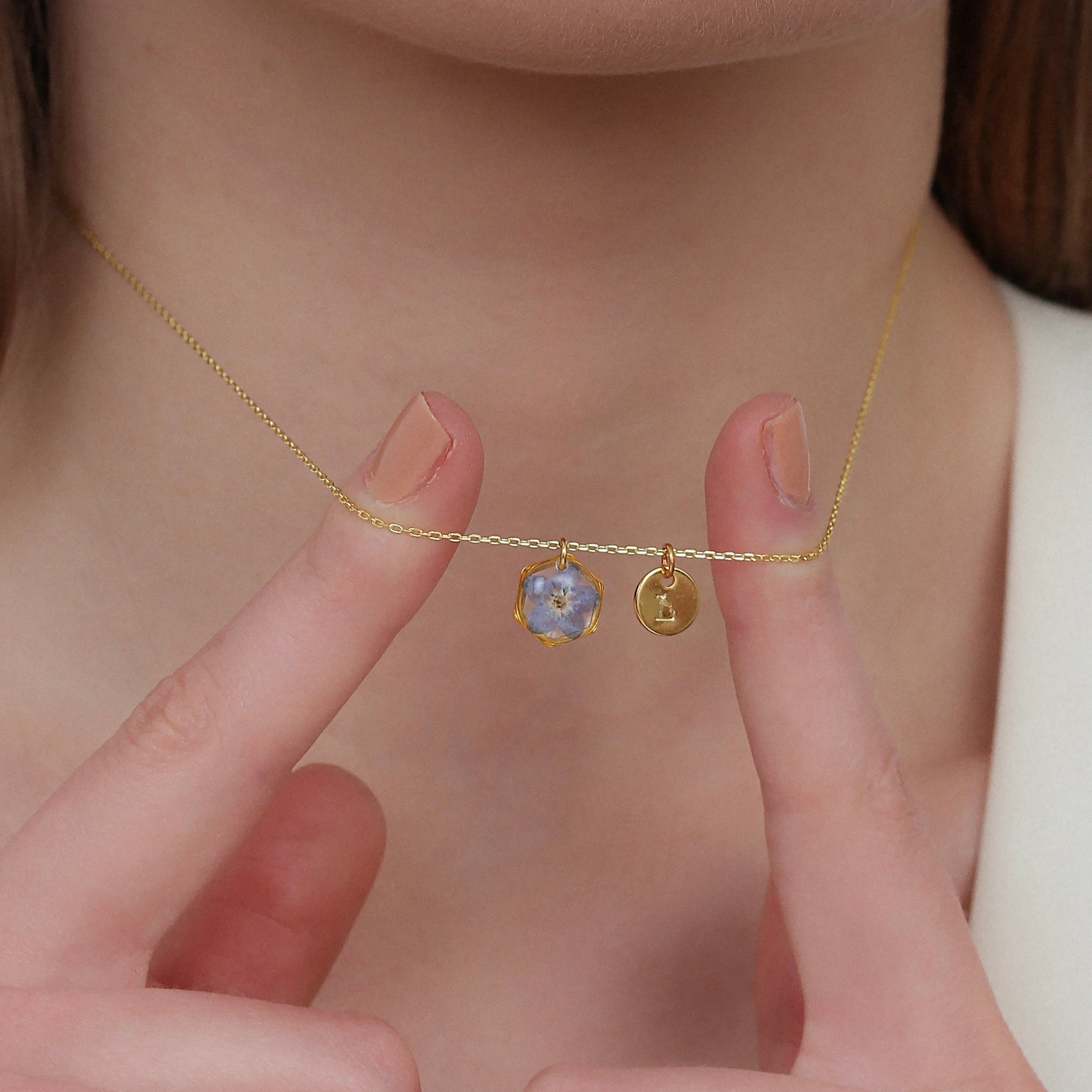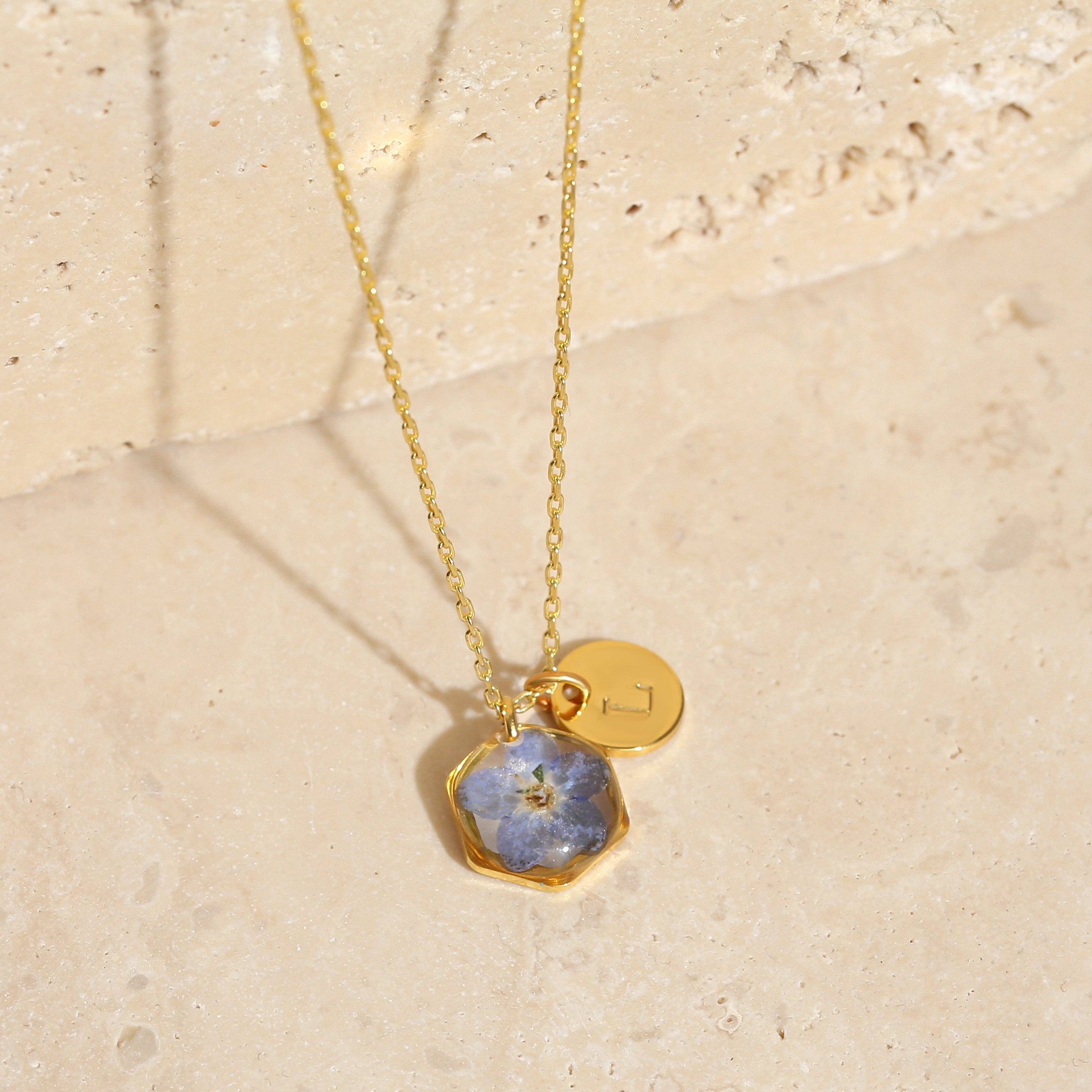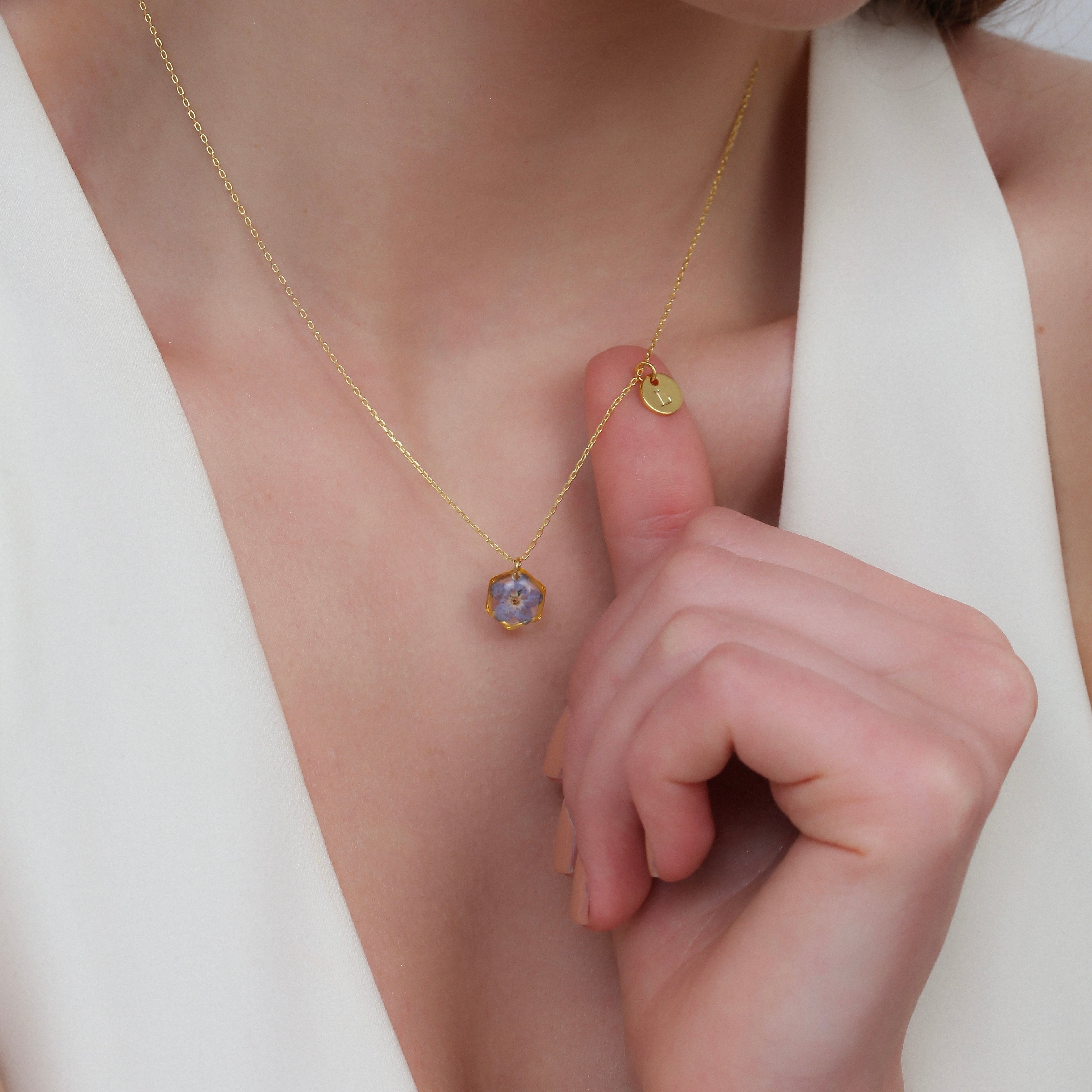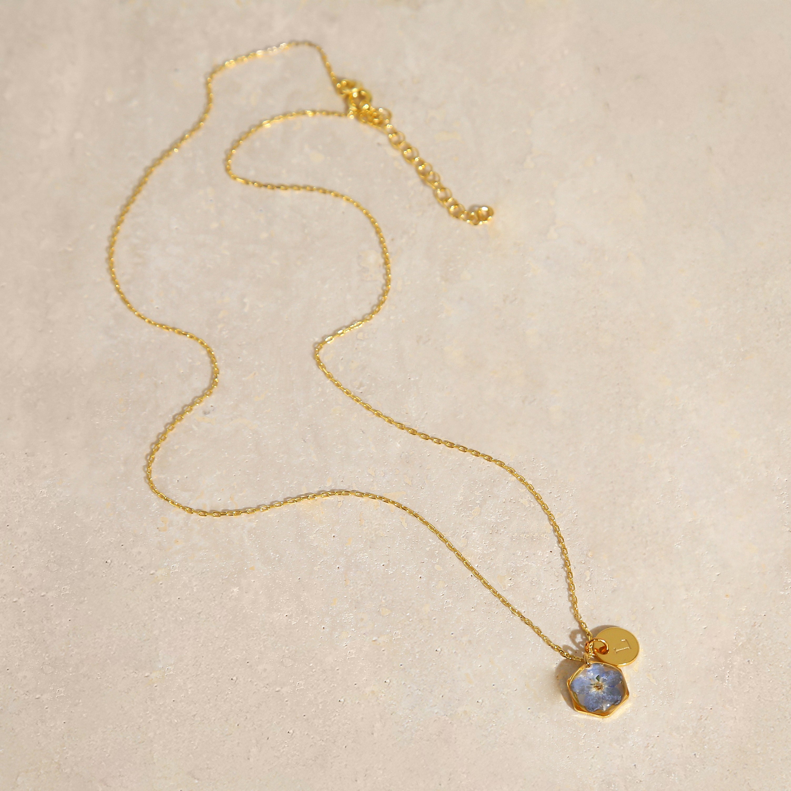 Teeny Weeny Hexagon Forget Me Not Kolye