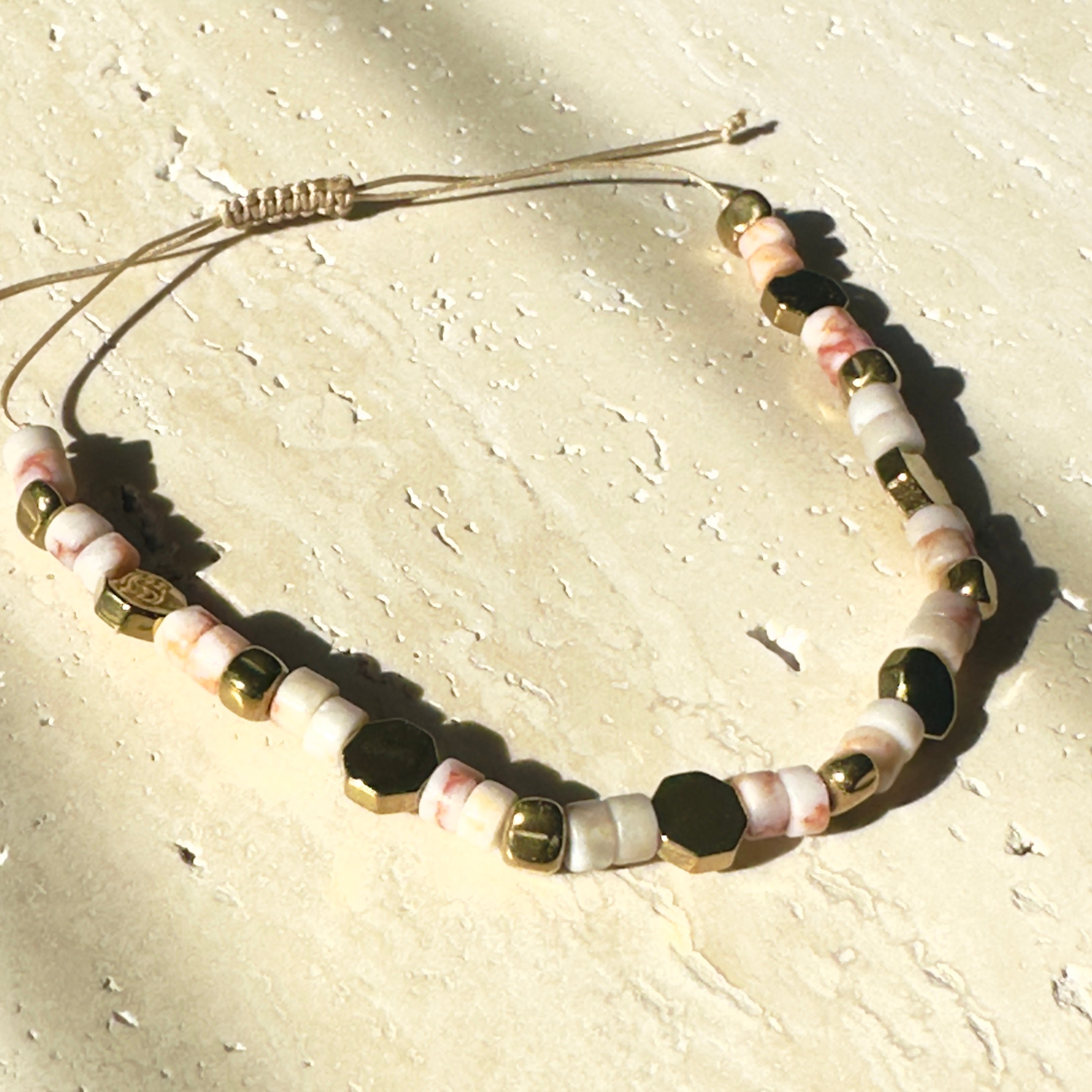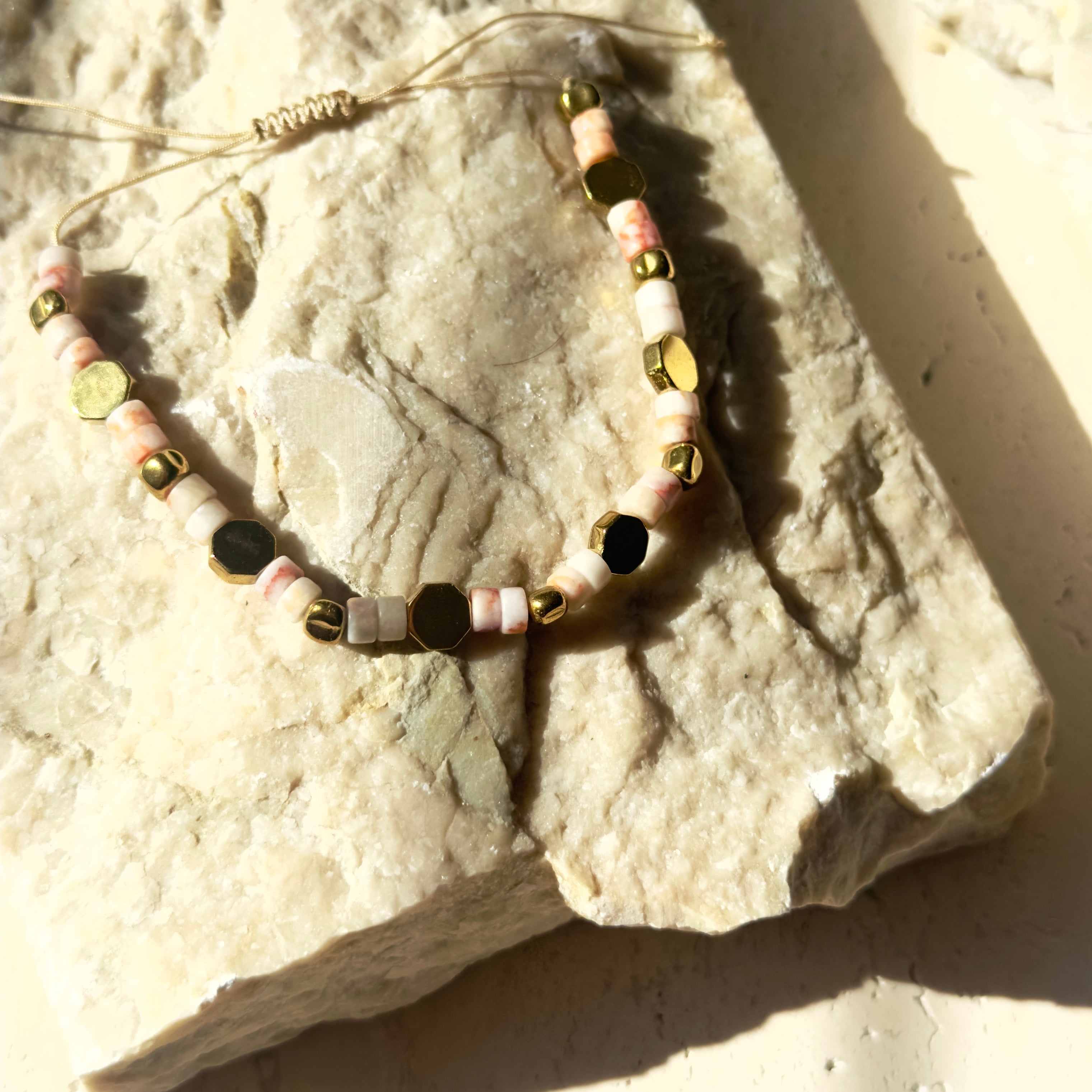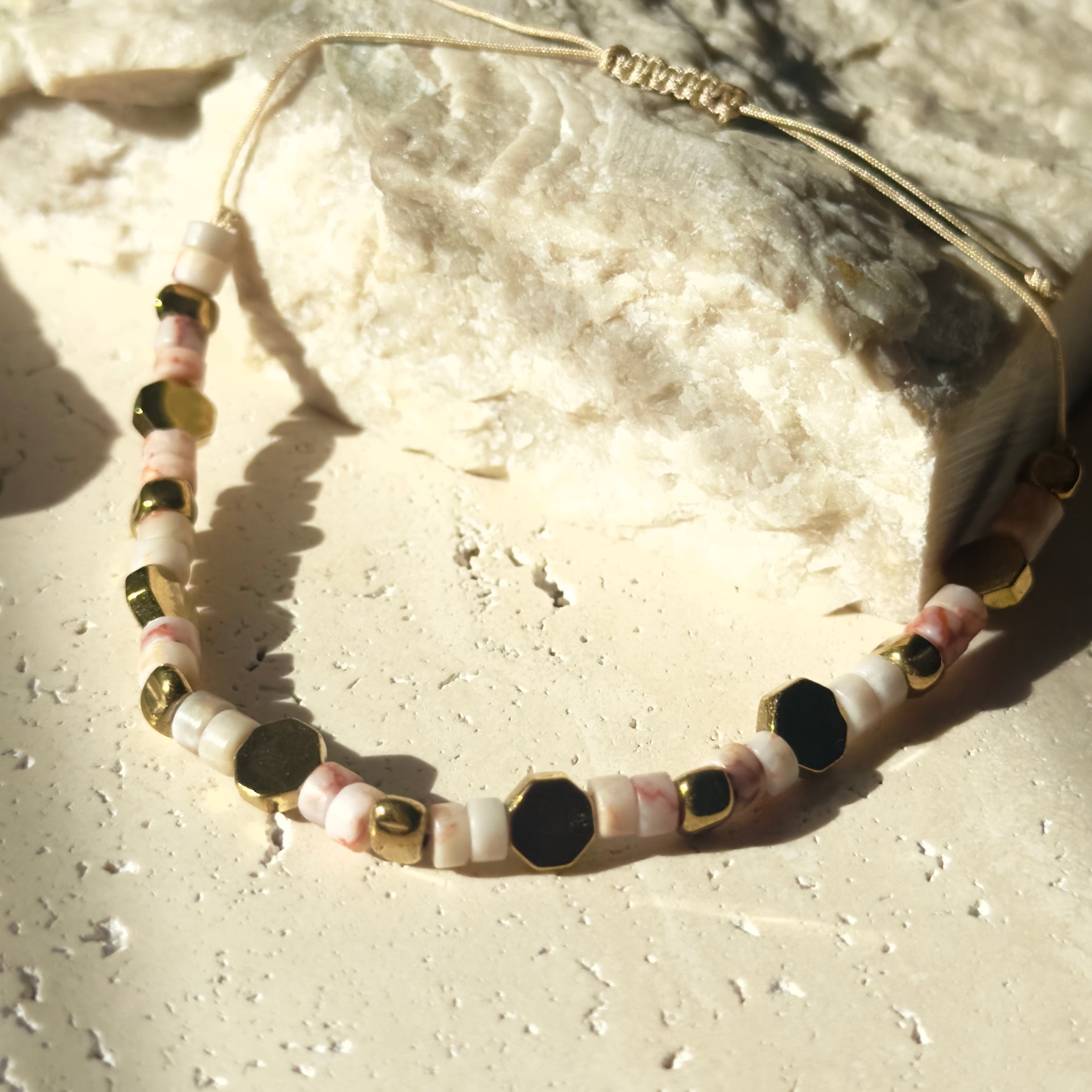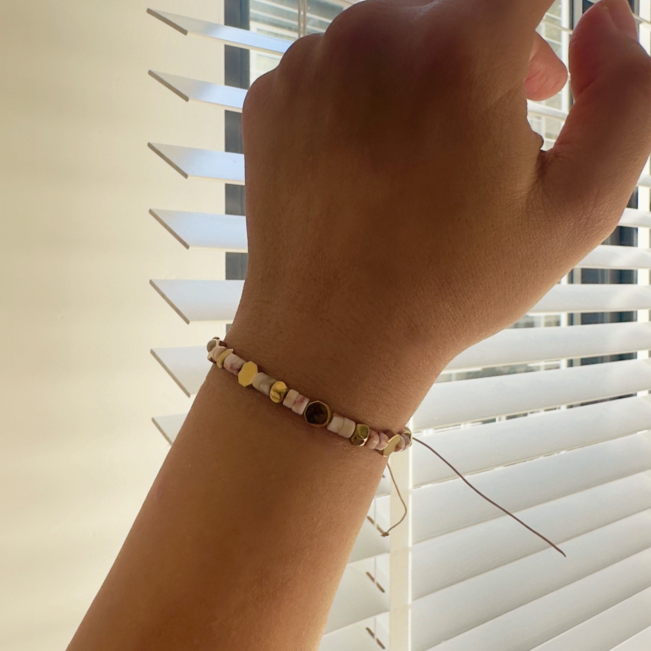 Dayanıklı ip üzerine özenle dizilen taşlar, ayarlanabilir yapısı sayesinde her bileğe kusursuz uyum sağlar. Hem günlük stilinizde sofistike bir tamamlayıcı, hem de enerjinizi koruyan özel bir parça olur.
