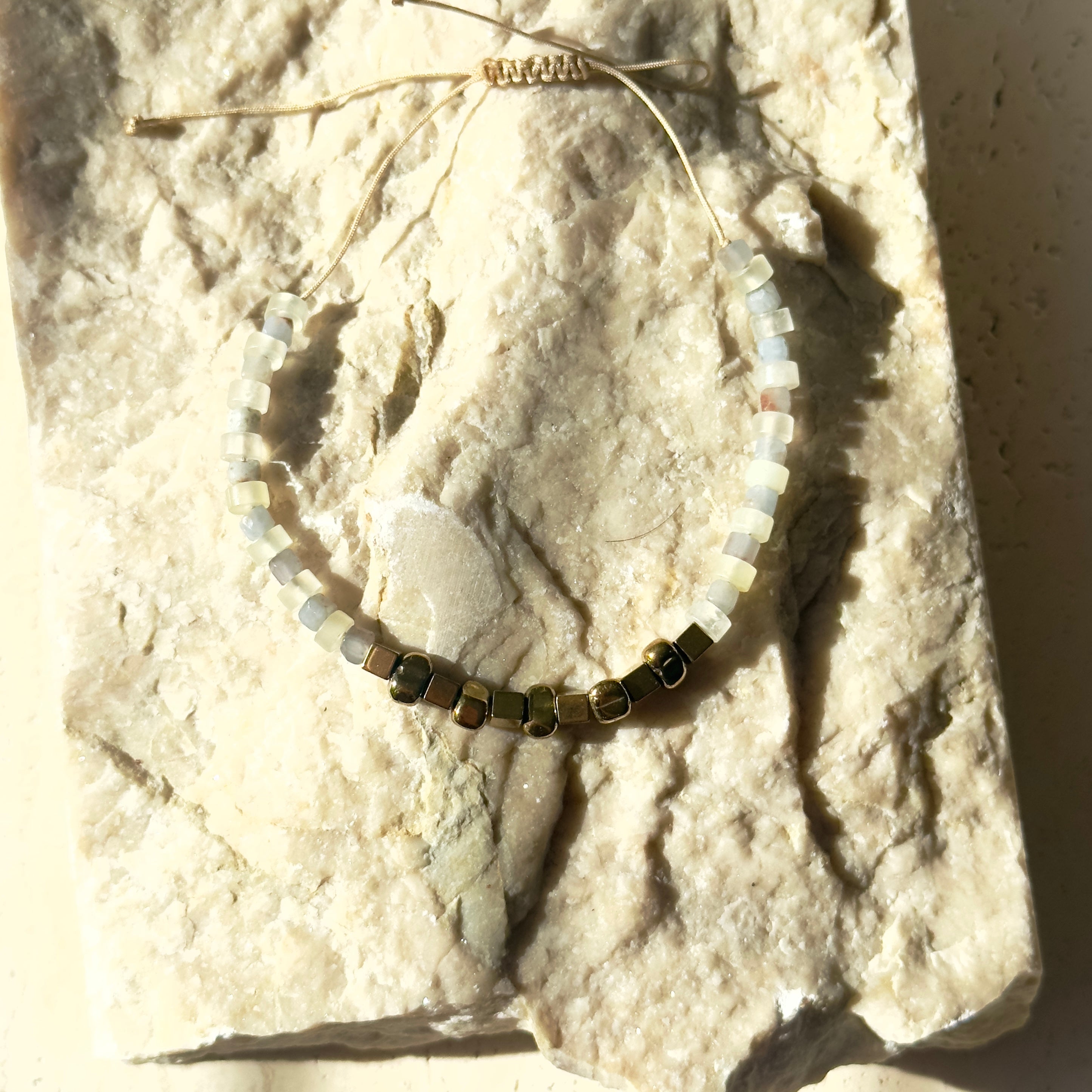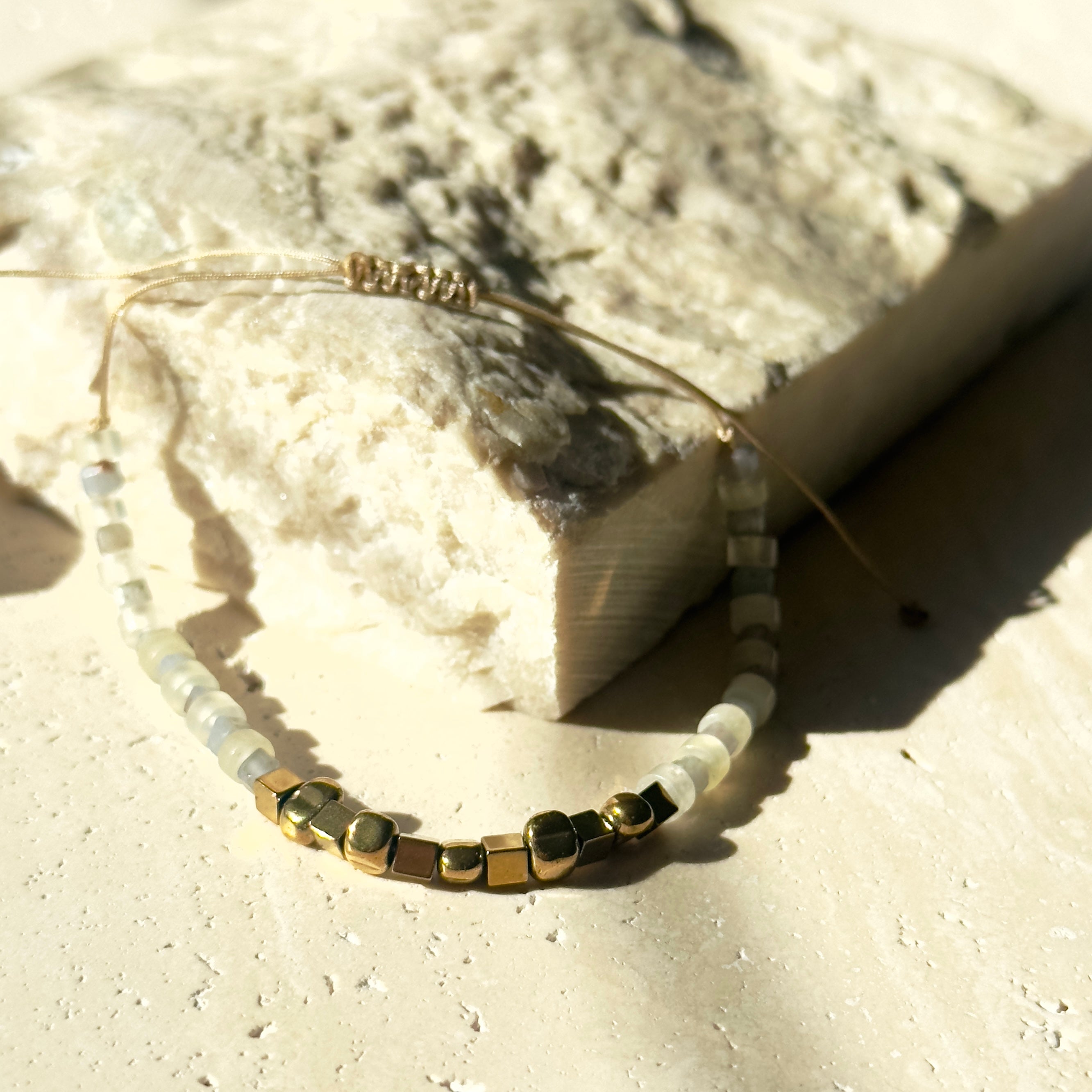 Dayanıklı ip üzerine özenle dizilen taşlar, ayarlanabilir yapısı sayesinde her bileğe kusursuz uyum sağlar. Günlük stilinize zarif bir sadelik katarken, özel anlarınıza da güçlü bir denge eşlik eder.