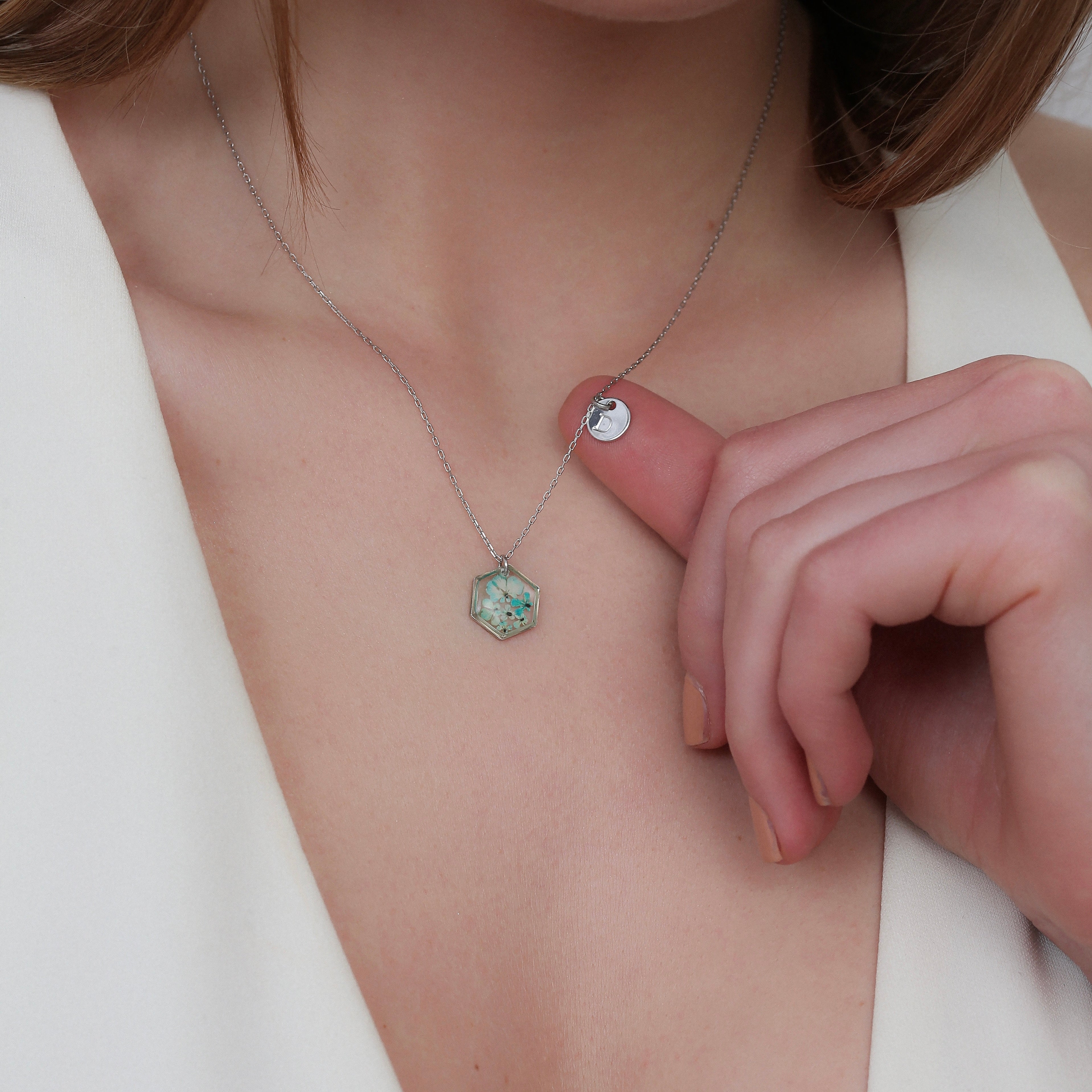 Çiçekler kuruma sürecini tamamladıktan sonra, her biri özenle minik parçalara ayrılır. Her bir çiçek parçası, reçine ile sabitlenerek koruma altına alınır. Bu sayede doğanın zarif dokusu uzun süre bozulmadan korunur ve takıların içinde ölümsüzleşir. Her detay, titizlikle işlenir ve takıya hayat verir.