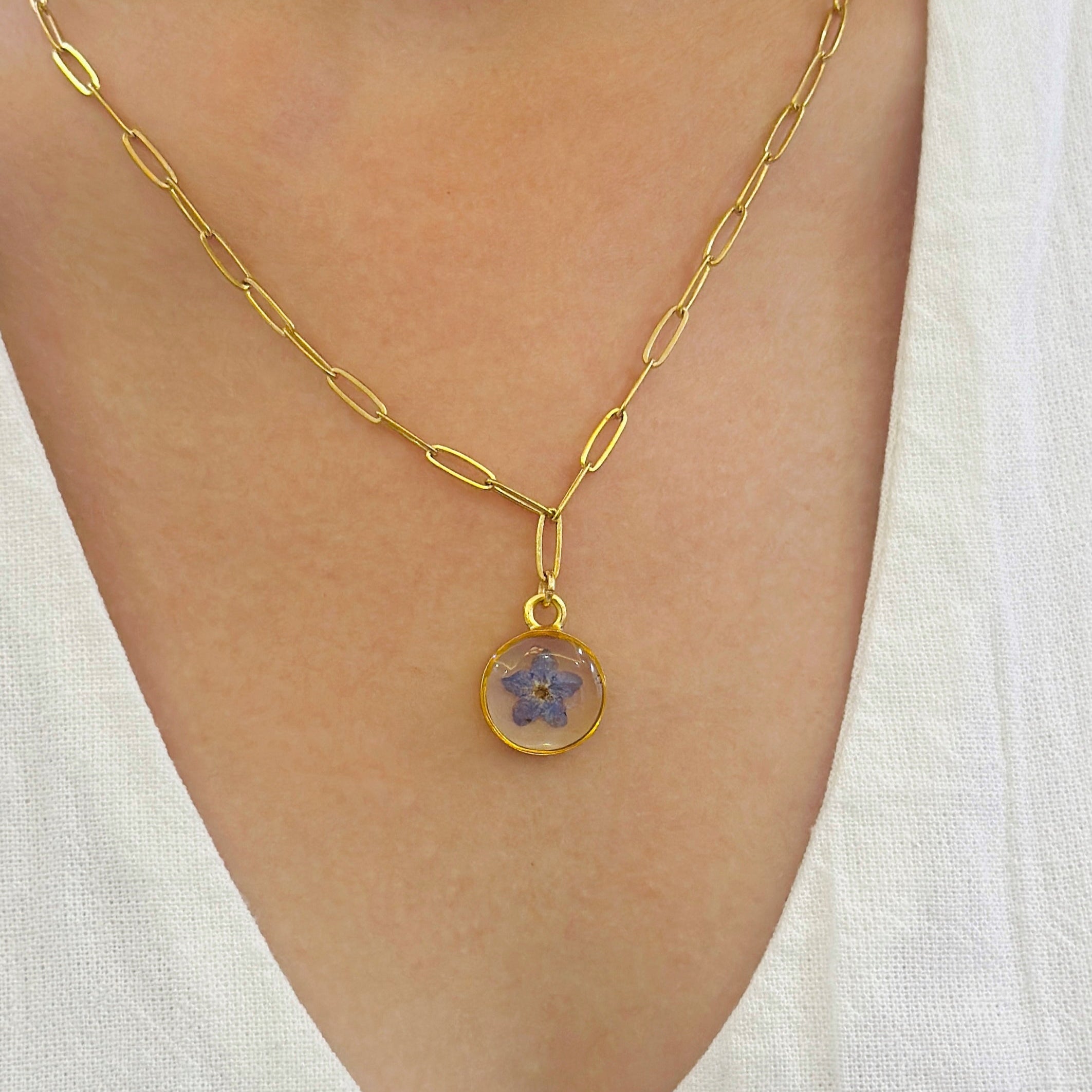 Çiçekler kuruma sürecini tamamladıktan sonra, her biri özenle minik parçalara ayrılır. Her bir çiçek parçası, reçine ile sabitlenerek koruma altına alınır. Bu sayede doğanın zarif dokusu uzun süre bozulmadan korunur ve takıların içinde ölümsüzleşir. Her detay, titizlikle işlenir ve takıya hayat verir.