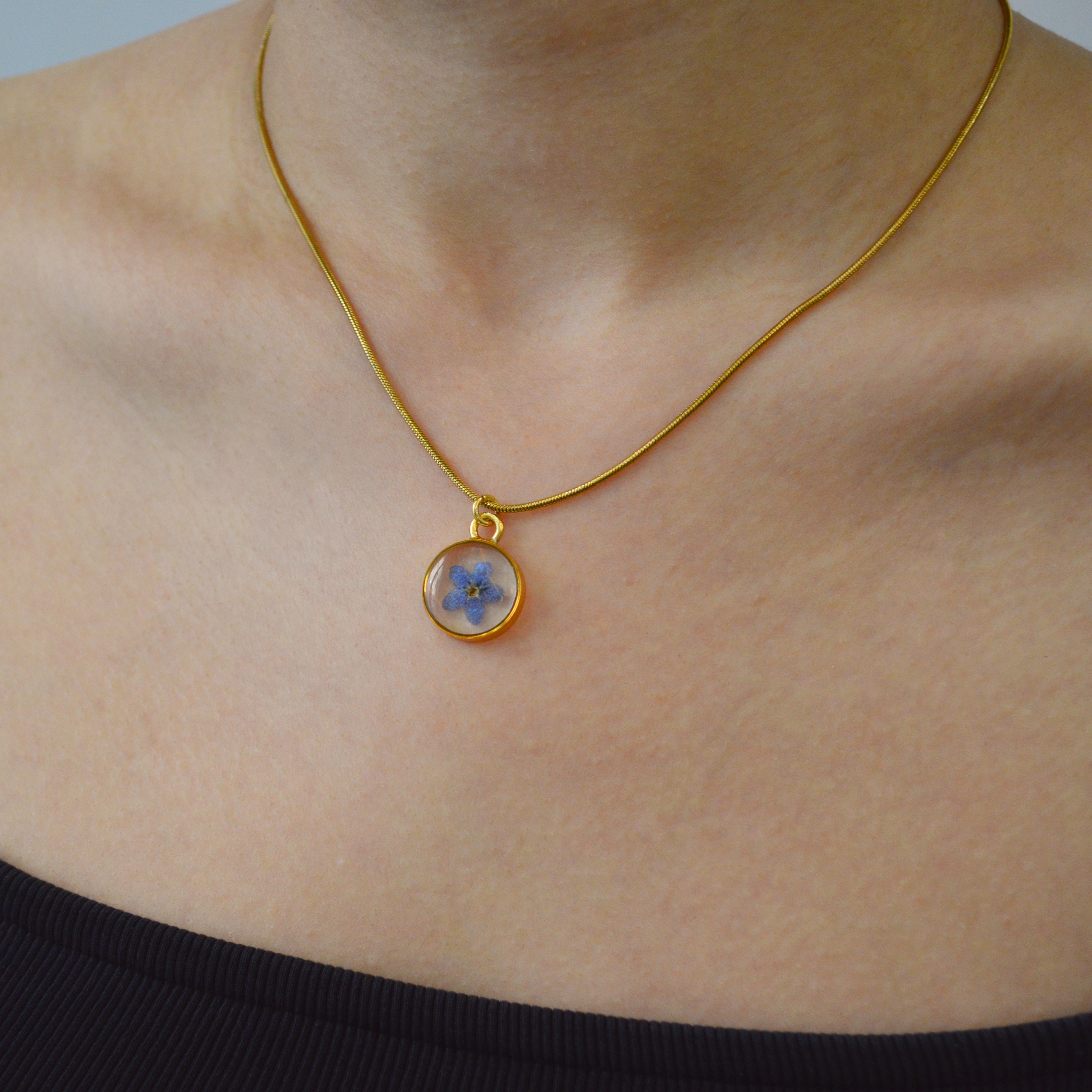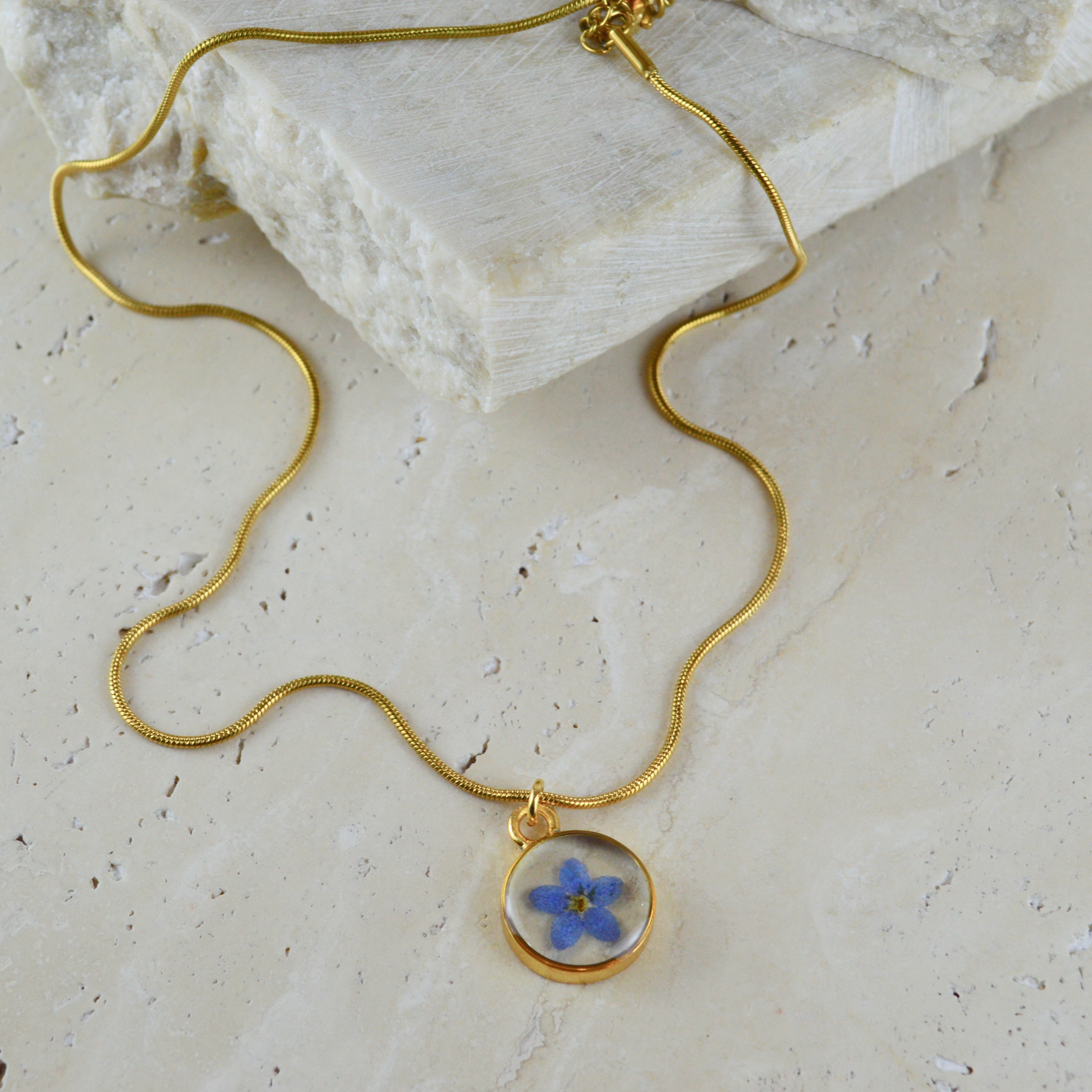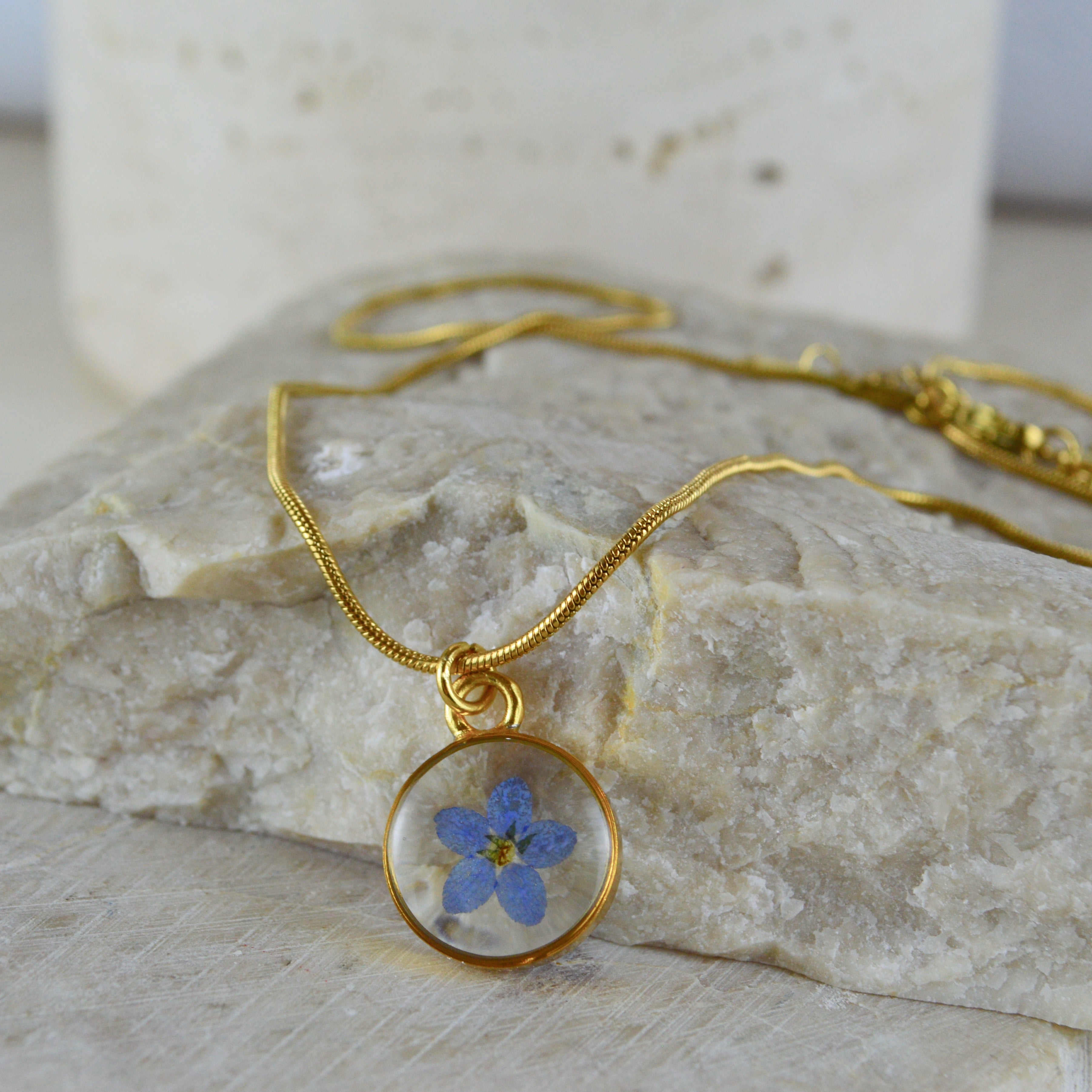 Çiçekler kuruma sürecini tamamladıktan sonra, her biri özenle minik parçalara ayrılır. Her bir çiçek parçası, reçine ile sabitlenerek koruma altına alınır. Bu sayede doğanın zarif dokusu uzun süre bozulmadan korunur ve takıların içinde ölümsüzleşir. Her detay, titizlikle işlenir ve takıya hayat verir.