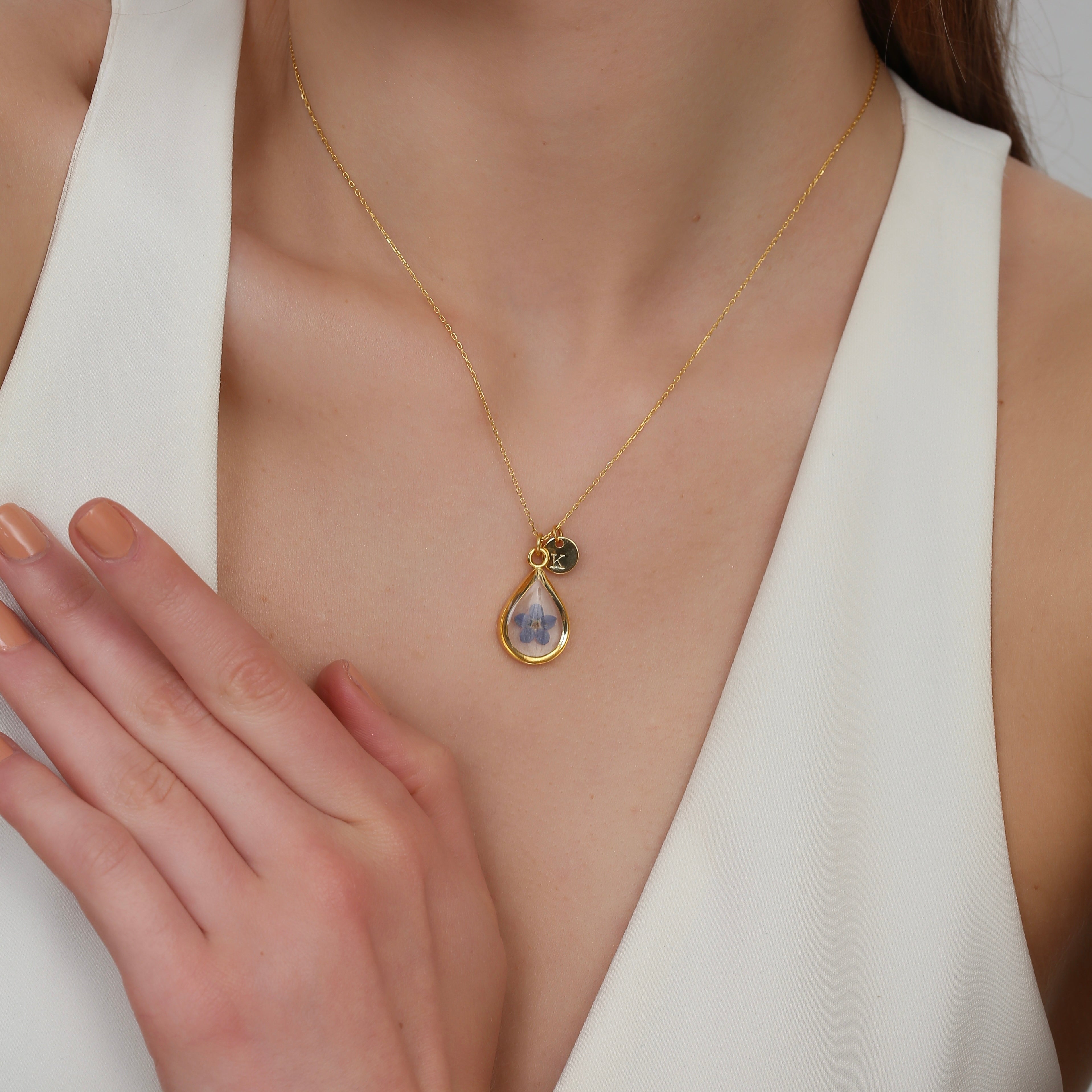 Forget Me Not Teardrop Kolye