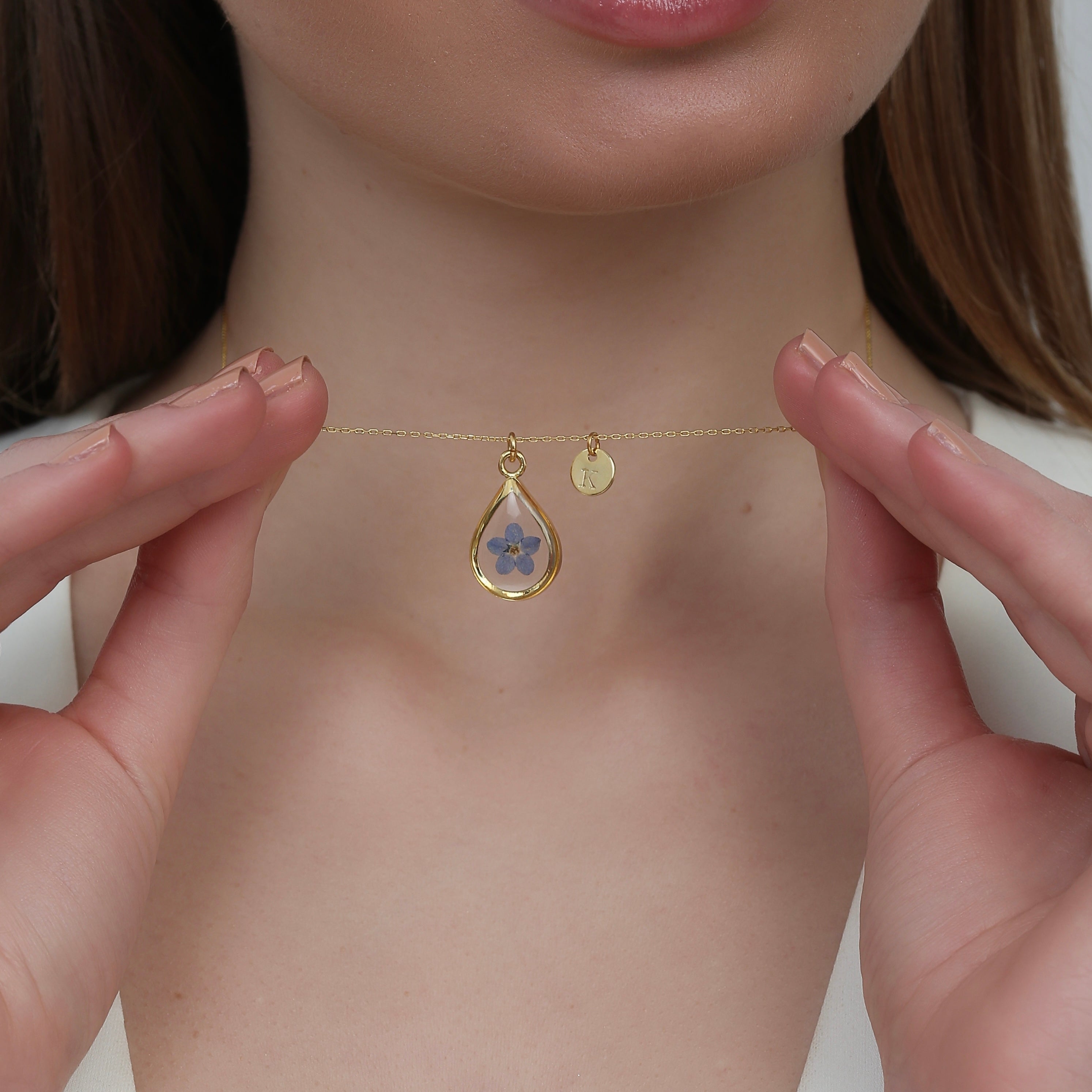 Çiçekler kuruma sürecini tamamladıktan sonra, her biri özenle minik parçalara ayrılır. Her bir çiçek parçası, reçine ile sabitlenerek koruma altına alınır. Bu sayede doğanın zarif dokusu uzun süre bozulmadan korunur ve takıların içinde ölümsüzleşir. Her detay, titizlikle işlenir ve takıya hayat verir.