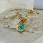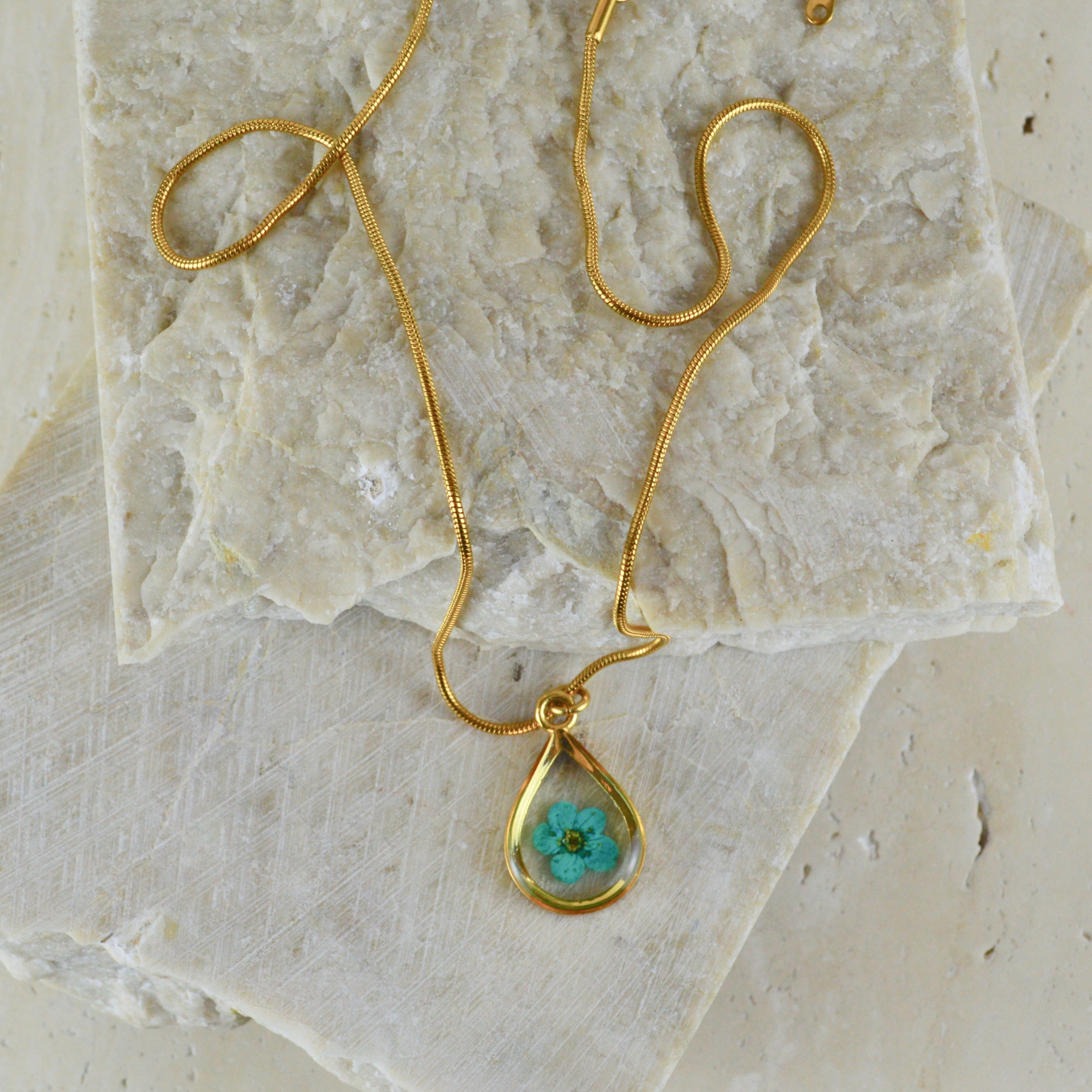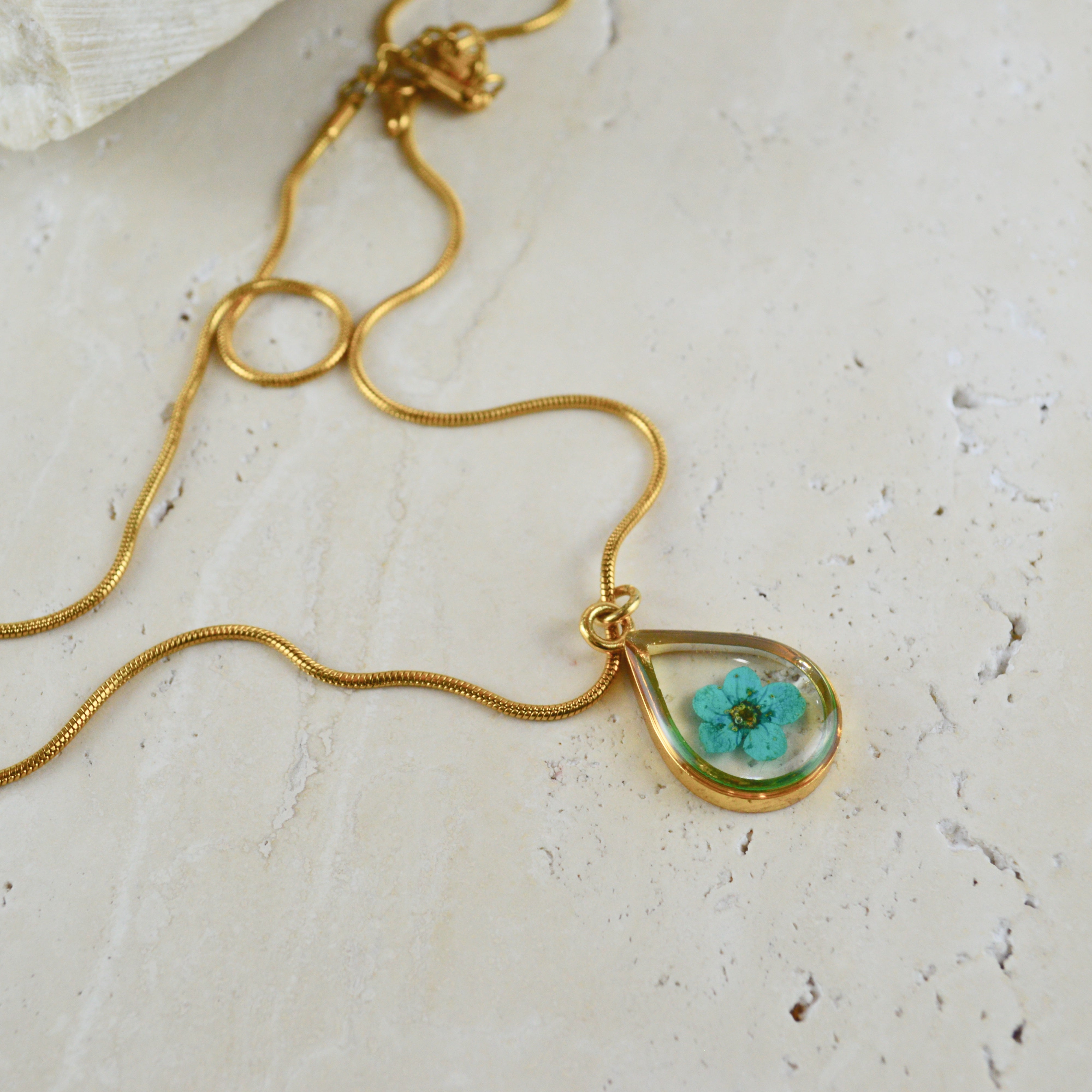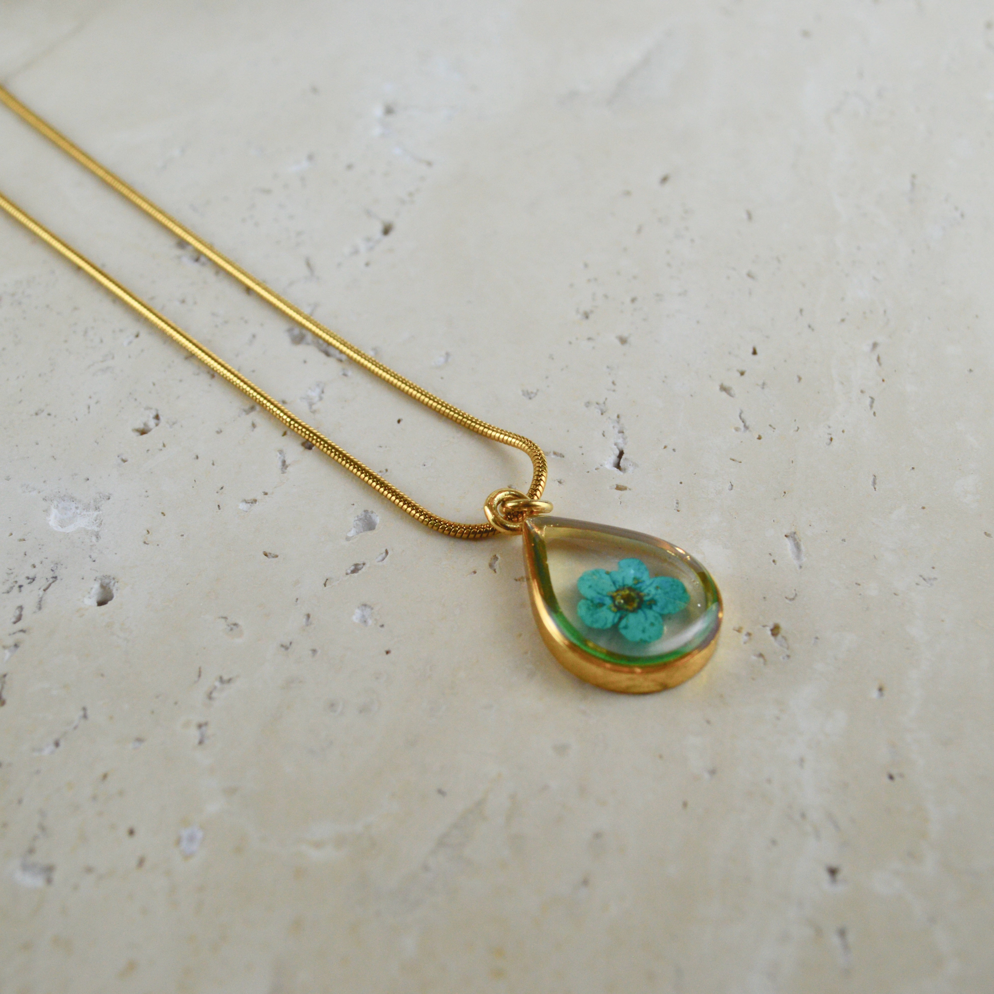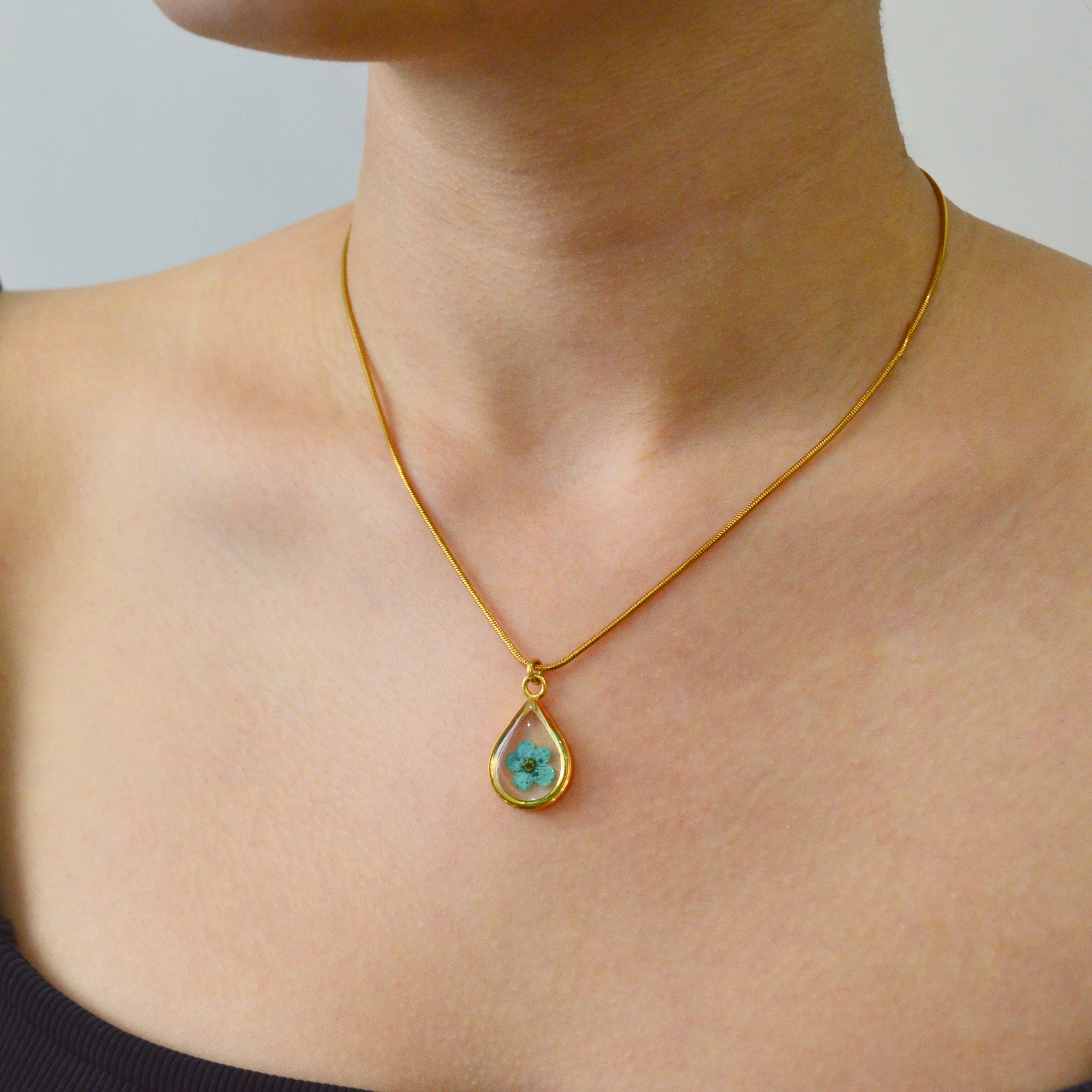 Çiçekler kuruma sürecini tamamladıktan sonra, her biri özenle minik parçalara ayrılır. Her bir çiçek parçası, reçine ile sabitlenerek koruma altına alınır. Bu sayede doğanın zarif dokusu uzun süre bozulmadan korunur ve takıların içinde ölümsüzleşir. Her detay, titizlikle işlenir ve takıya hayat verir.