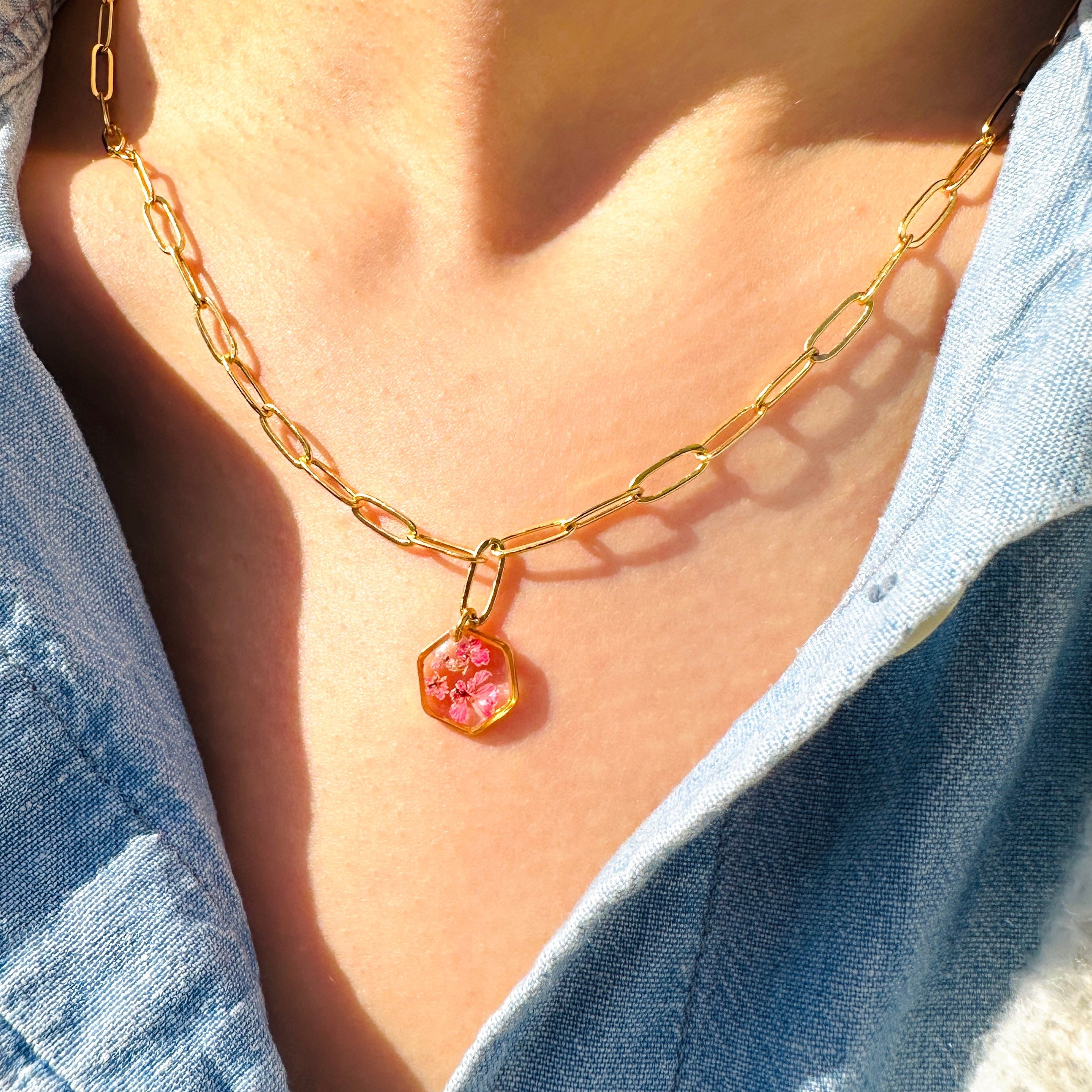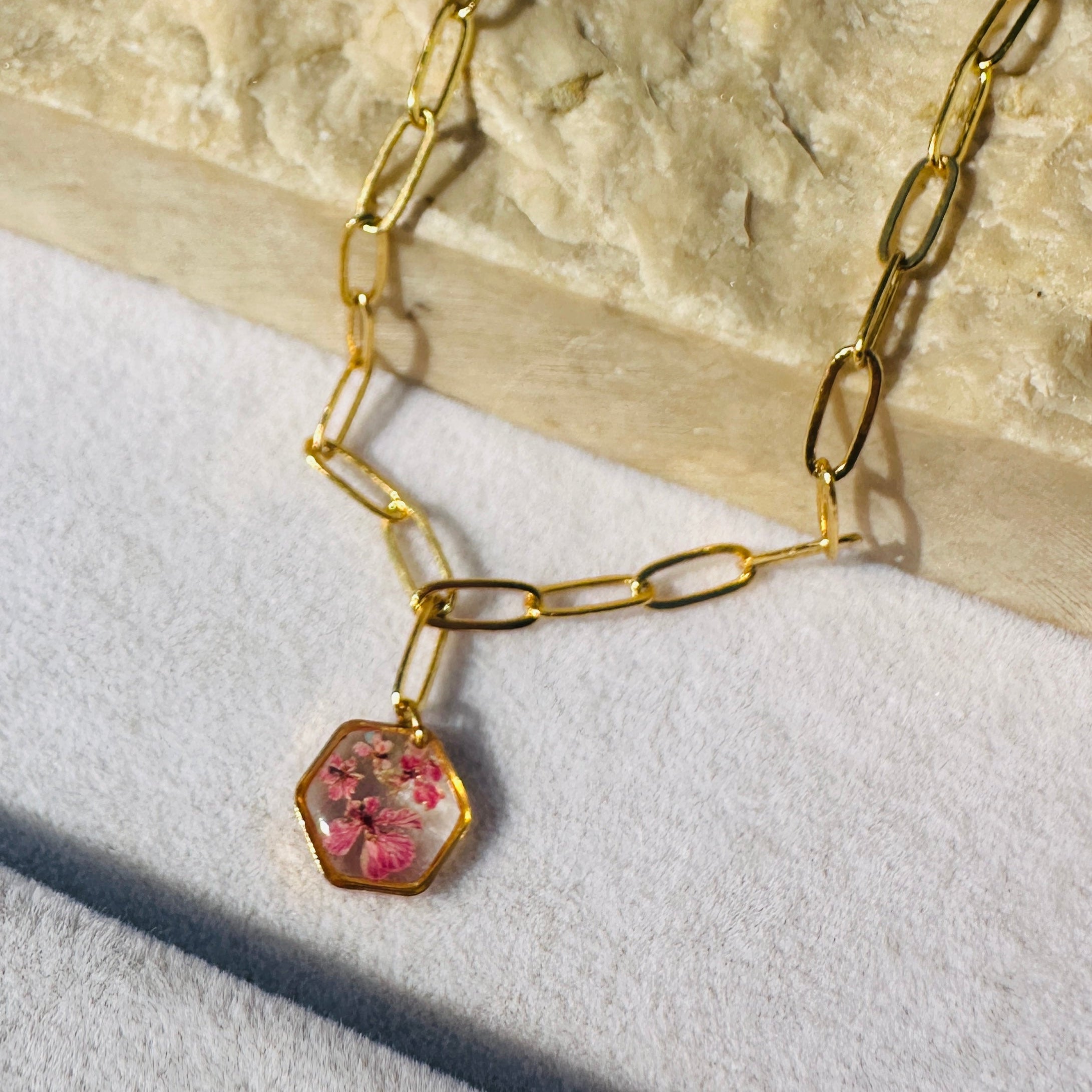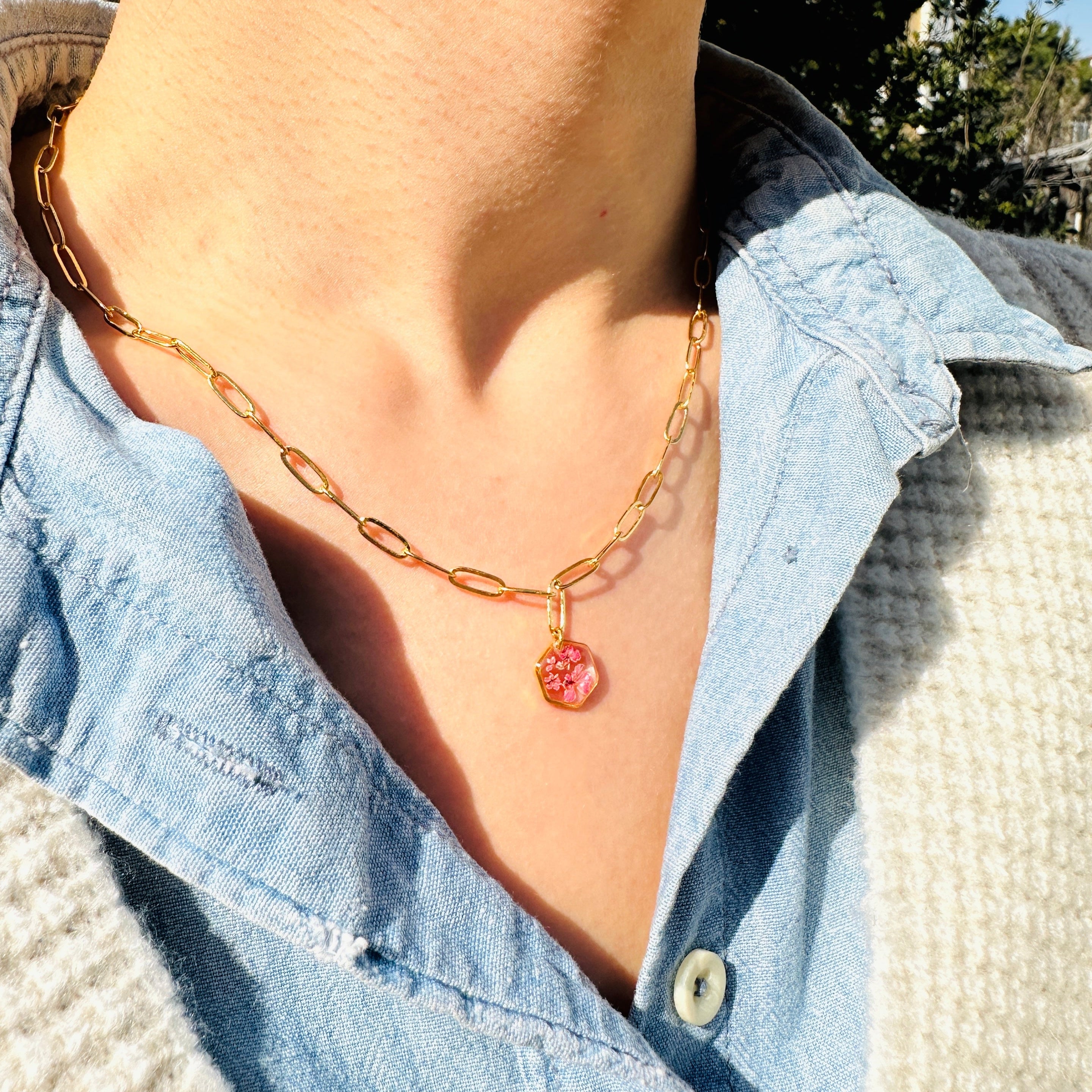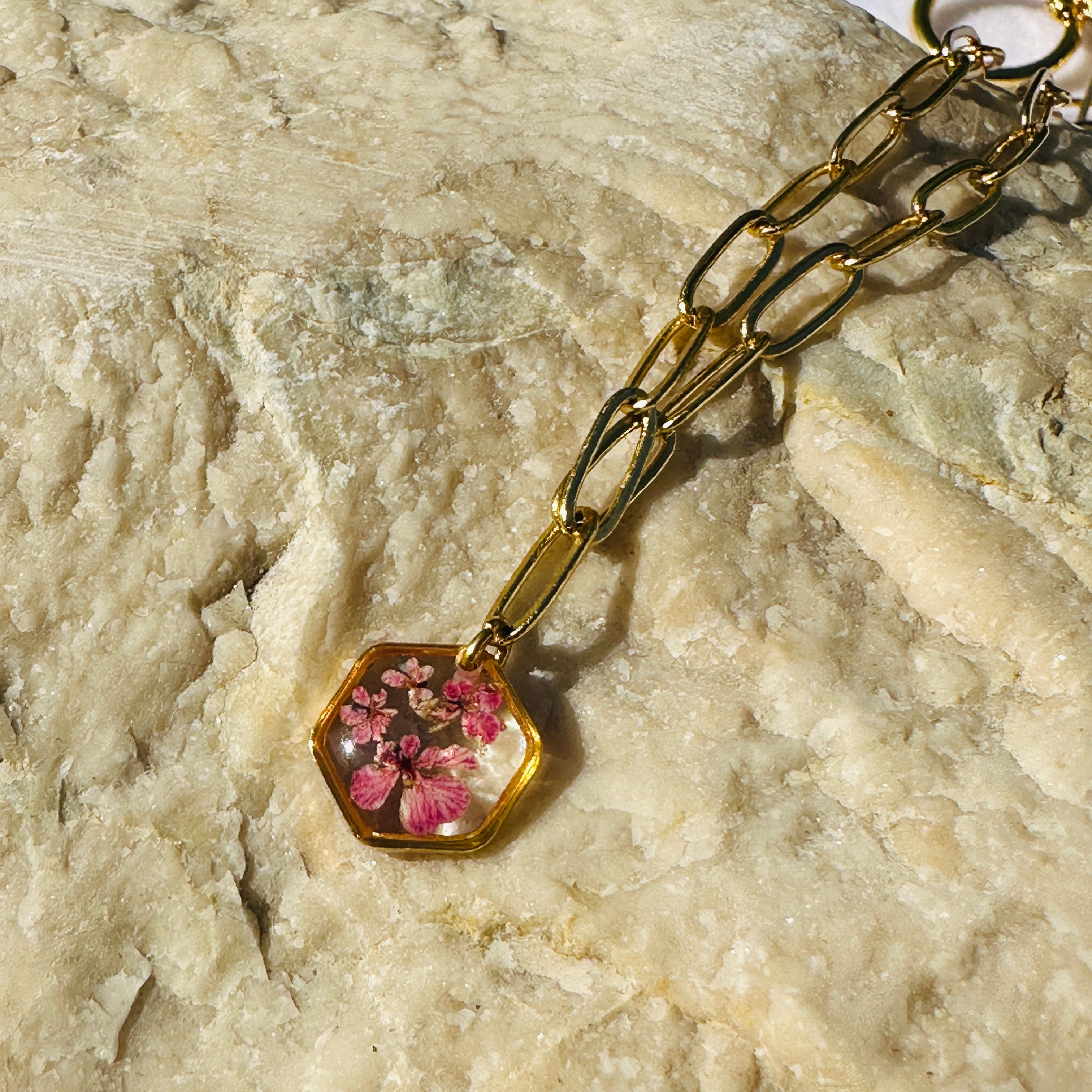 Çiçekler kuruma sürecini tamamladıktan sonra, her biri özenle minik parçalara ayrılır. Her bir çiçek parçası, reçine ile sabitlenerek koruma altına alınır. Bu sayede doğanın zarif dokusu uzun süre bozulmadan korunur ve takıların içinde ölümsüzleşir. Her detay, titizlikle işlenir ve takıya hayat verir.