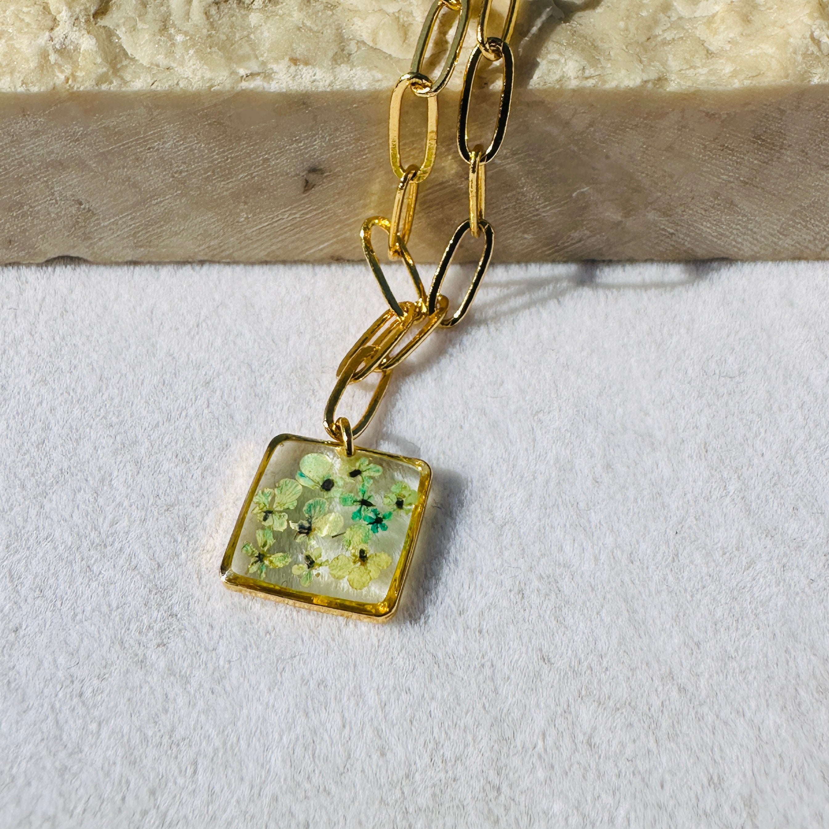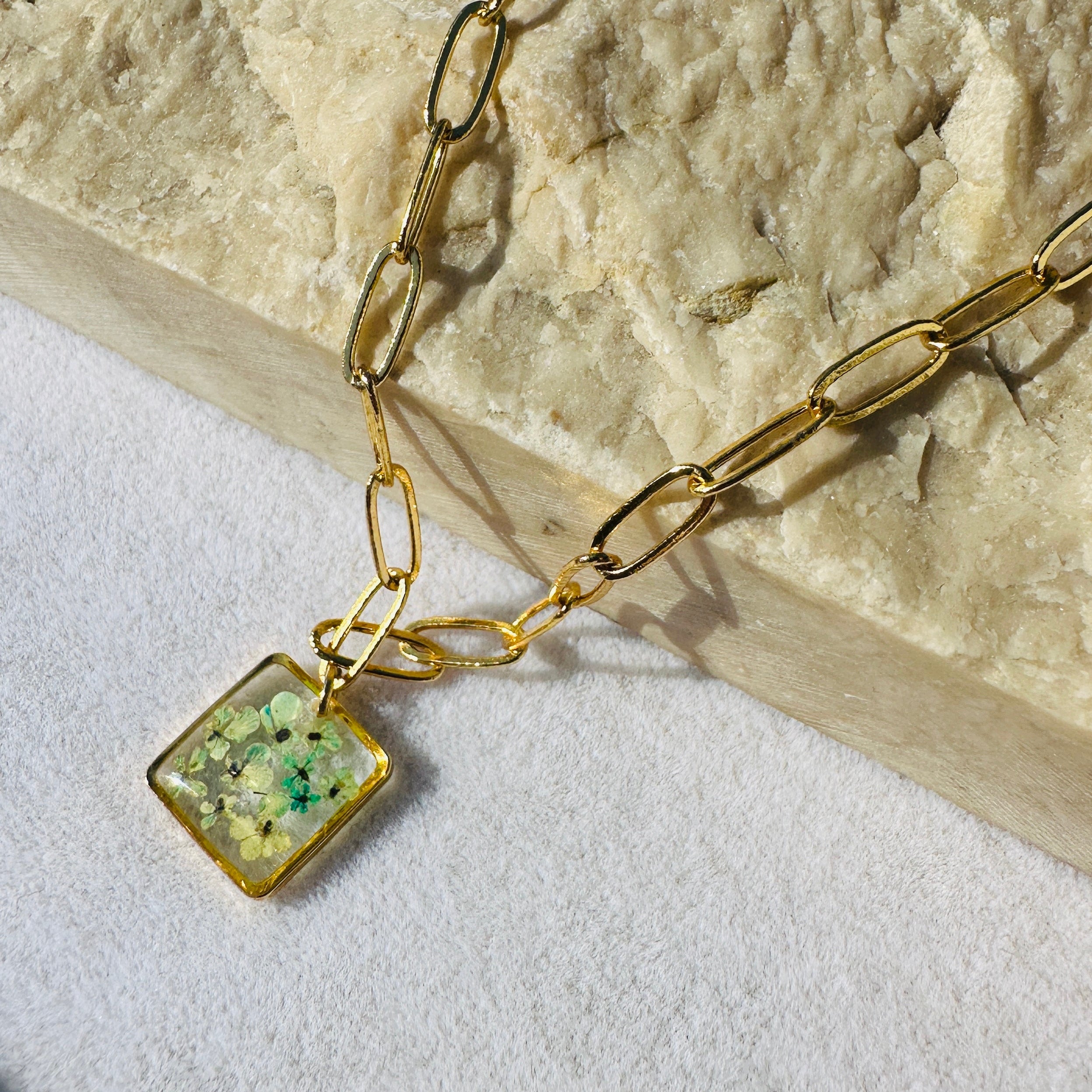 Çiçekler kuruma sürecini tamamladıktan sonra, her biri özenle minik parçalara ayrılır. Her bir çiçek parçası, reçine ile sabitlenerek koruma altına alınır. Bu sayede doğanın zarif dokusu uzun süre bozulmadan korunur ve takıların içinde ölümsüzleşir. Her detay, titizlikle işlenir ve takıya hayat verir.
