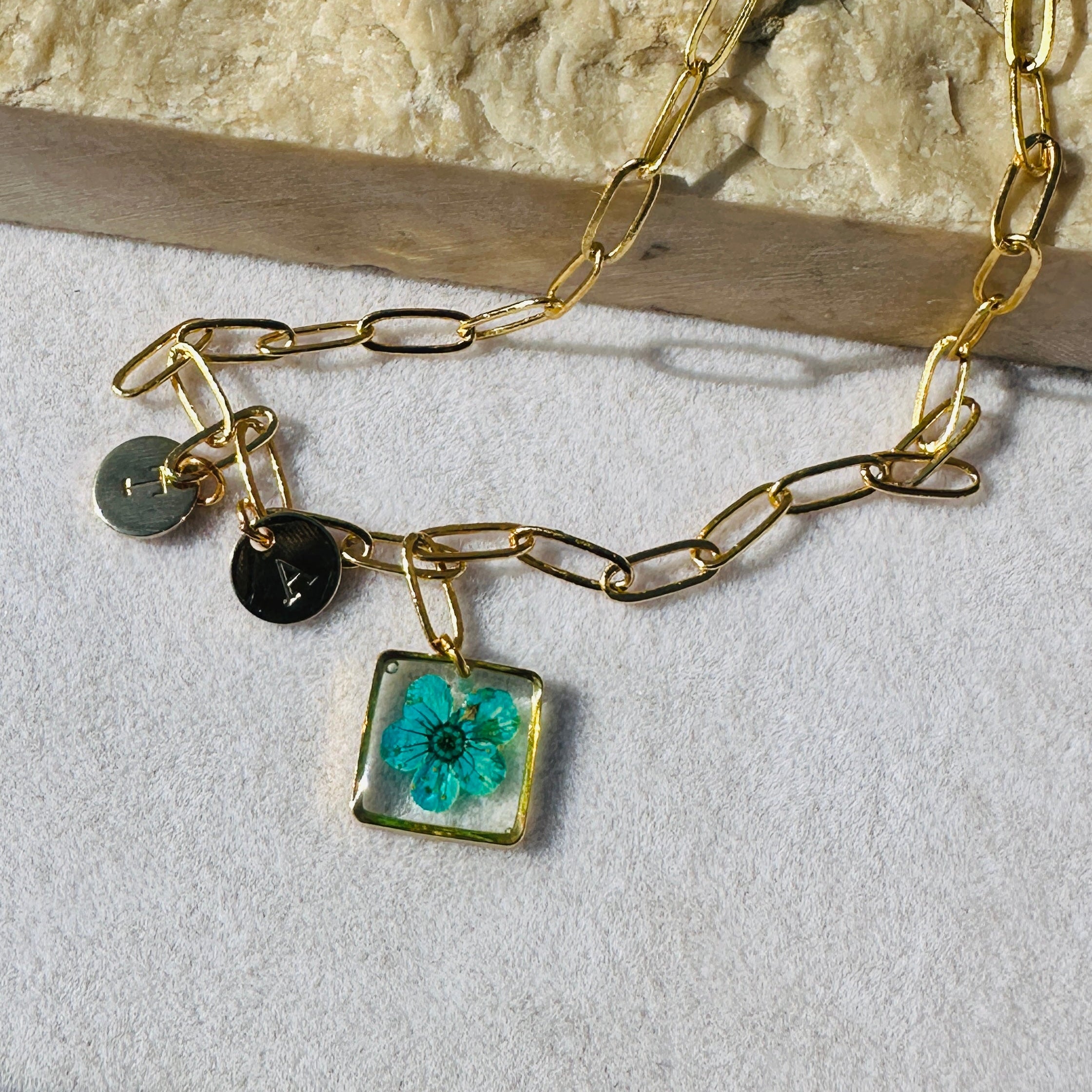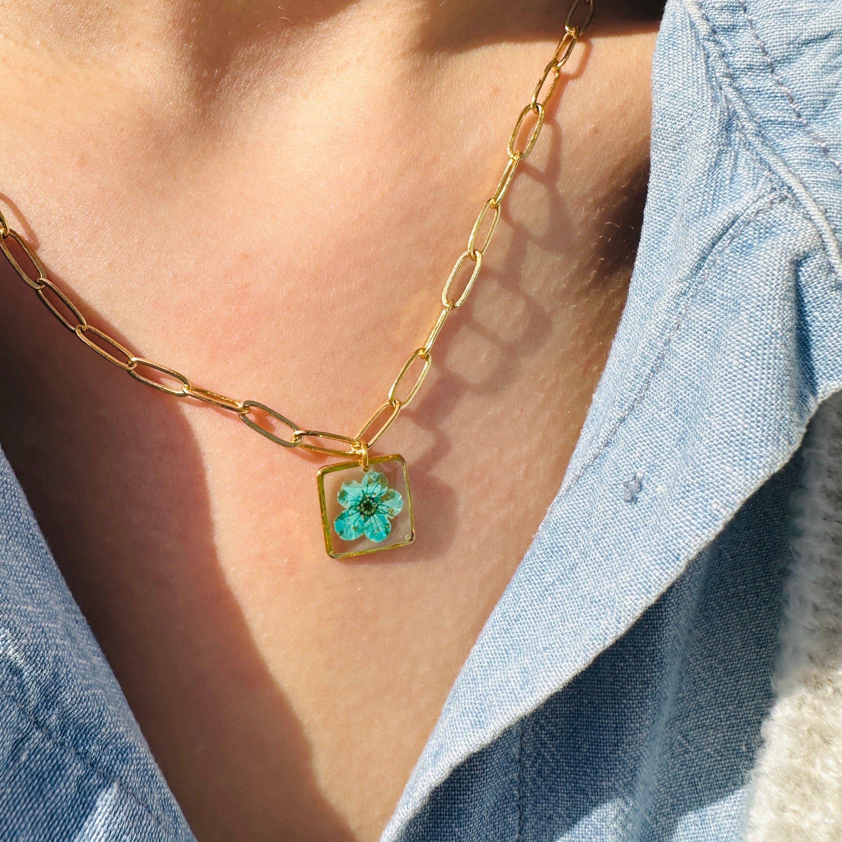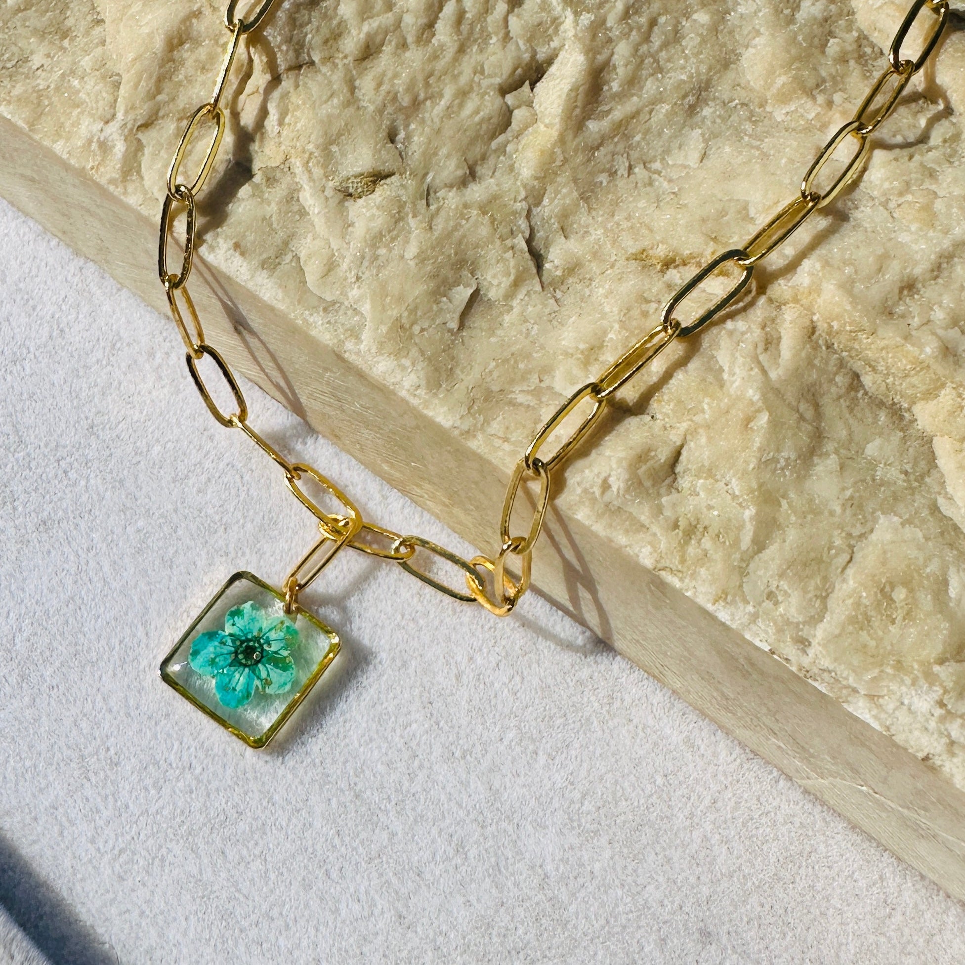 Çiçekler kuruma sürecini tamamladıktan sonra, her biri özenle minik parçalara ayrılır. Her bir çiçek parçası, reçine ile sabitlenerek koruma altına alınır. Bu sayede doğanın zarif dokusu uzun süre bozulmadan korunur ve takıların içinde ölümsüzleşir. Her detay, titizlikle işlenir ve takıya hayat verir.