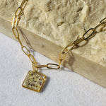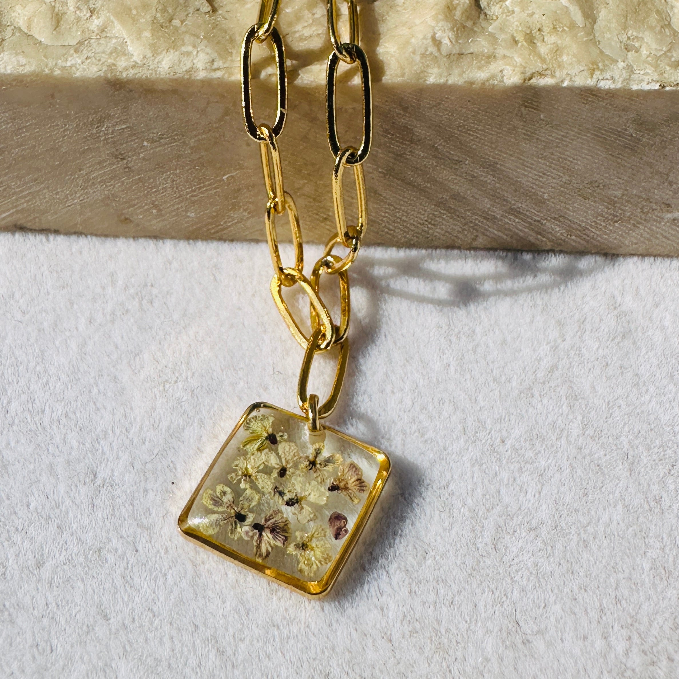 Çiçekler kuruma sürecini tamamladıktan sonra, her biri özenle minik parçalara ayrılır. Her bir çiçek parçası, reçine ile sabitlenerek koruma altına alınır. Bu sayede doğanın zarif dokusu uzun süre bozulmadan korunur ve takıların içinde ölümsüzleşir. Her detay, titizlikle işlenir ve takıya hayat verir.