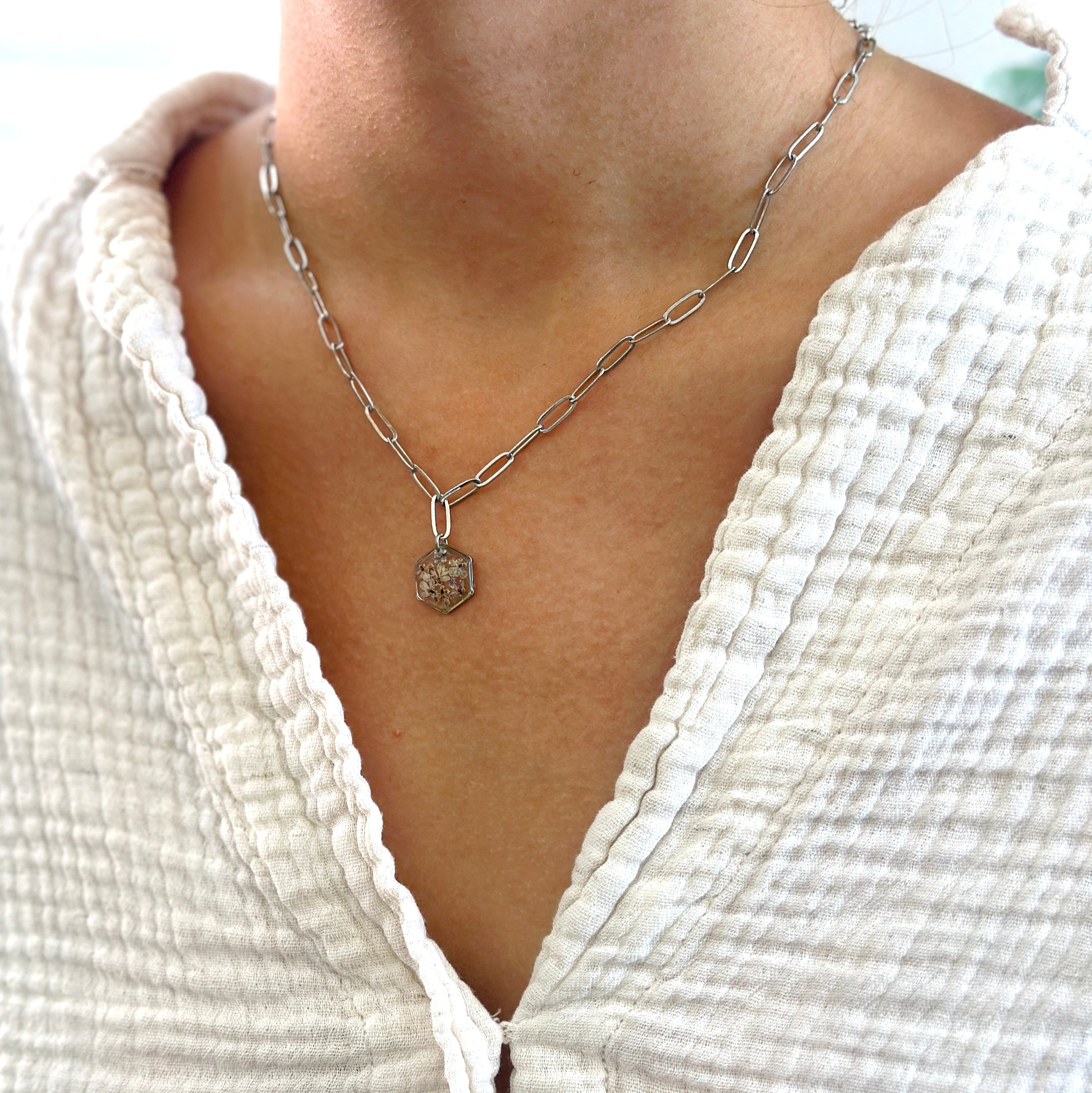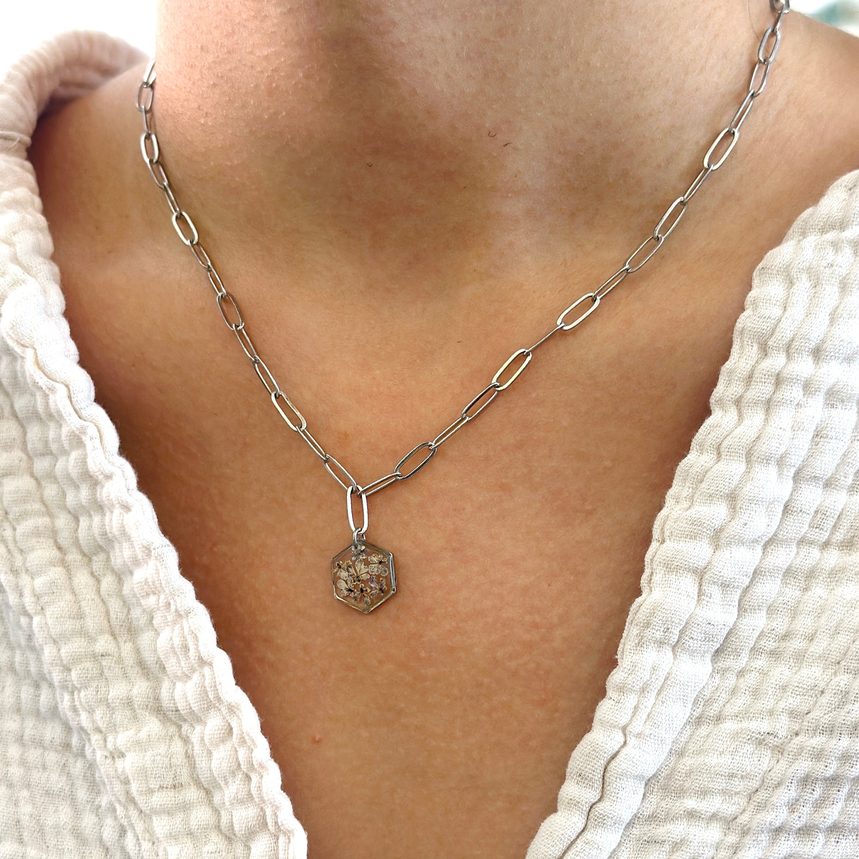 Çiçekler kuruma sürecini tamamladıktan sonra, her biri özenle minik parçalara ayrılır. Her bir çiçek parçası, reçine ile sabitlenerek koruma altına alınır. Bu sayede doğanın zarif dokusu uzun süre bozulmadan korunur ve takıların içinde ölümsüzleşir. Her detay, titizlikle işlenir ve takıya hayat verir.