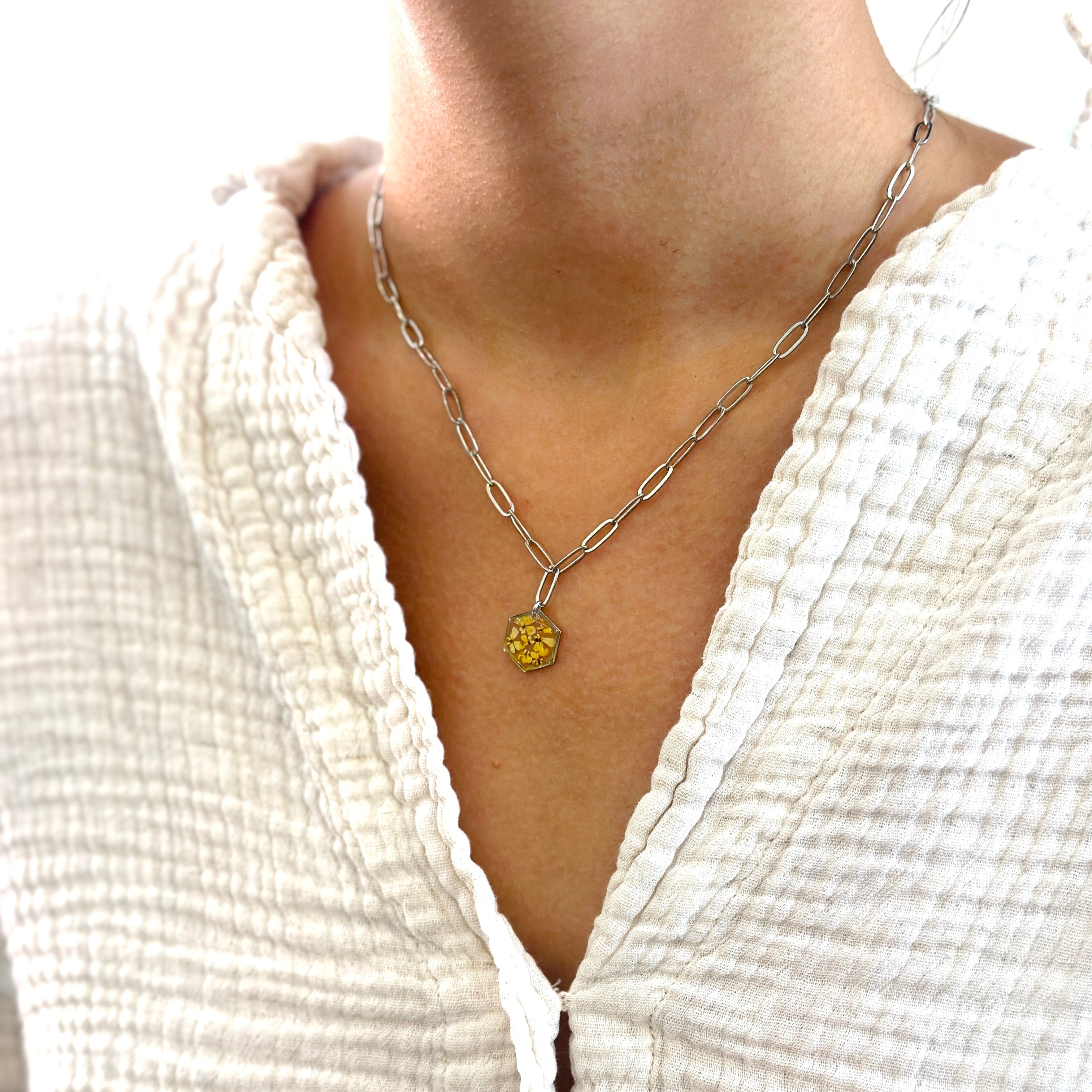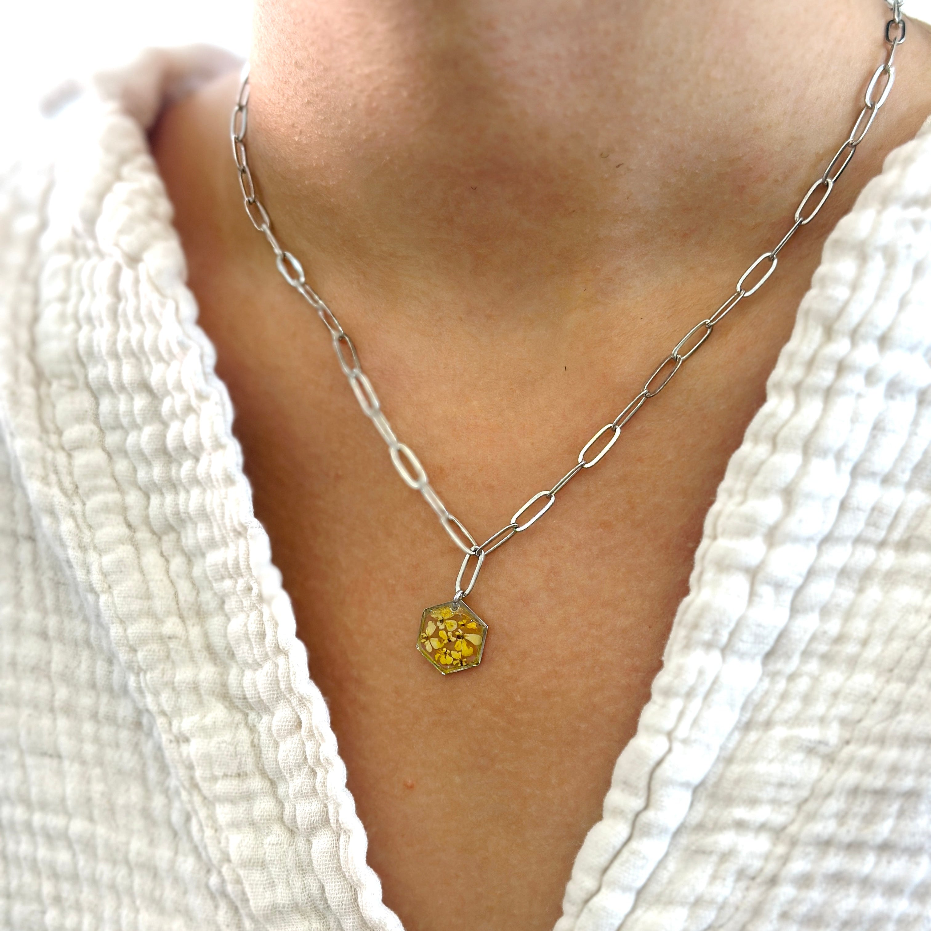 Çiçekler kuruma sürecini tamamladıktan sonra, her biri özenle minik parçalara ayrılır. Her bir çiçek parçası, reçine ile sabitlenerek koruma altına alınır. Bu sayede doğanın zarif dokusu uzun süre bozulmadan korunur ve takıların içinde ölümsüzleşir. Her detay, titizlikle işlenir ve takıya hayat verir.
