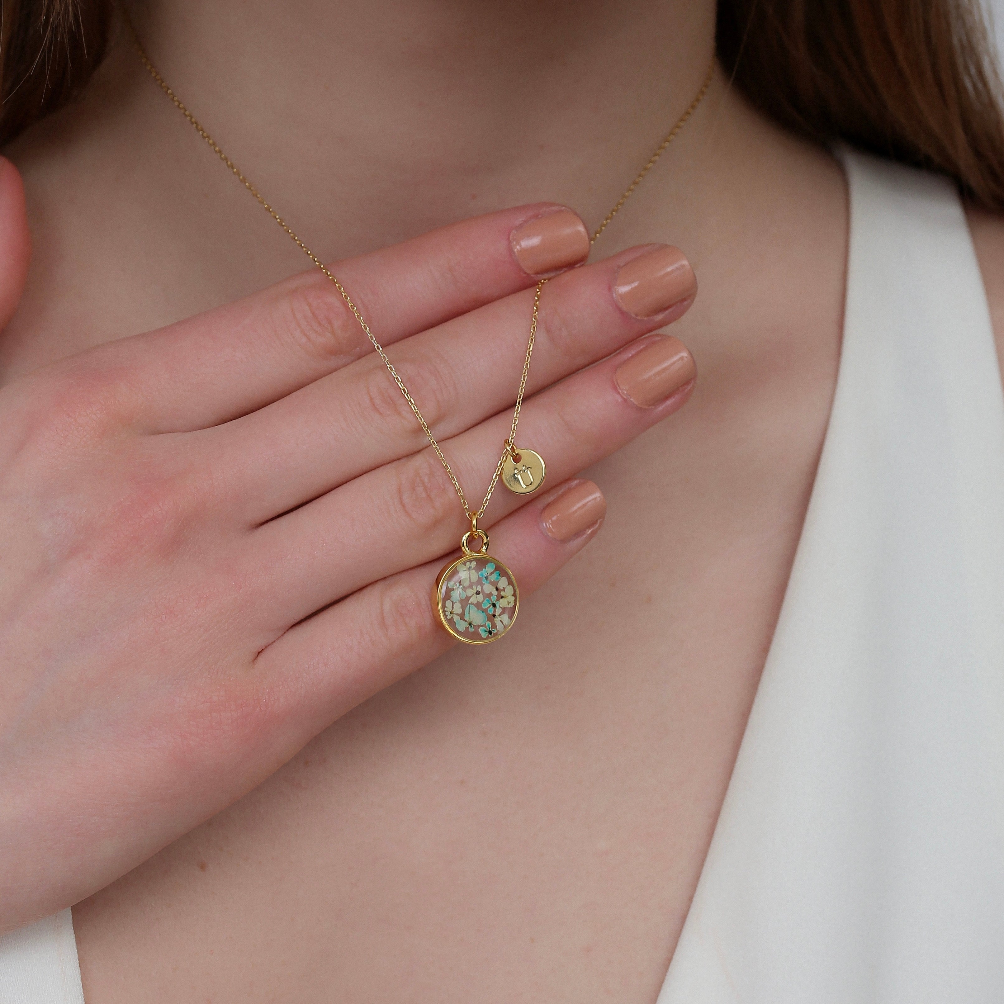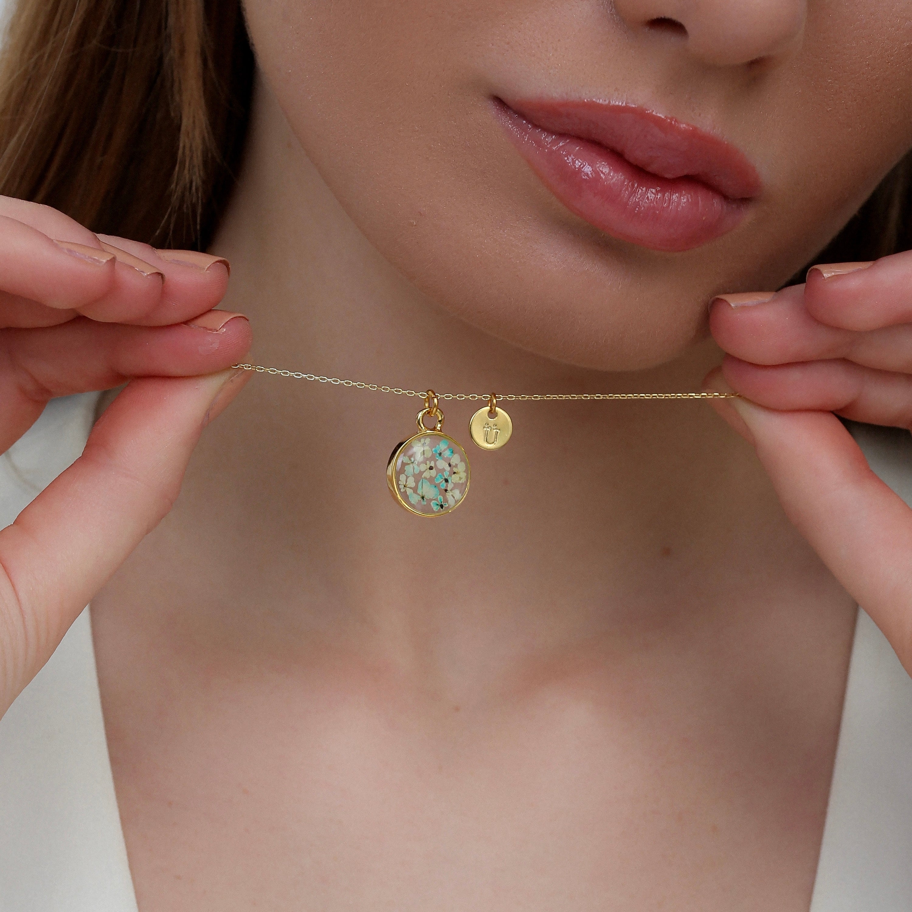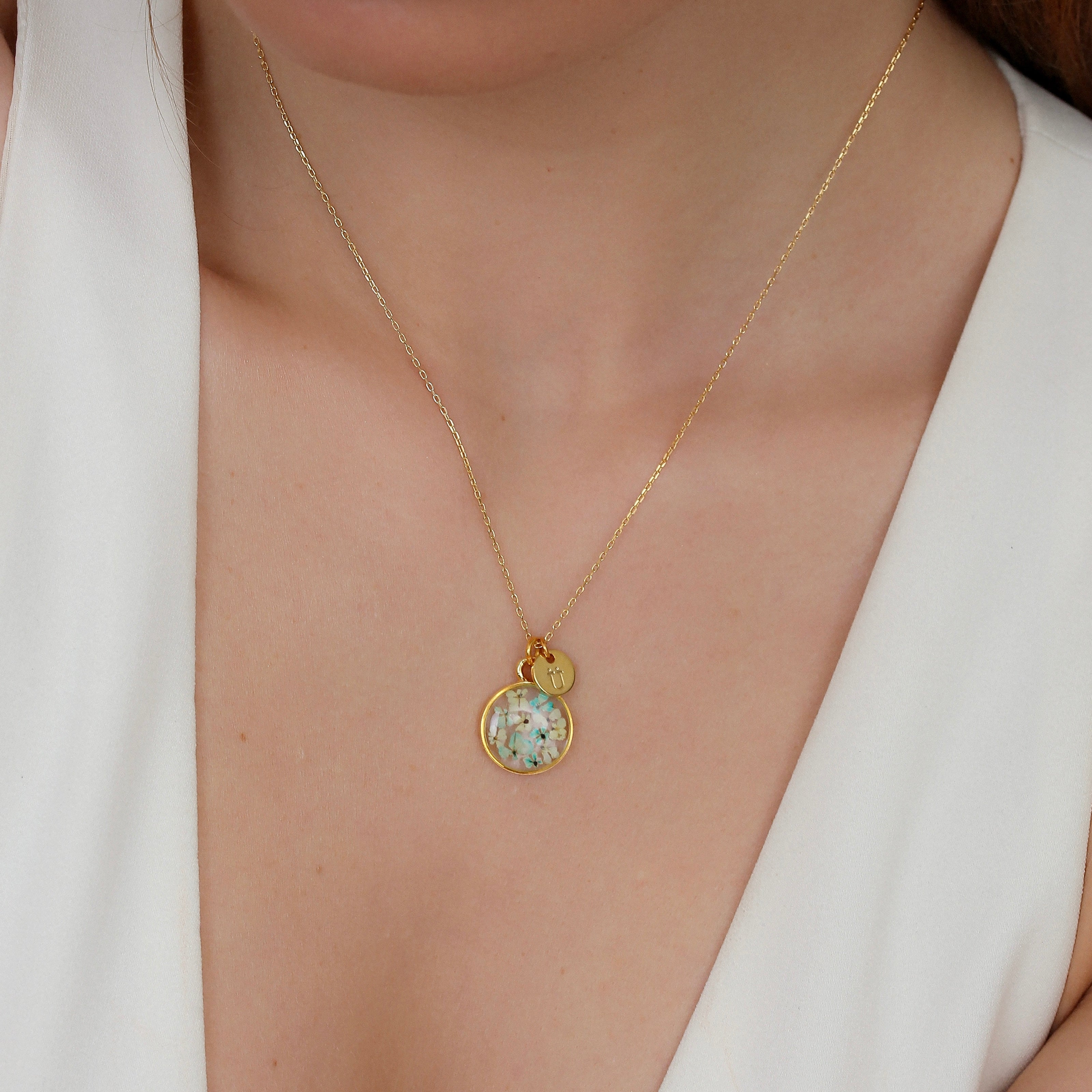 Çiçekler kuruma sürecini tamamladıktan sonra, her biri özenle minik parçalara ayrılır. Her bir çiçek parçası, reçine ile sabitlenerek koruma altına alınır. Bu sayede doğanın zarif dokusu uzun süre bozulmadan korunur ve takıların içinde ölümsüzleşir. Her detay, titizlikle işlenir ve takıya hayat verir.