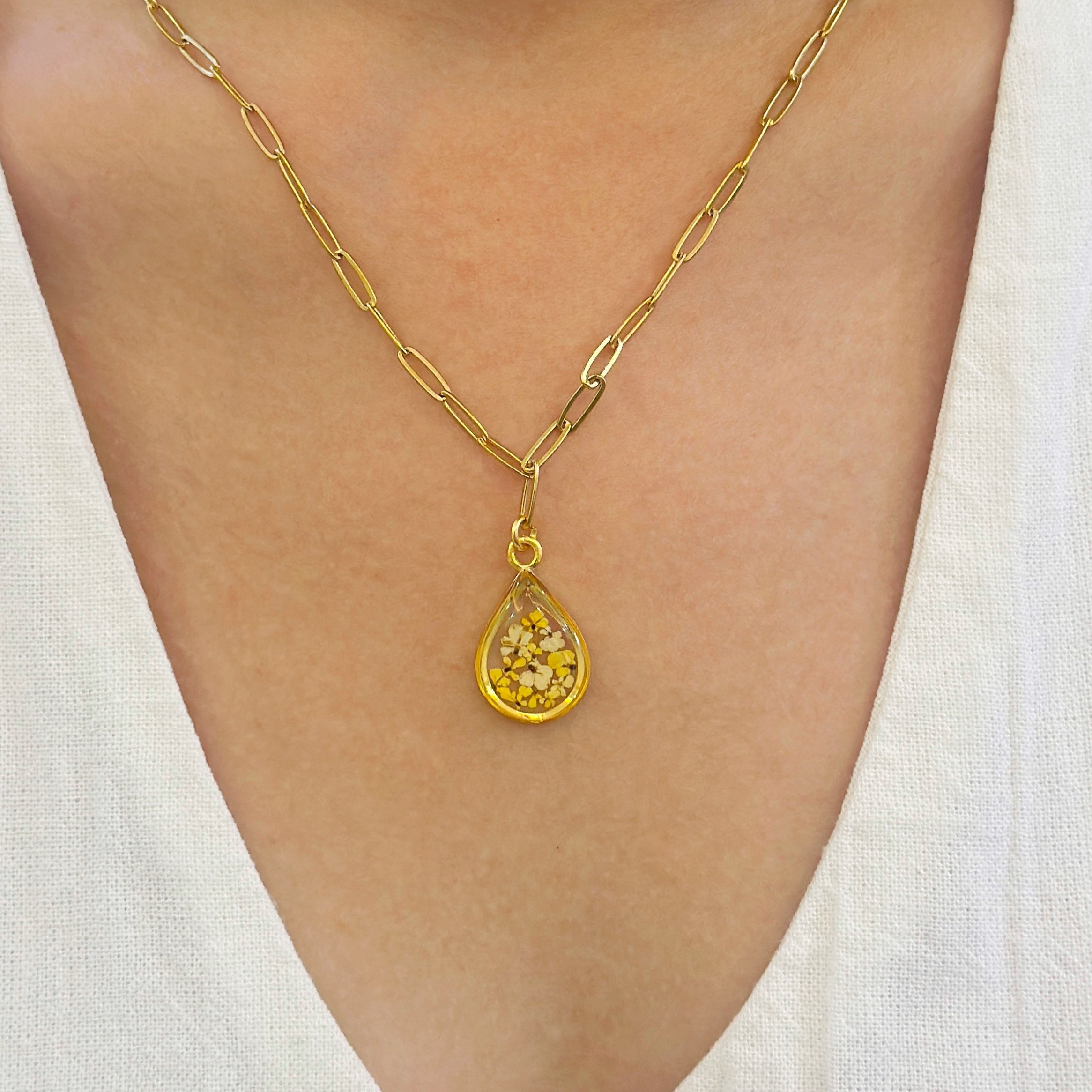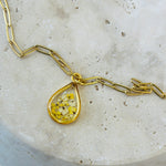 Çiçekler kuruma sürecini tamamladıktan sonra, her biri özenle minik parçalara ayrılır. Her bir çiçek parçası, reçine ile sabitlenerek koruma altına alınır. Bu sayede doğanın zarif dokusu uzun süre bozulmadan korunur ve takıların içinde ölümsüzleşir. Her detay, titizlikle işlenir ve takıya hayat verir.
