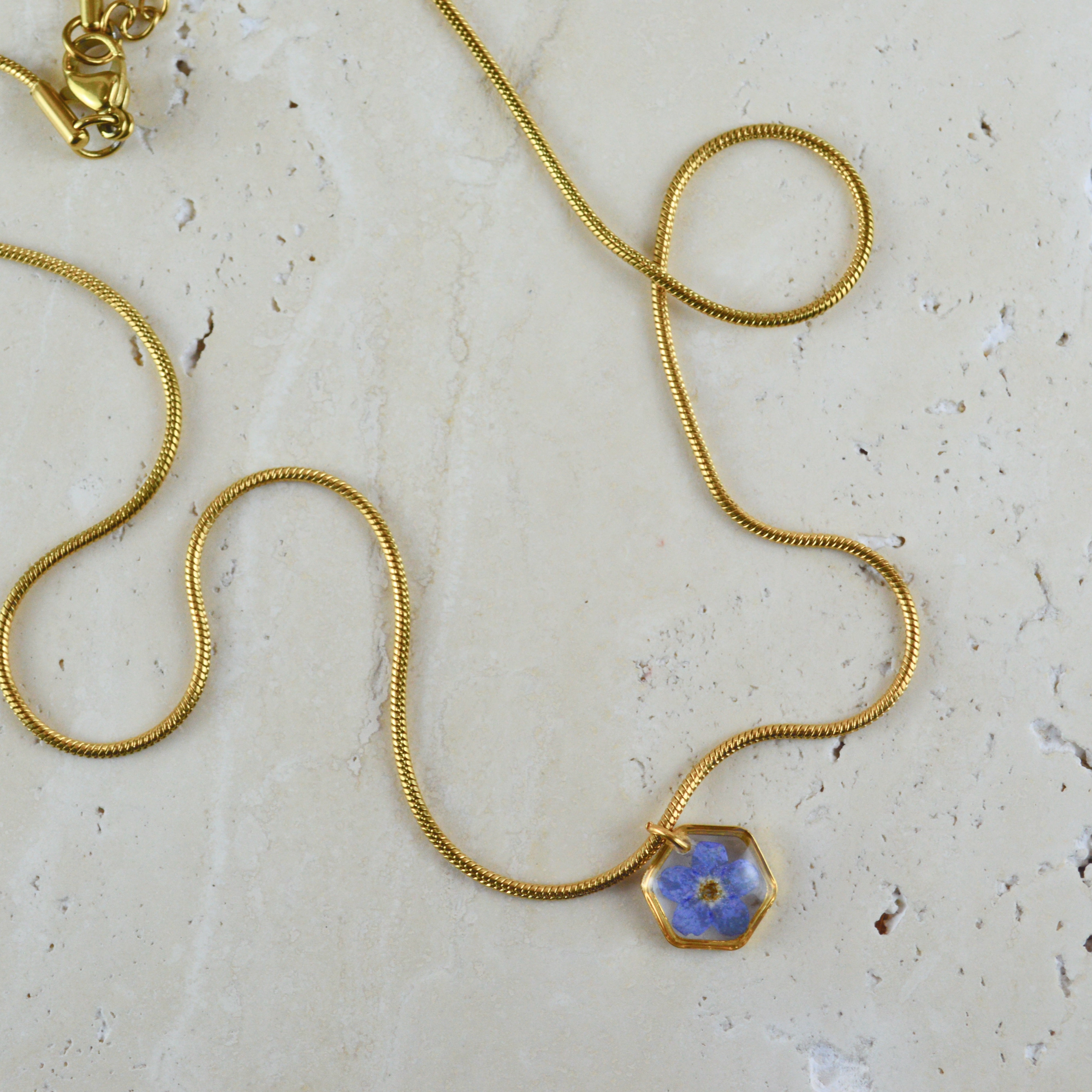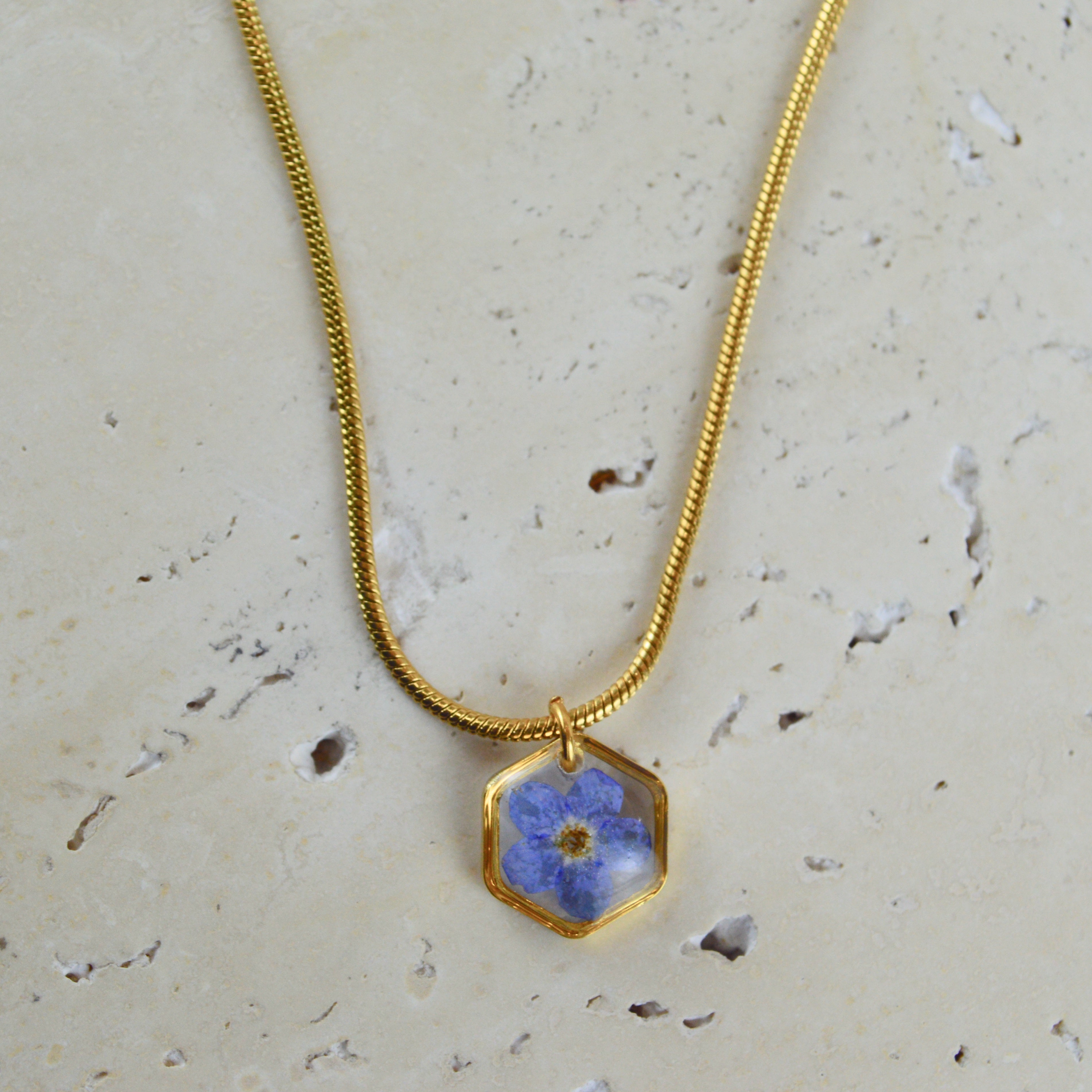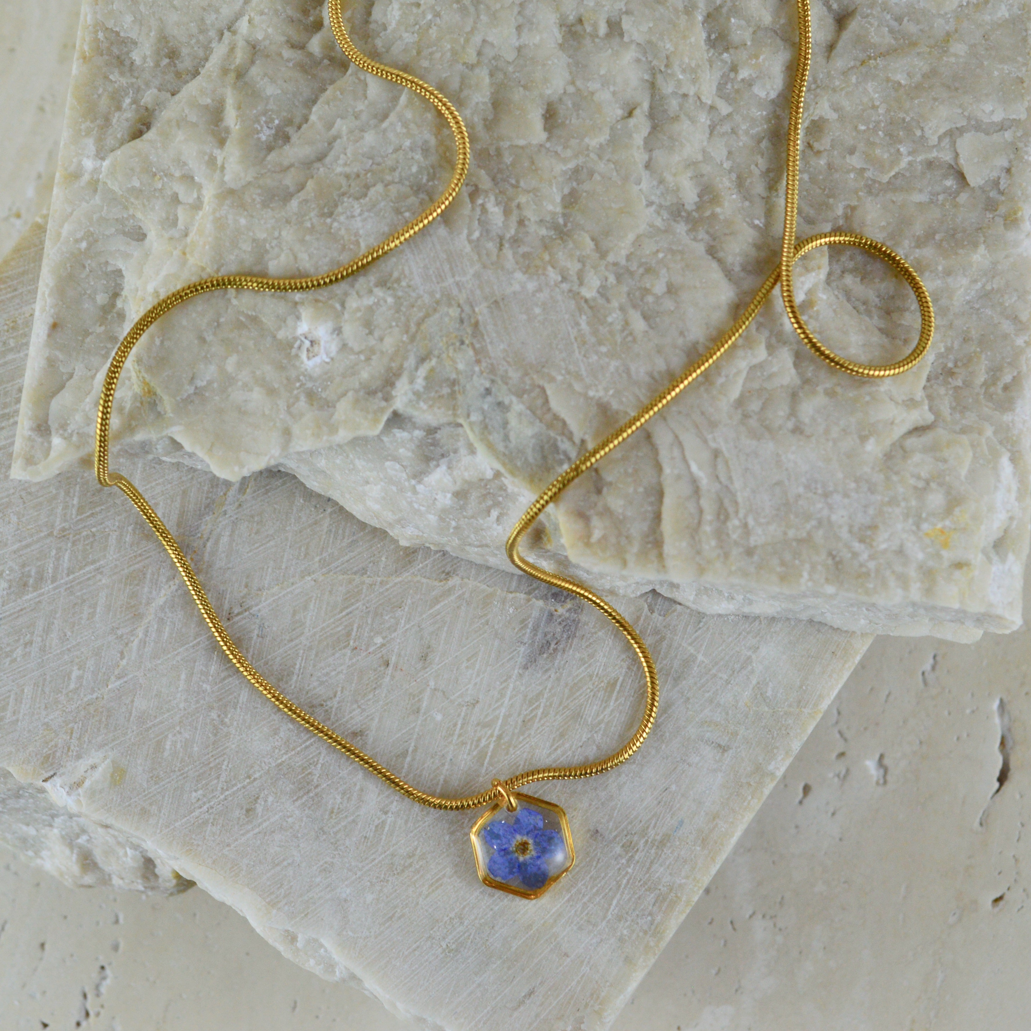 Teeny Weeny Hexagon Forget Me Not Kolye | İtalyan Zincir