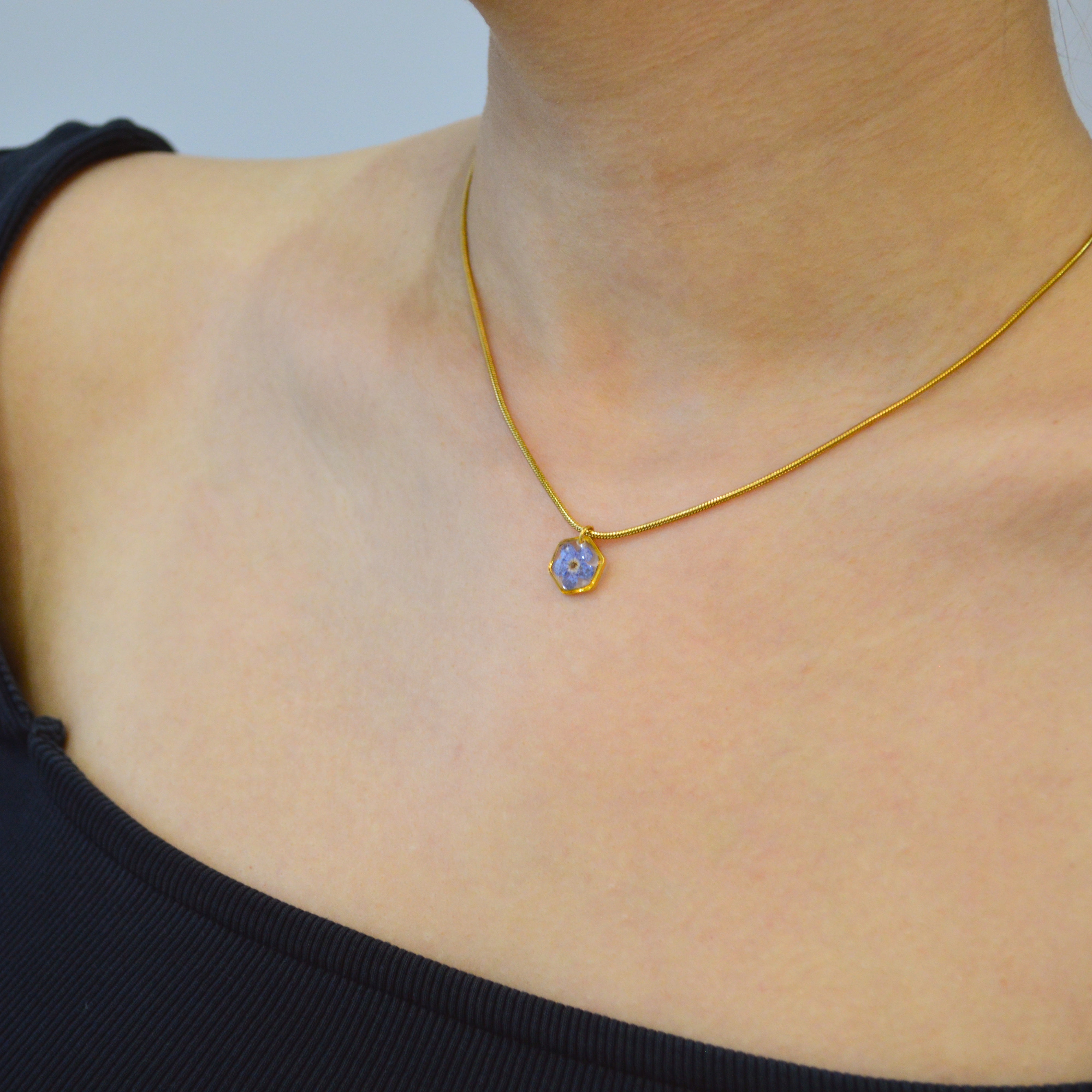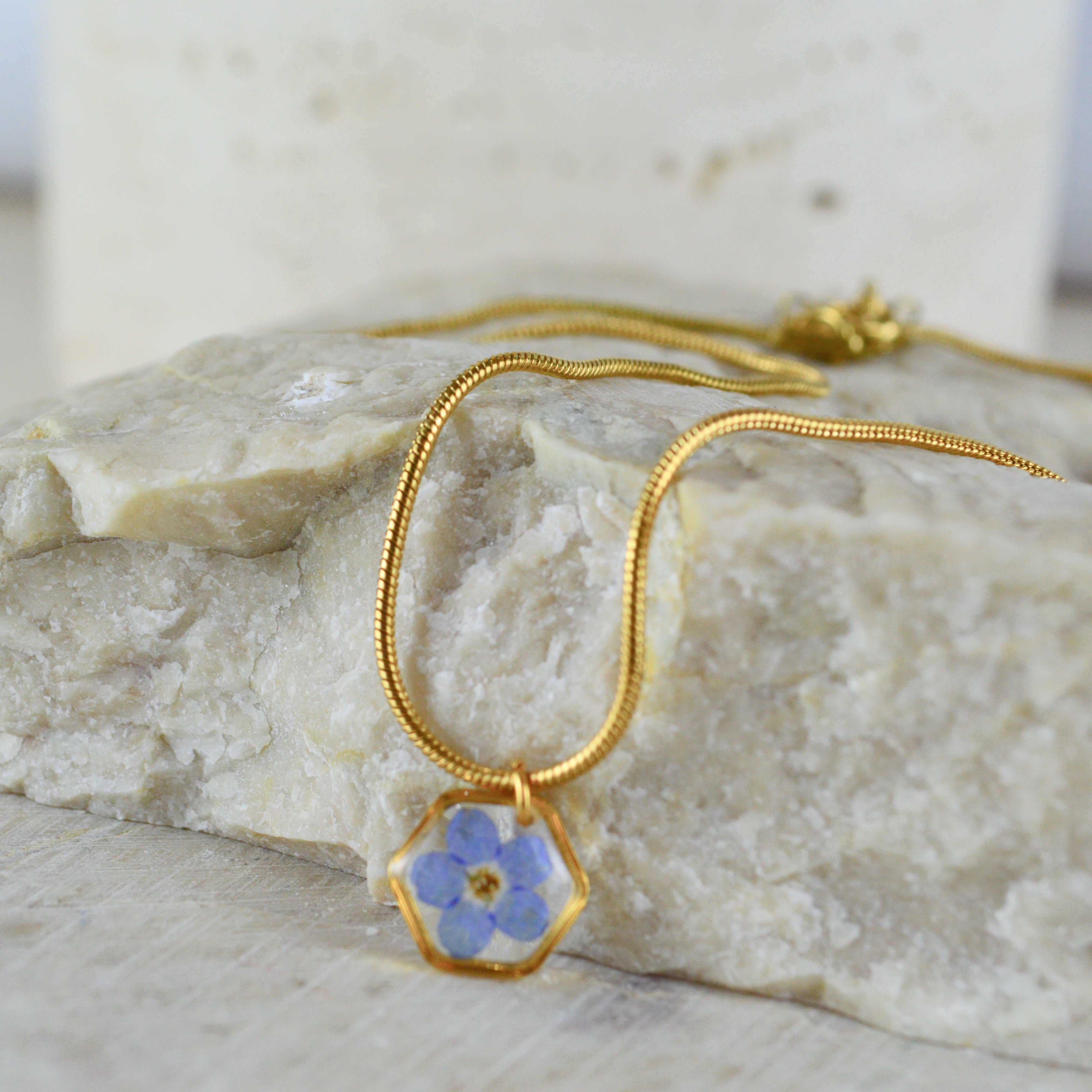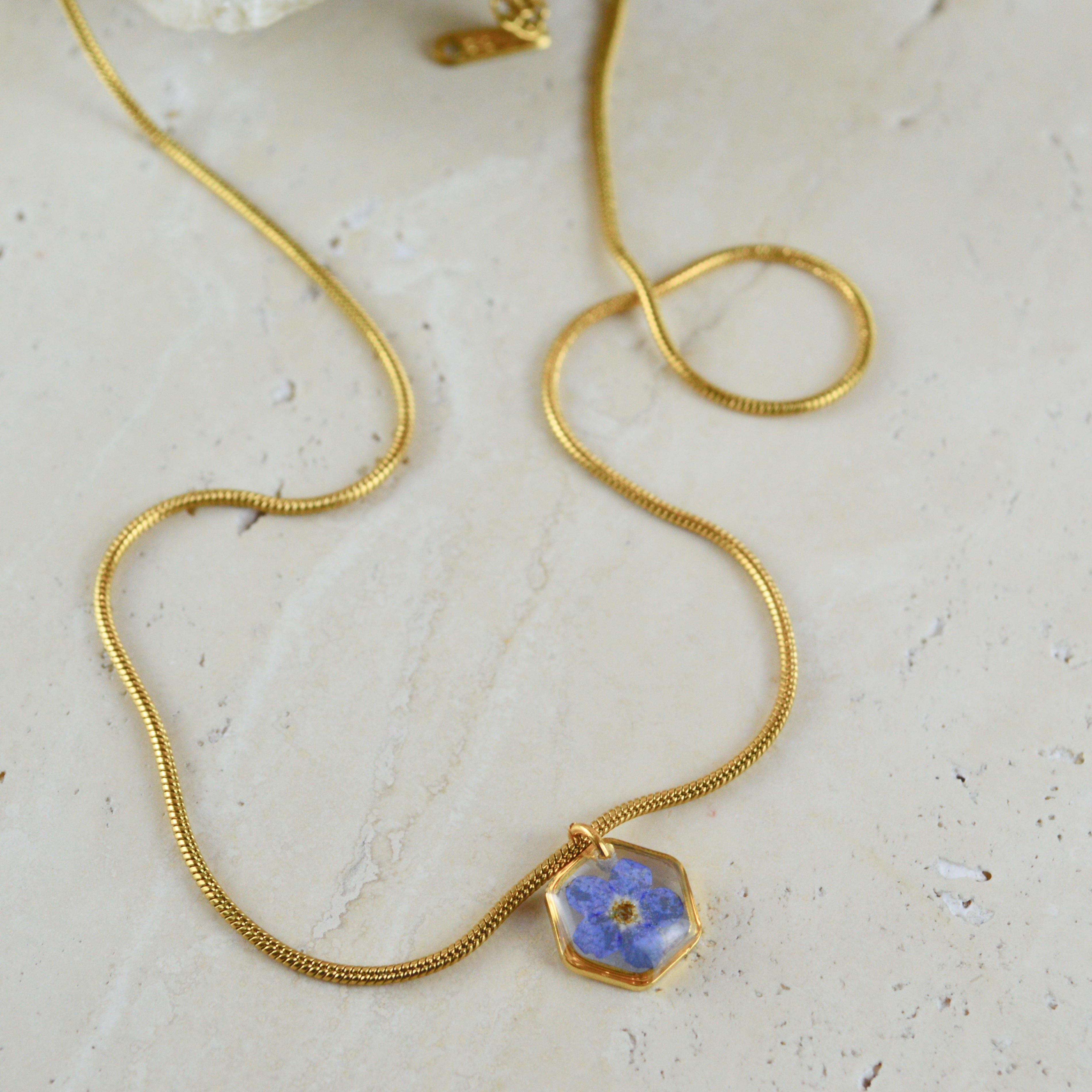 Teeny Weeny Hexagon Forget Me Not Kolye | İtalyan Zincir