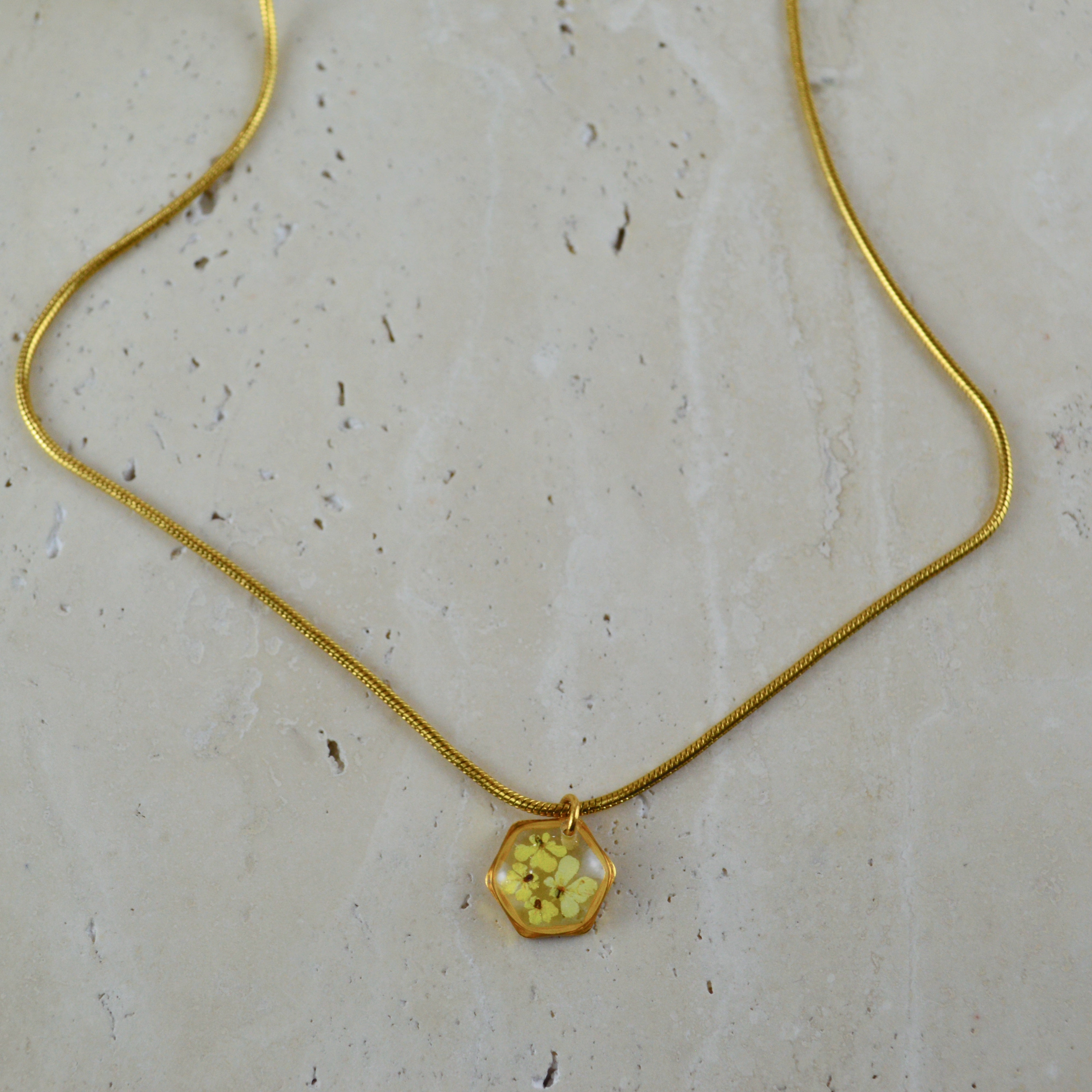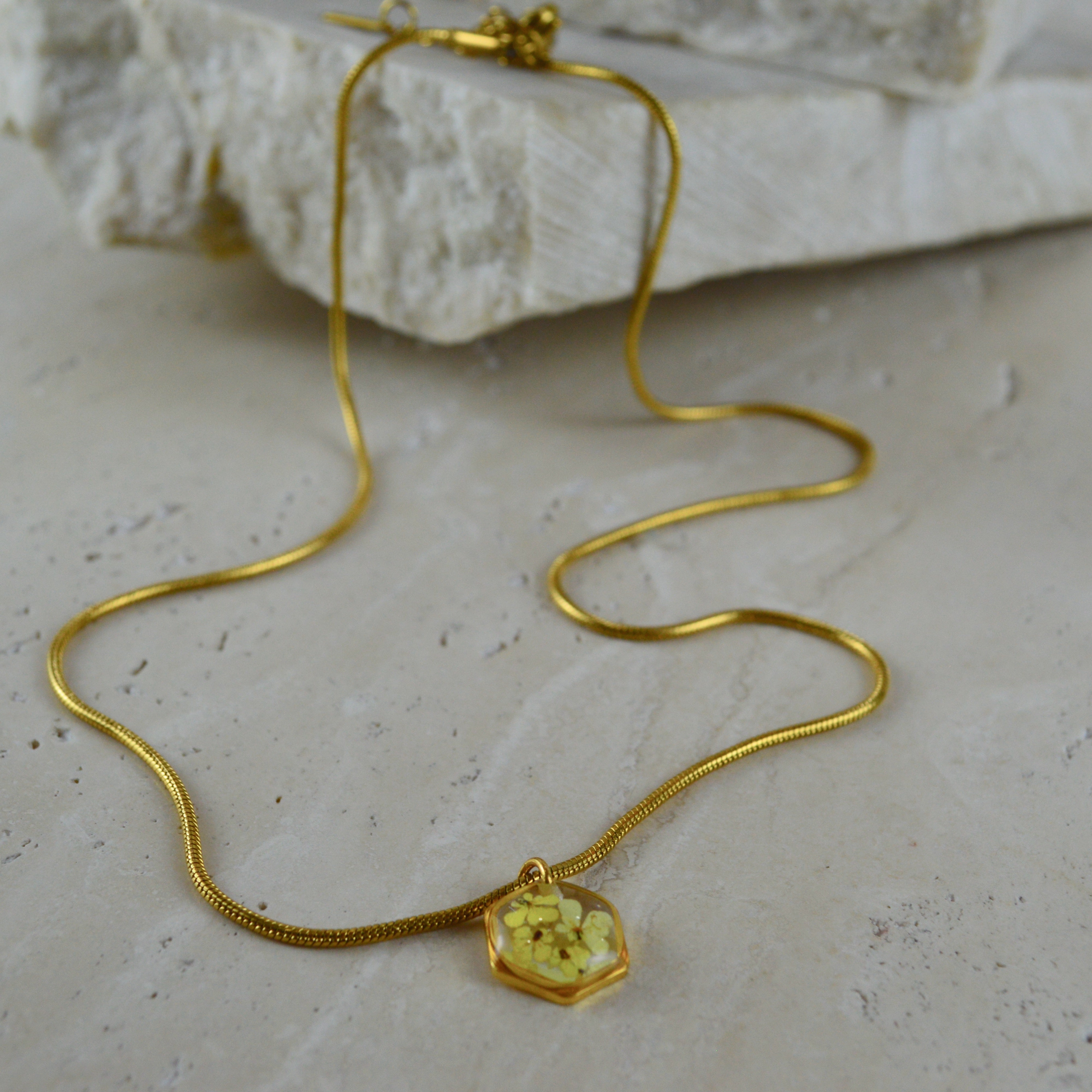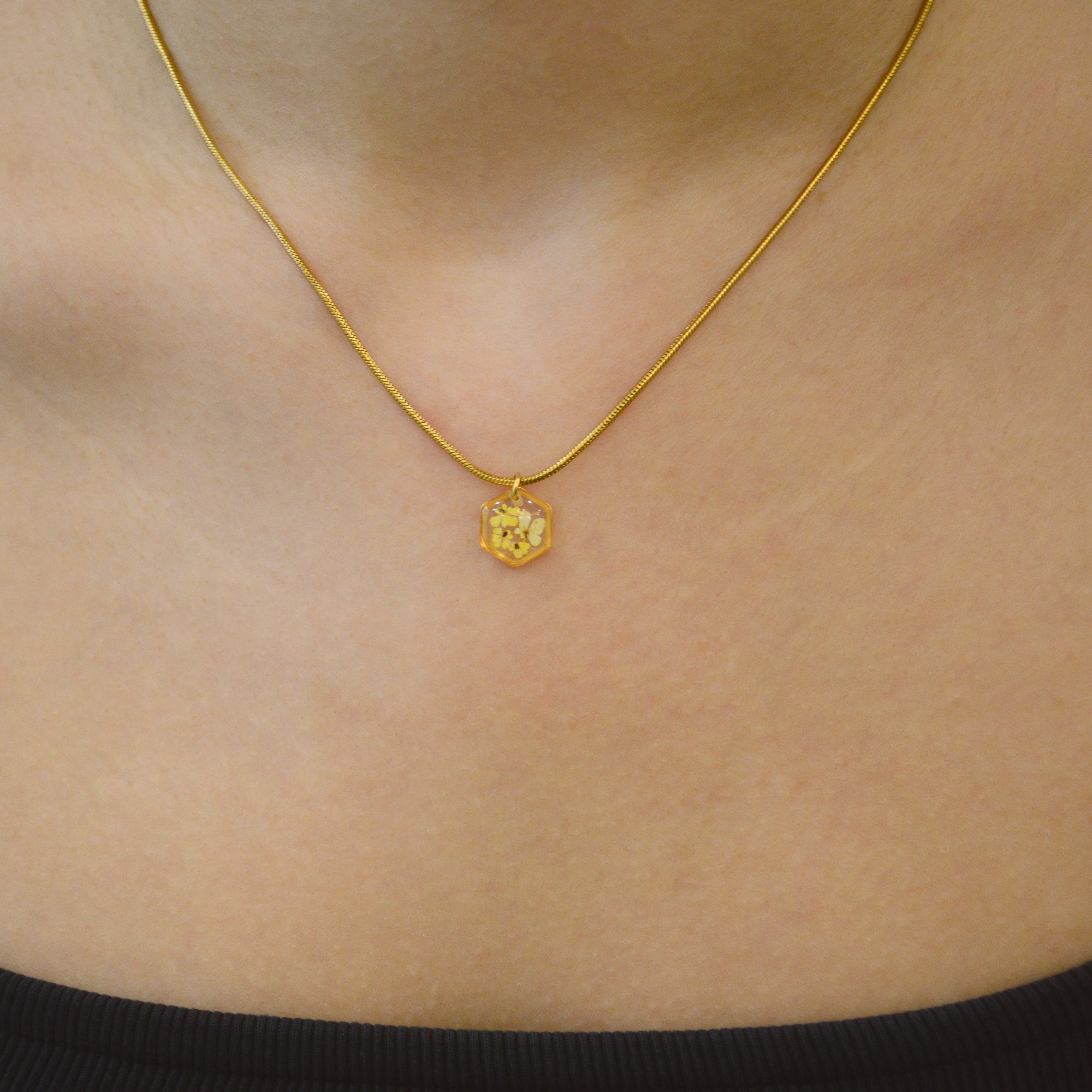 Teeny Weeny Hexagon Yellow Kolye | İtalyan Zincir