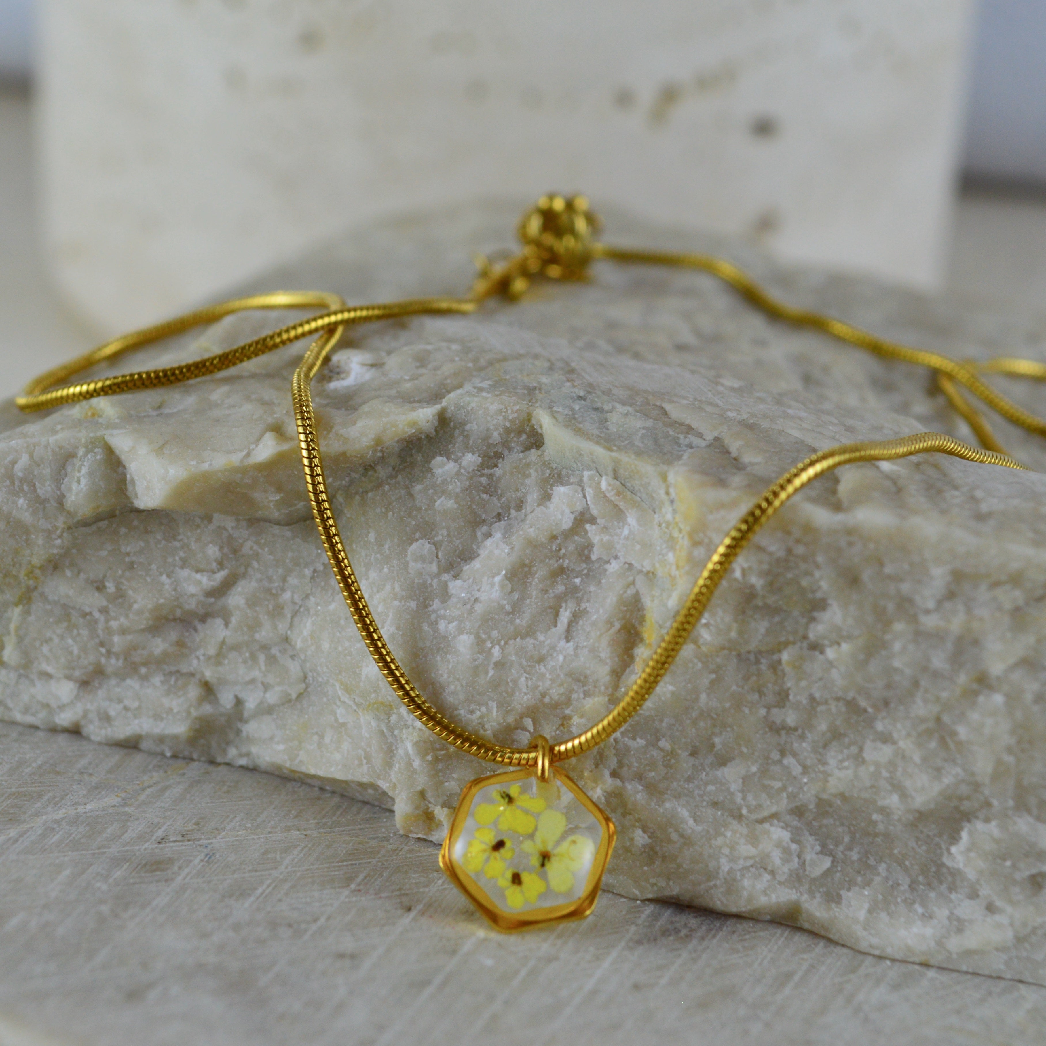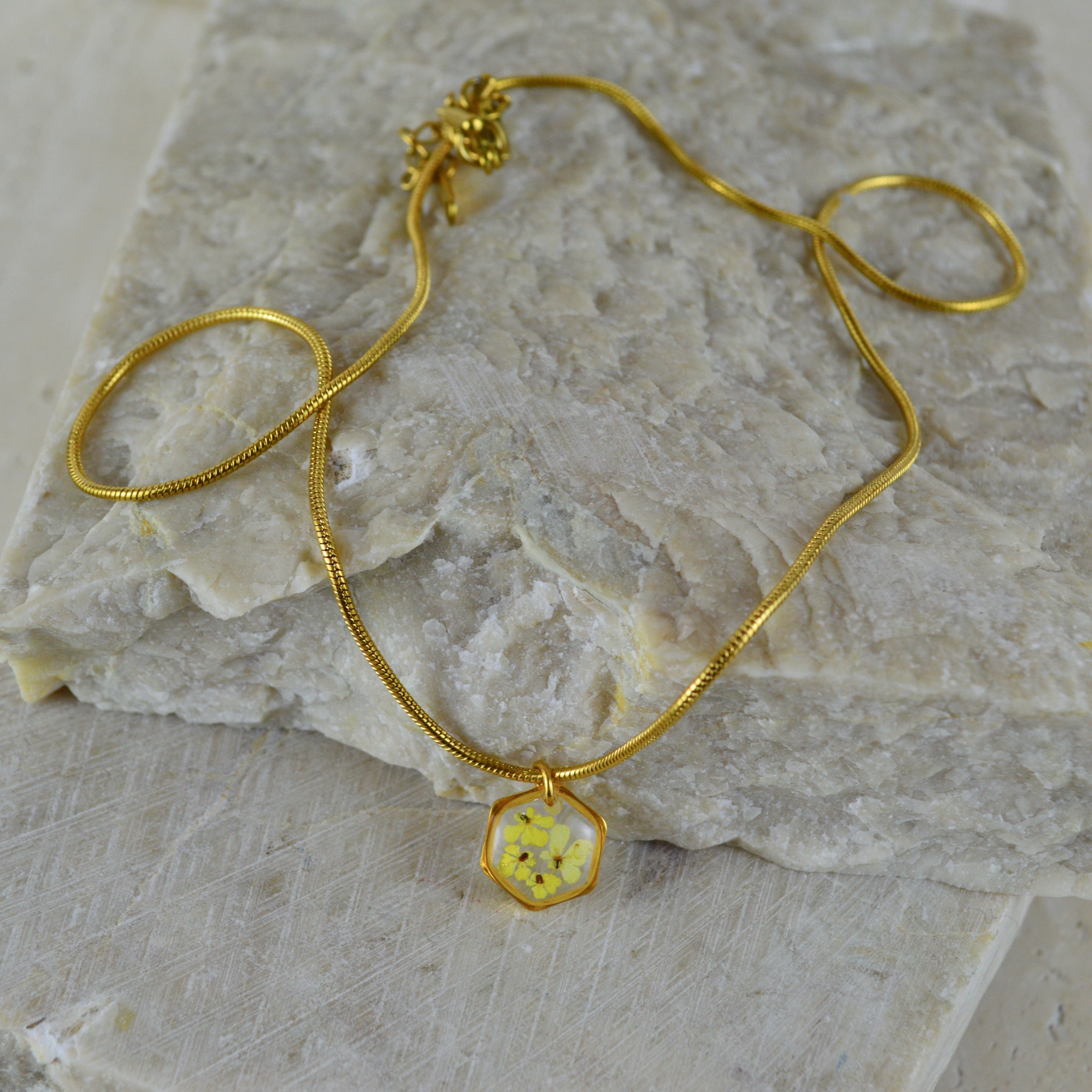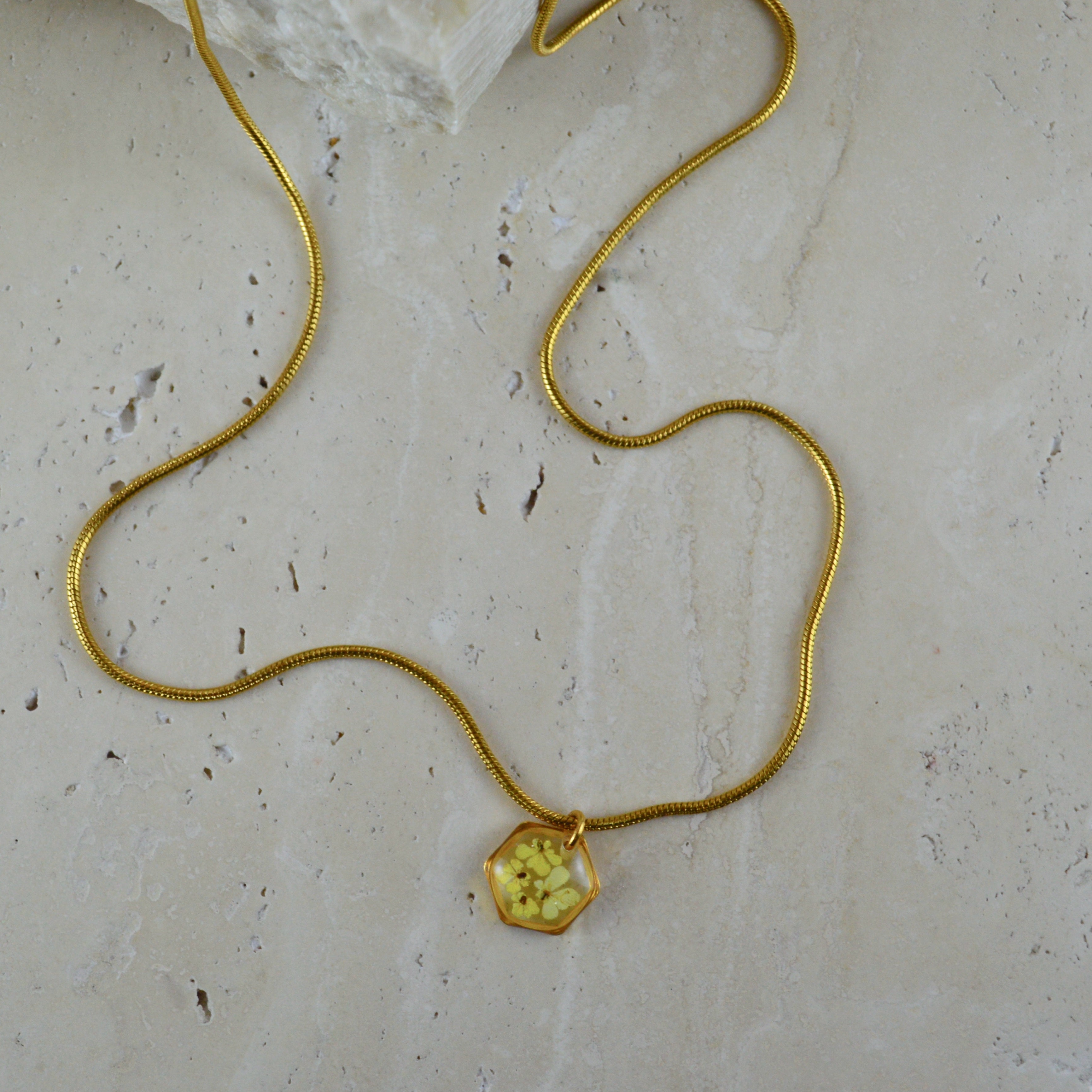 Teeny Weeny Hexagon Yellow Kolye | İtalyan Zincir