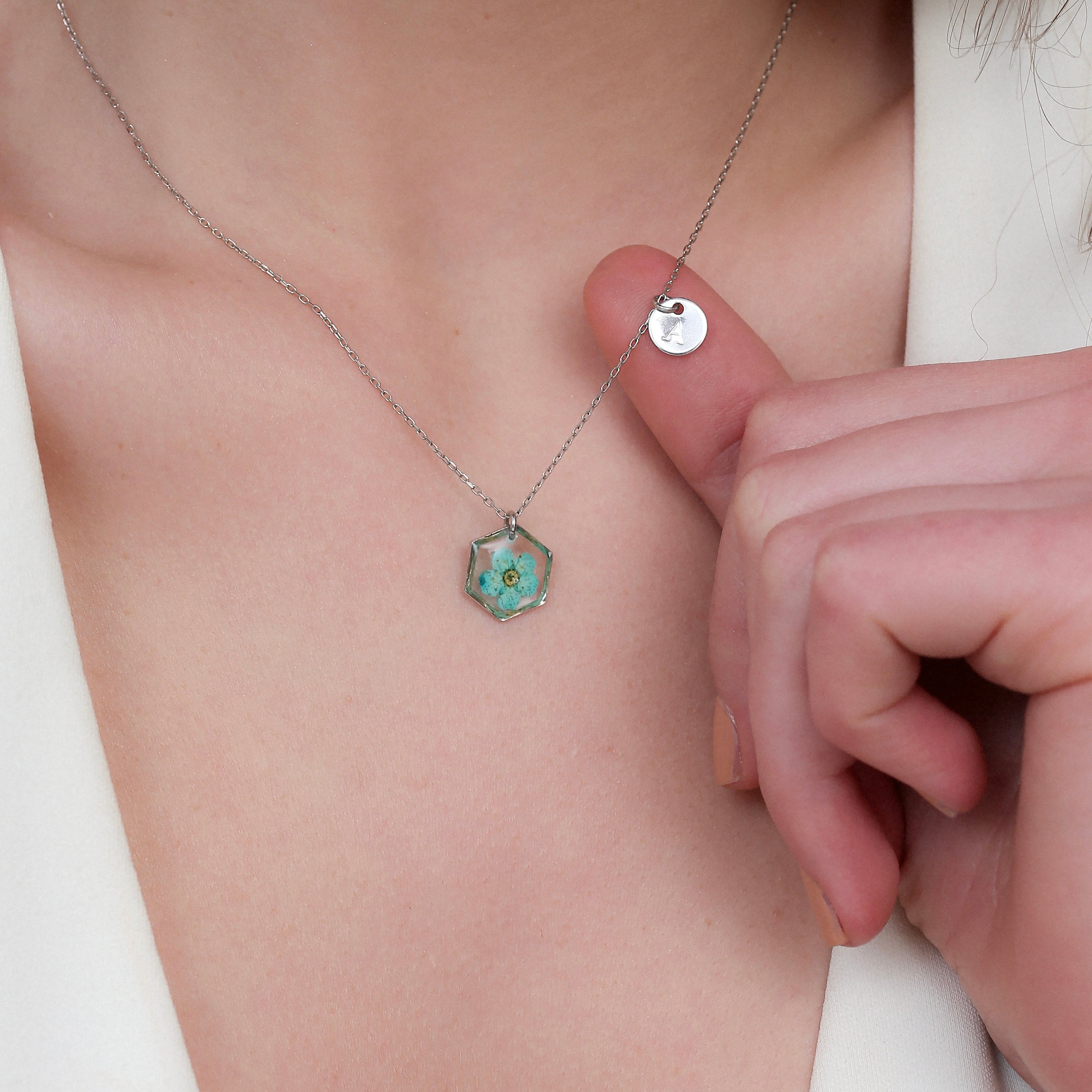 Çiçekler kuruma sürecini tamamladıktan sonra, her biri özenle minik parçalara ayrılır. Her bir çiçek parçası, reçine ile sabitlenerek koruma altına alınır. Bu sayede doğanın zarif dokusu uzun süre bozulmadan korunur ve takıların içinde ölümsüzleşir. Her detay, titizlikle işlenir ve takıya hayat verir.