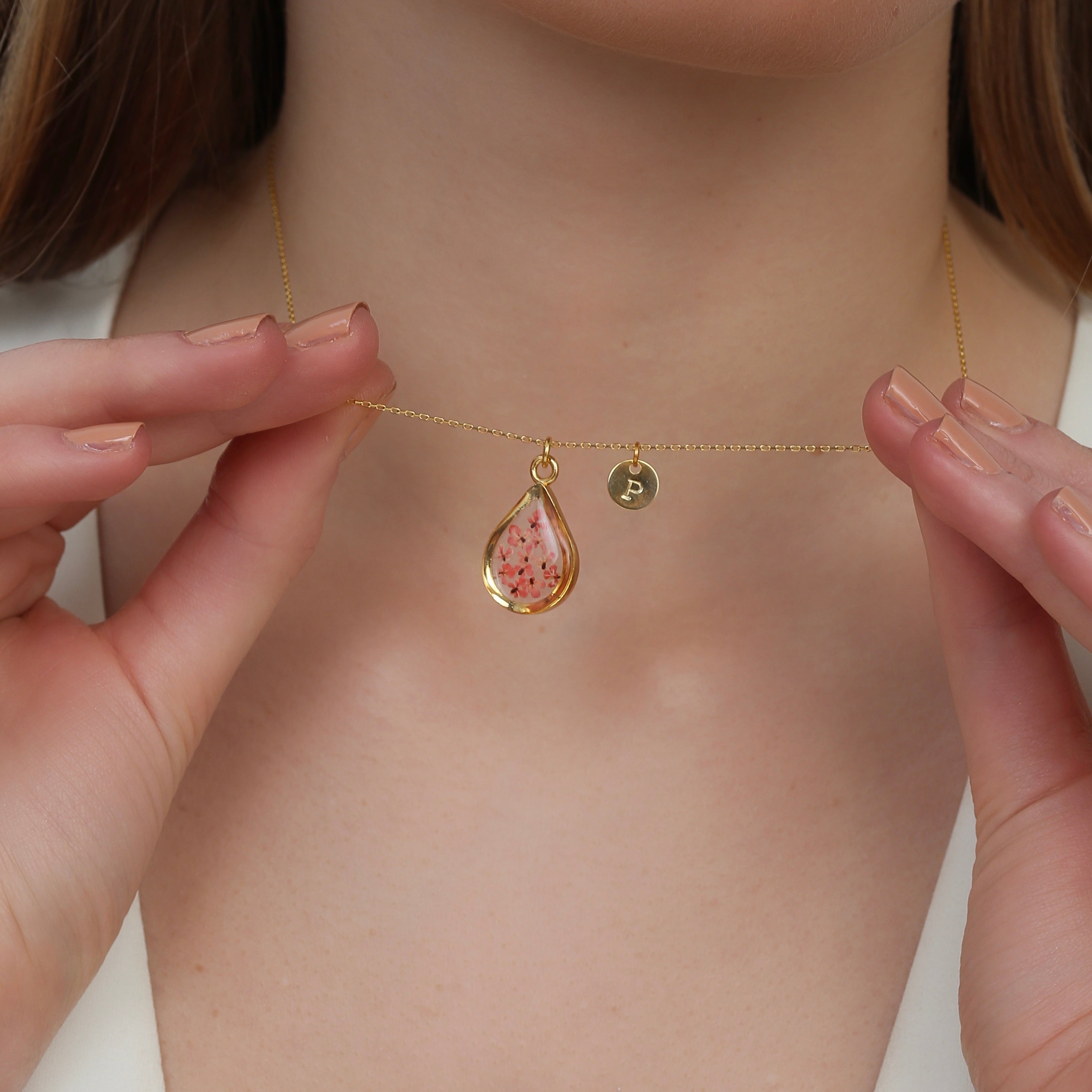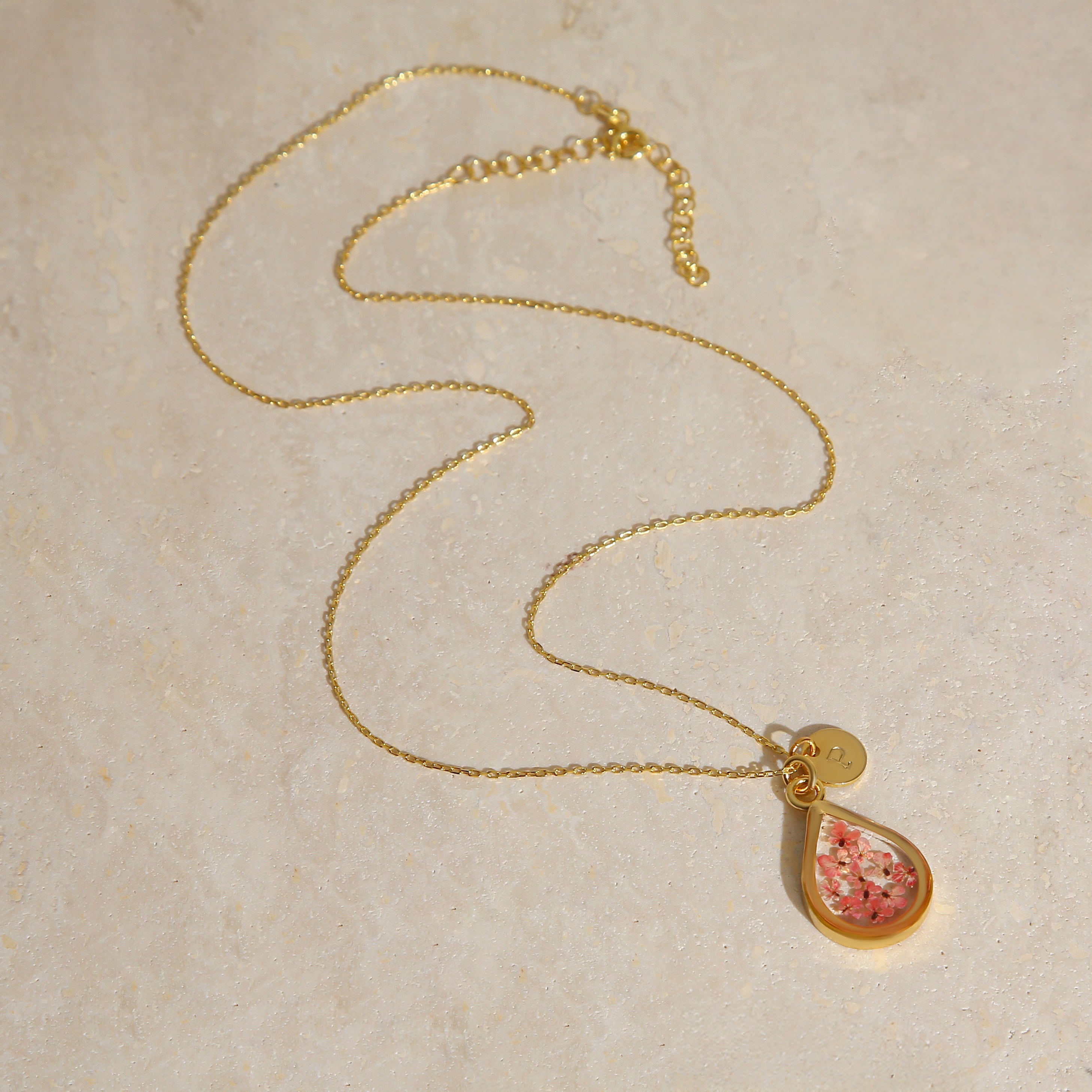 Çiçekler kuruma sürecini tamamladıktan sonra, her biri özenle minik parçalara ayrılır. Her bir çiçek parçası, reçine ile sabitlenerek koruma altına alınır. Bu sayede doğanın zarif dokusu uzun süre bozulmadan korunur ve takıların içinde ölümsüzleşir. Her detay, titizlikle işlenir ve takıya hayat verir.