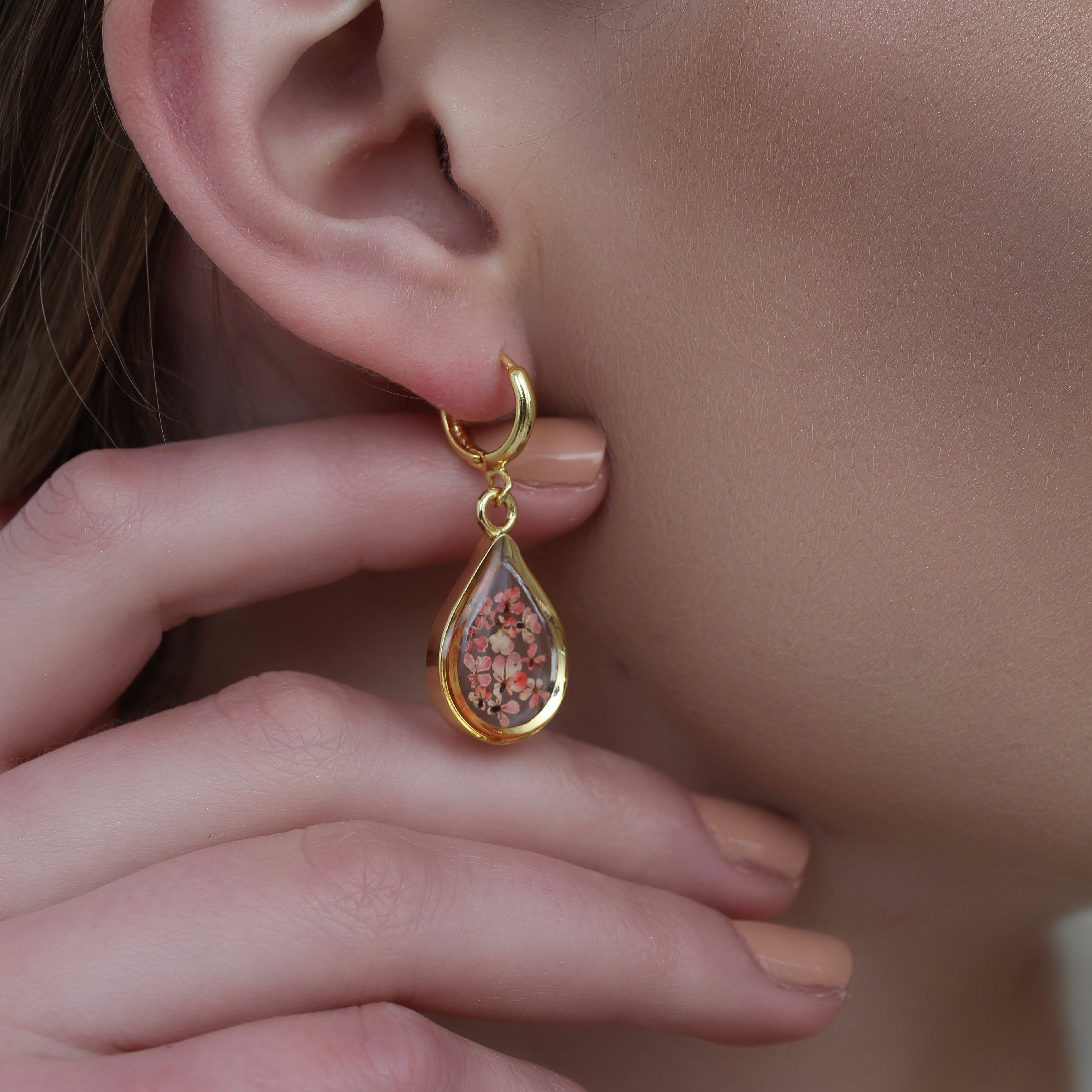 Çiçekler kuruma sürecini tamamladıktan sonra, her biri özenle minik parçalara ayrılır. Her bir çiçek parçası, reçine ile sabitlenerek koruma altına alınır. Bu sayede doğanın zarif dokusu uzun süre bozulmadan korunur ve takıların içinde ölümsüzleşir. Her detay, titizlikle işlenir ve takıya hayat verir.