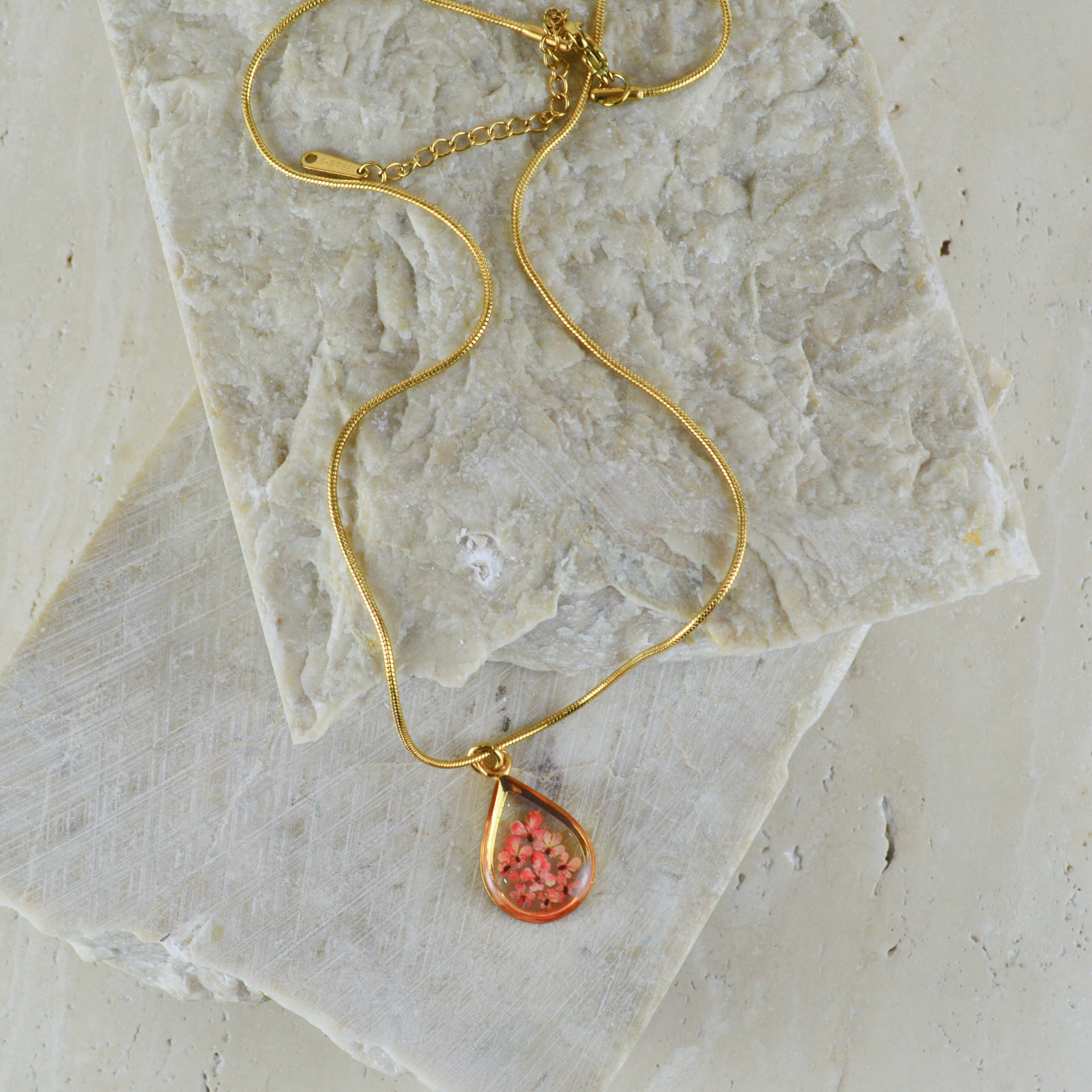 Depth of Pink Teardrop Kolye | İtalyan Zincir