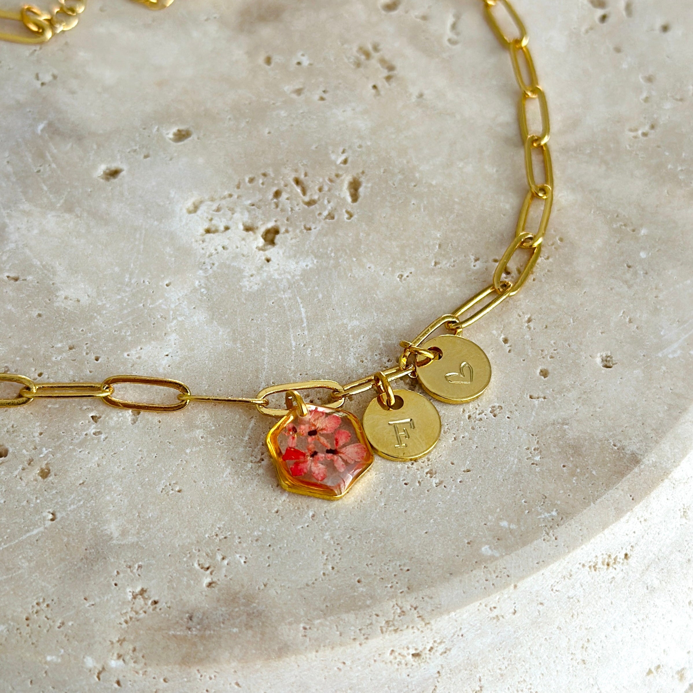 Son adımda, bu benzersiz çiçek parçaları, üstün kaliteli altın kaplama materyallerle birleşir. Her takı, birer kişisel bahçe gibi tasarlanır. Fiorel takıları, sadece bir aksesuar değil, aynı zamanda her bireye özel, zarif ve anlamlı bir hikaye sunar. Her ürün, bir çiçek gibi nadir ve değerli, size özel bir dokunuş taşır.