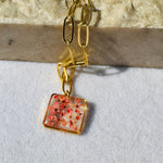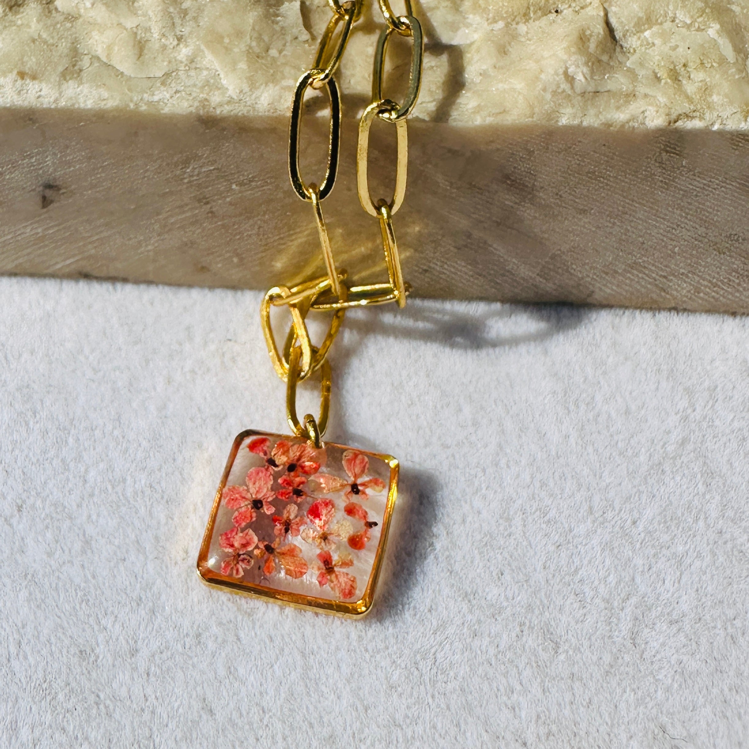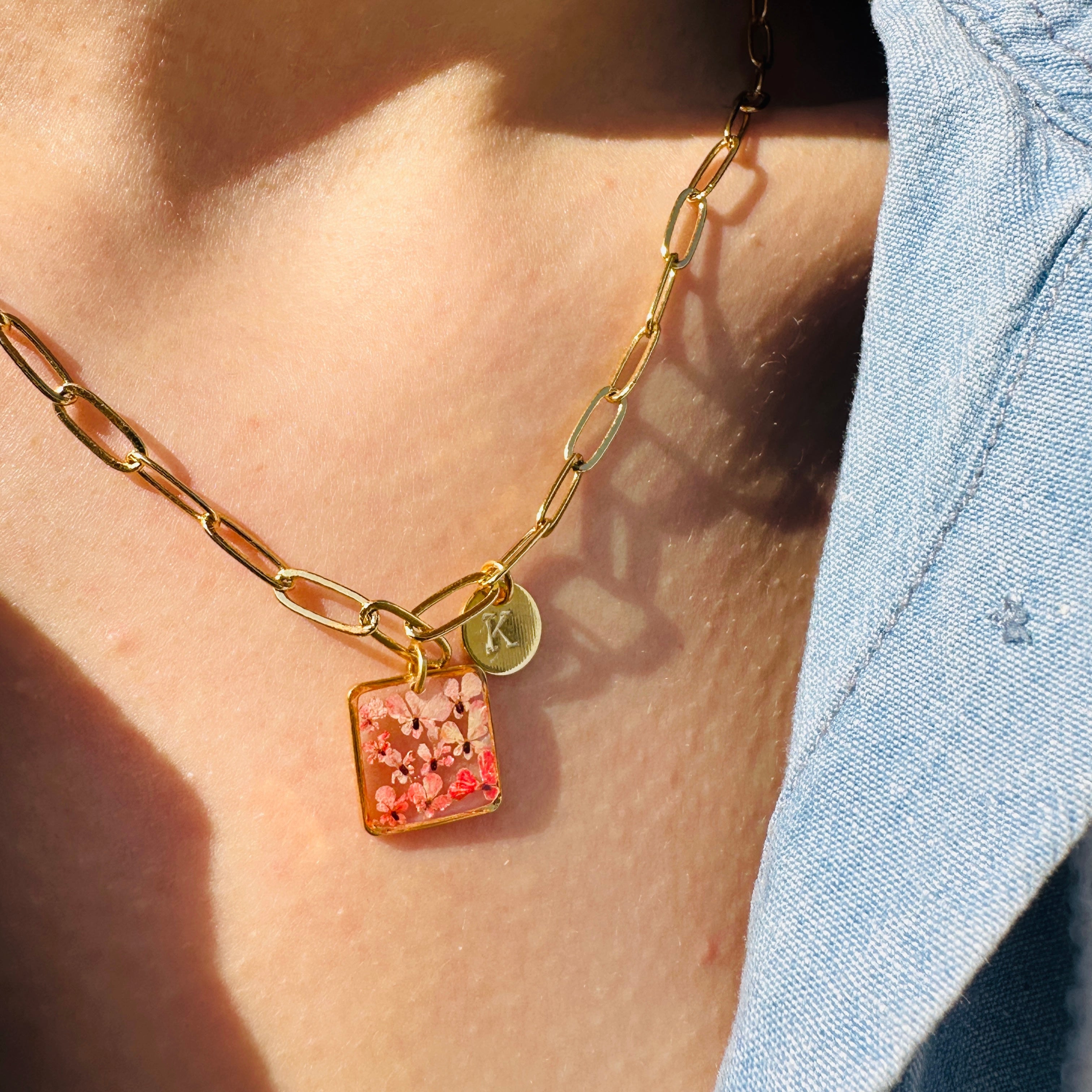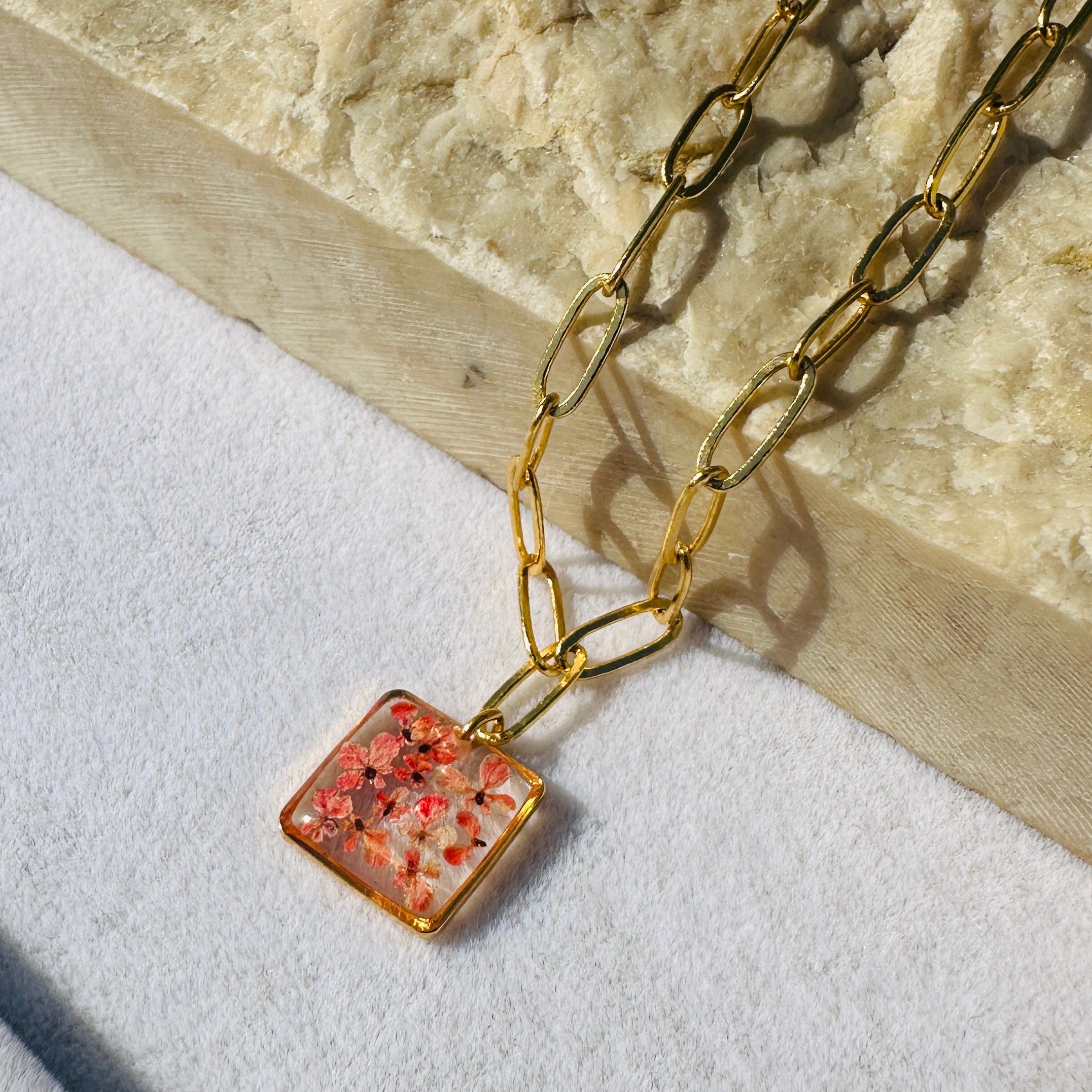 Çiçekler kuruma sürecini tamamladıktan sonra, her biri özenle minik parçalara ayrılır. Her bir çiçek parçası, reçine ile sabitlenerek koruma altına alınır. Bu sayede doğanın zarif dokusu uzun süre bozulmadan korunur ve takıların içinde ölümsüzleşir. Her detay, titizlikle işlenir ve takıya hayat verir.