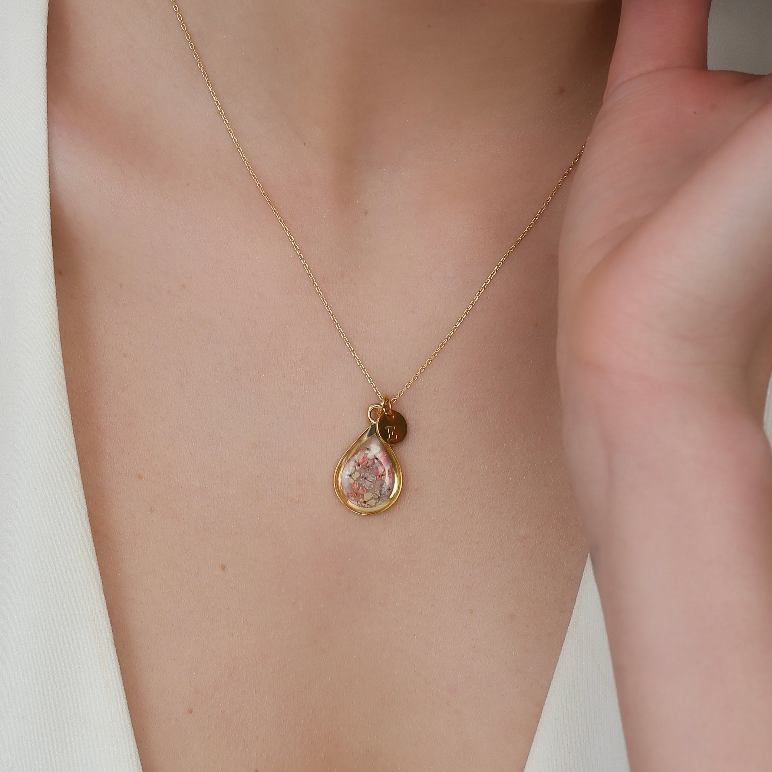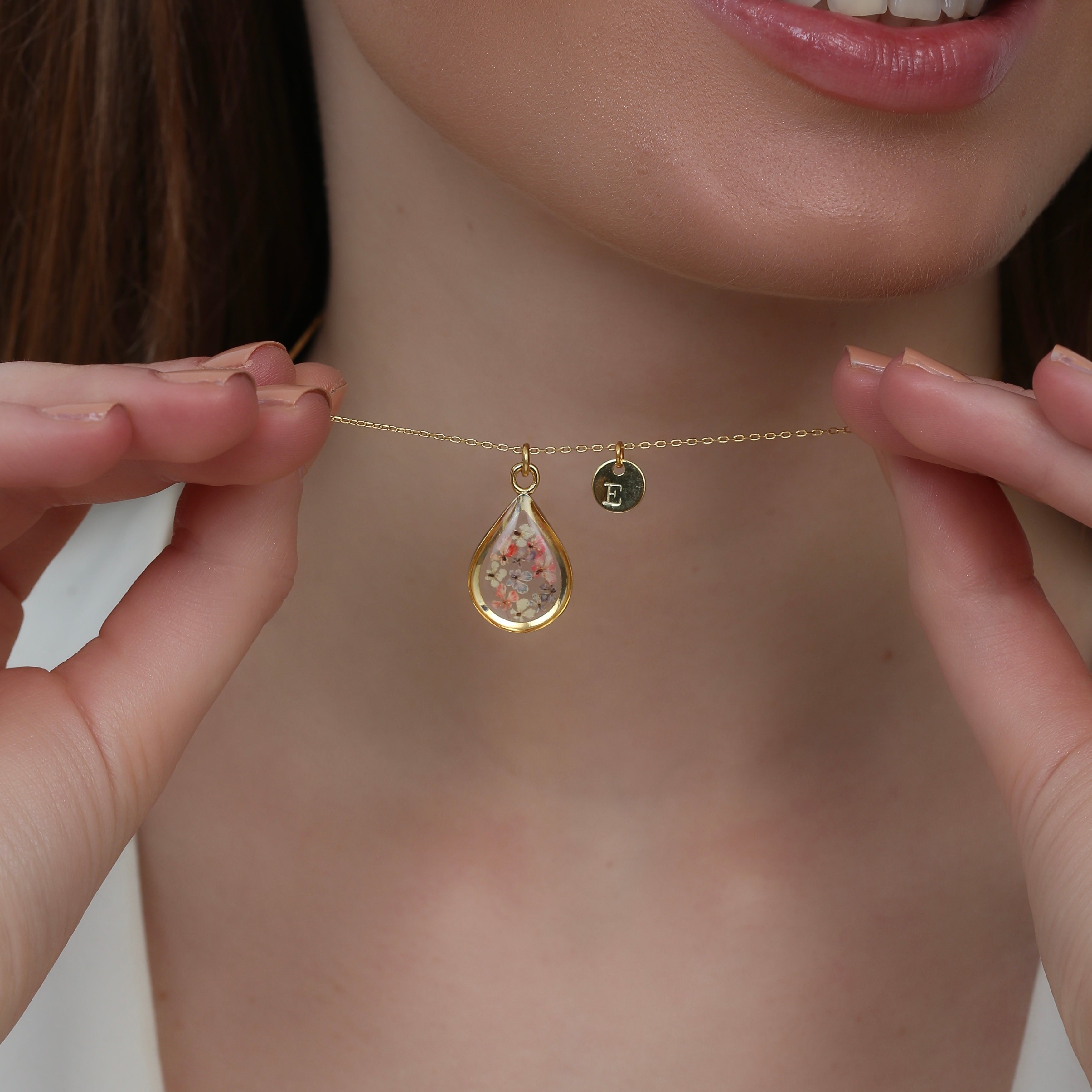 Çiçekler kuruma sürecini tamamladıktan sonra, her biri özenle minik parçalara ayrılır. Her bir çiçek parçası, reçine ile sabitlenerek koruma altına alınır. Bu sayede doğanın zarif dokusu uzun süre bozulmadan korunur ve takıların içinde ölümsüzleşir. Her detay, titizlikle işlenir ve takıya hayat verir.