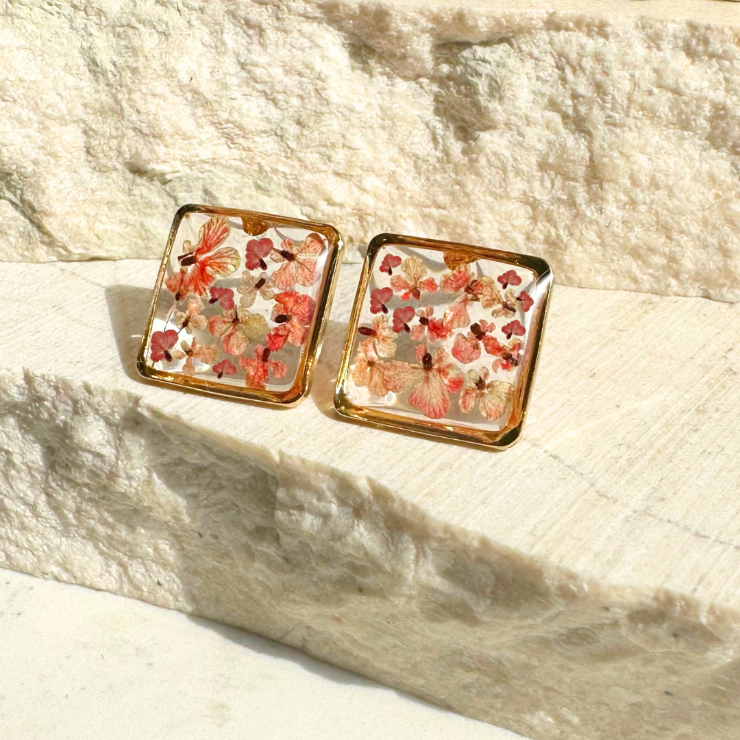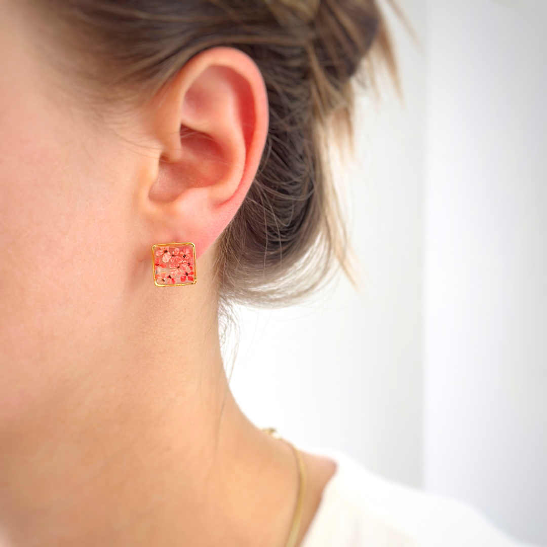 Teeny Weeny Square Pink Küpe