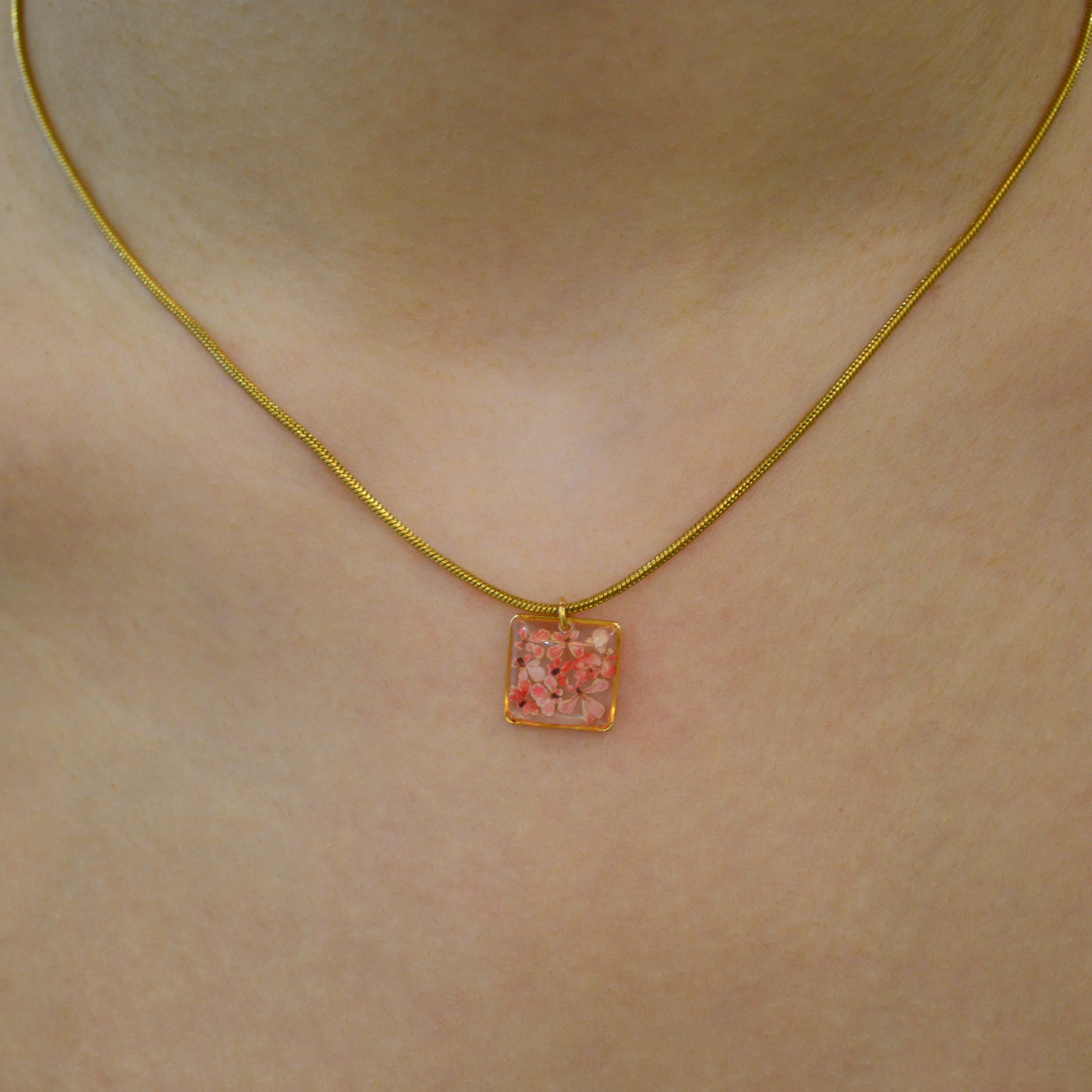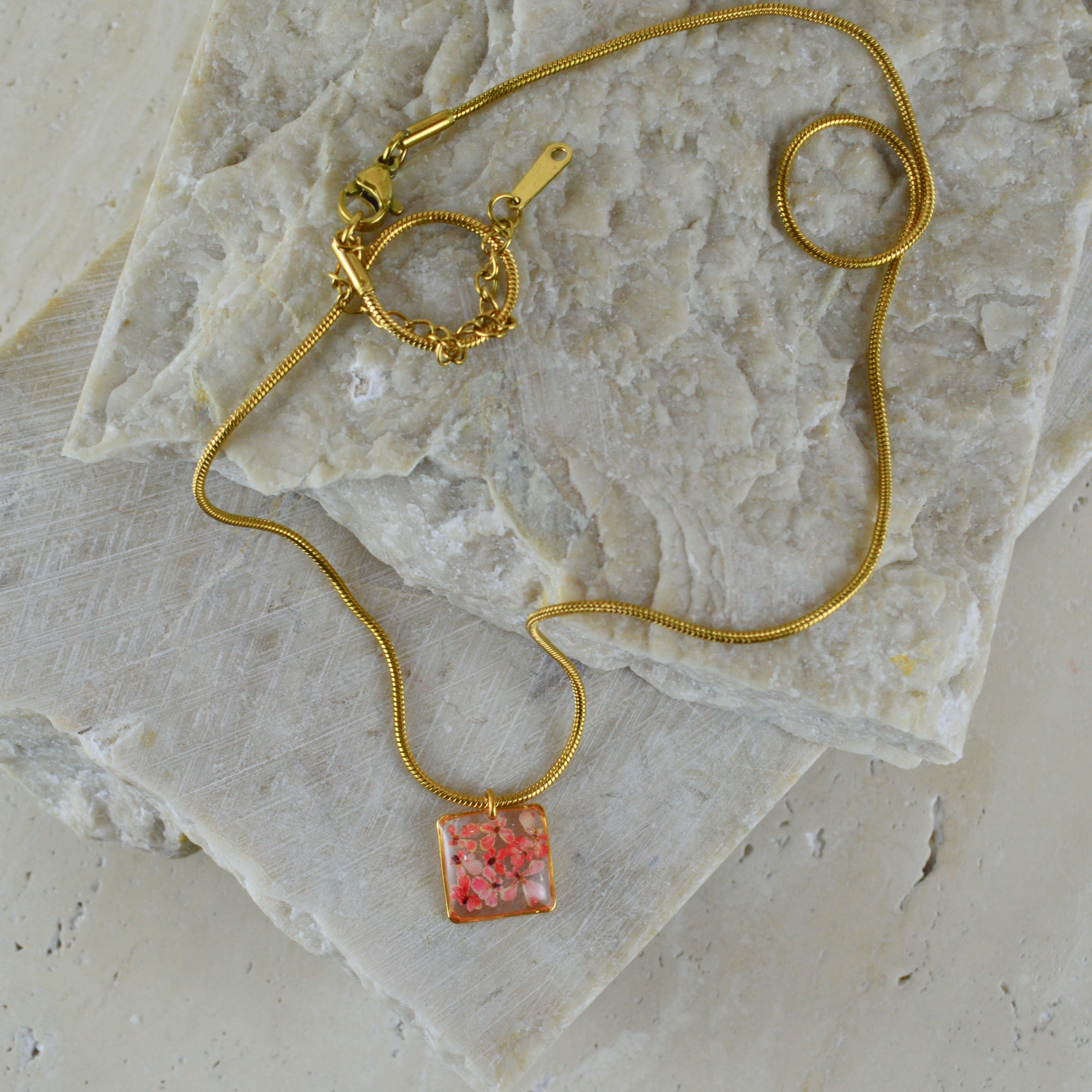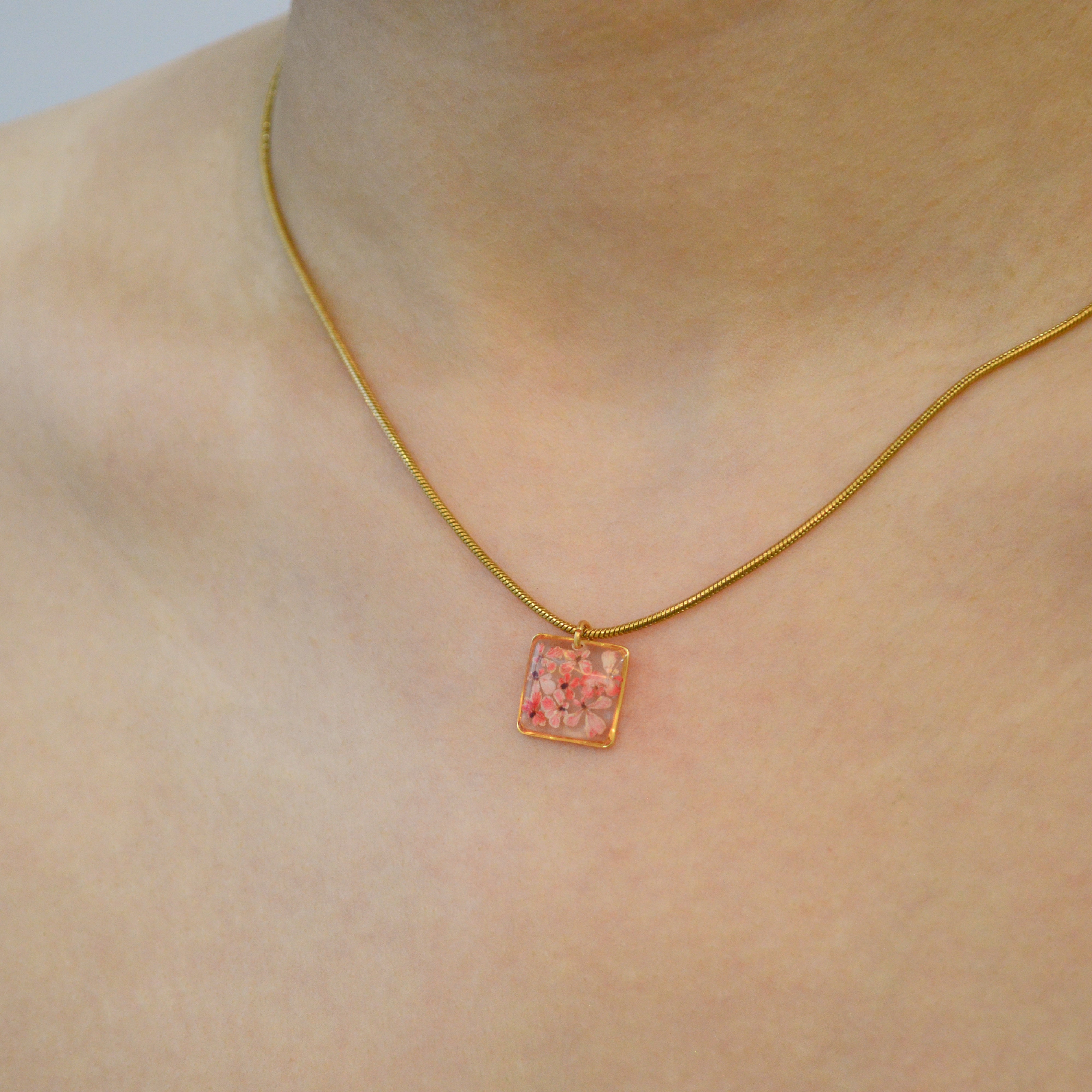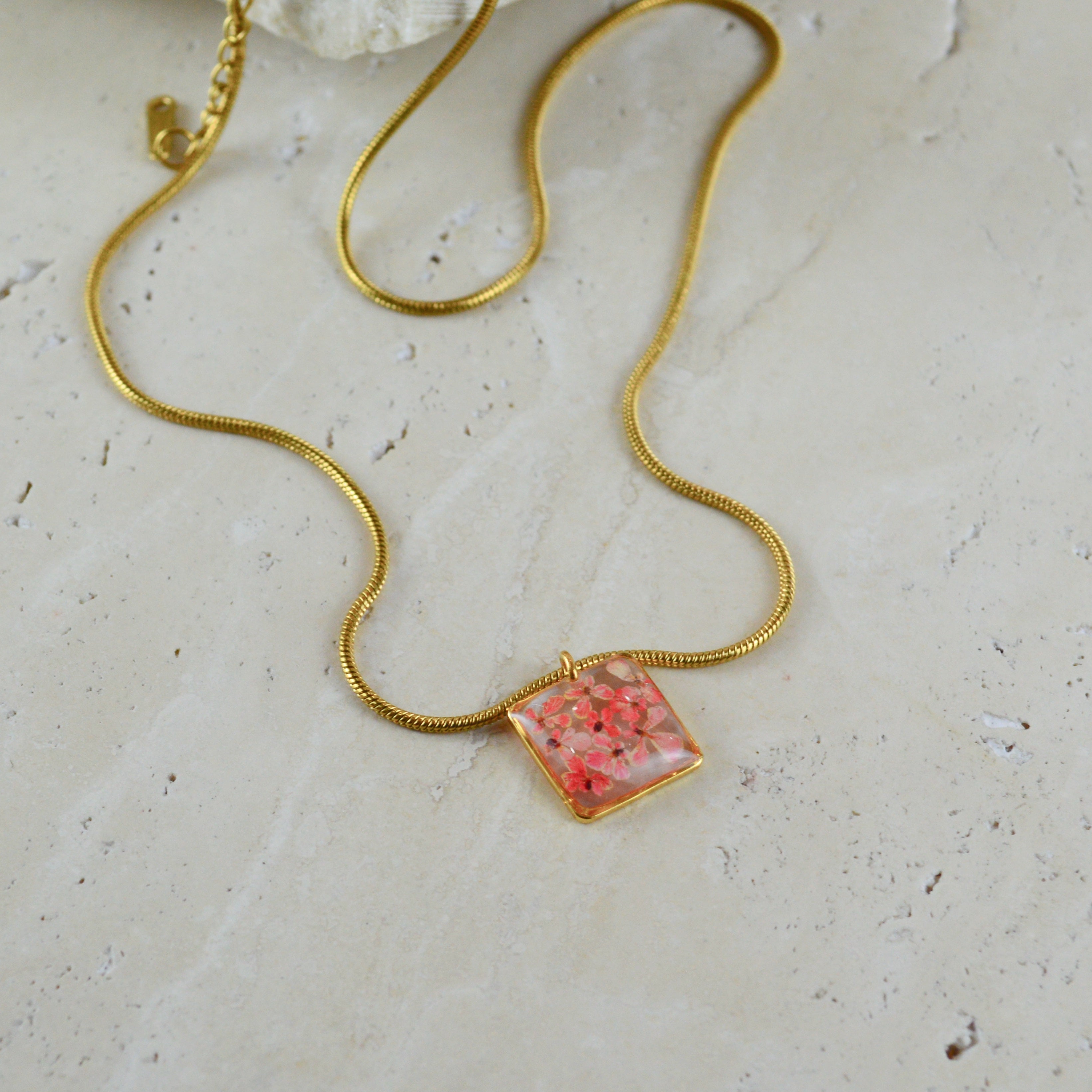 Teeny Weeny Square Pink Kolye | İtalyan Zincir