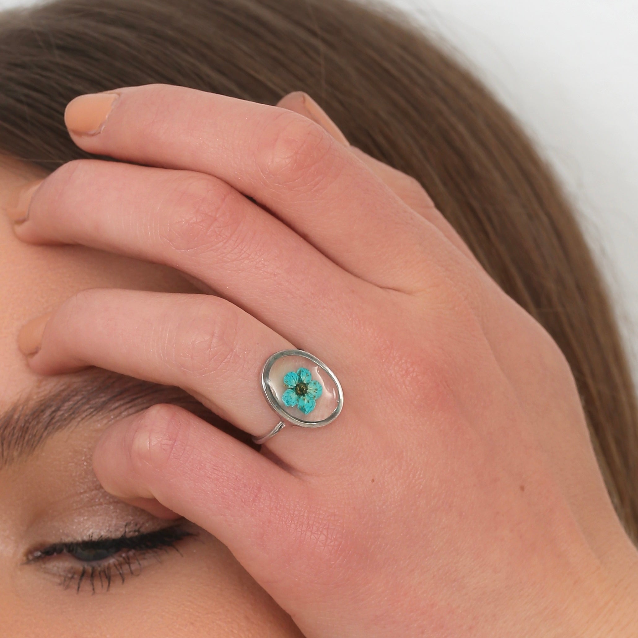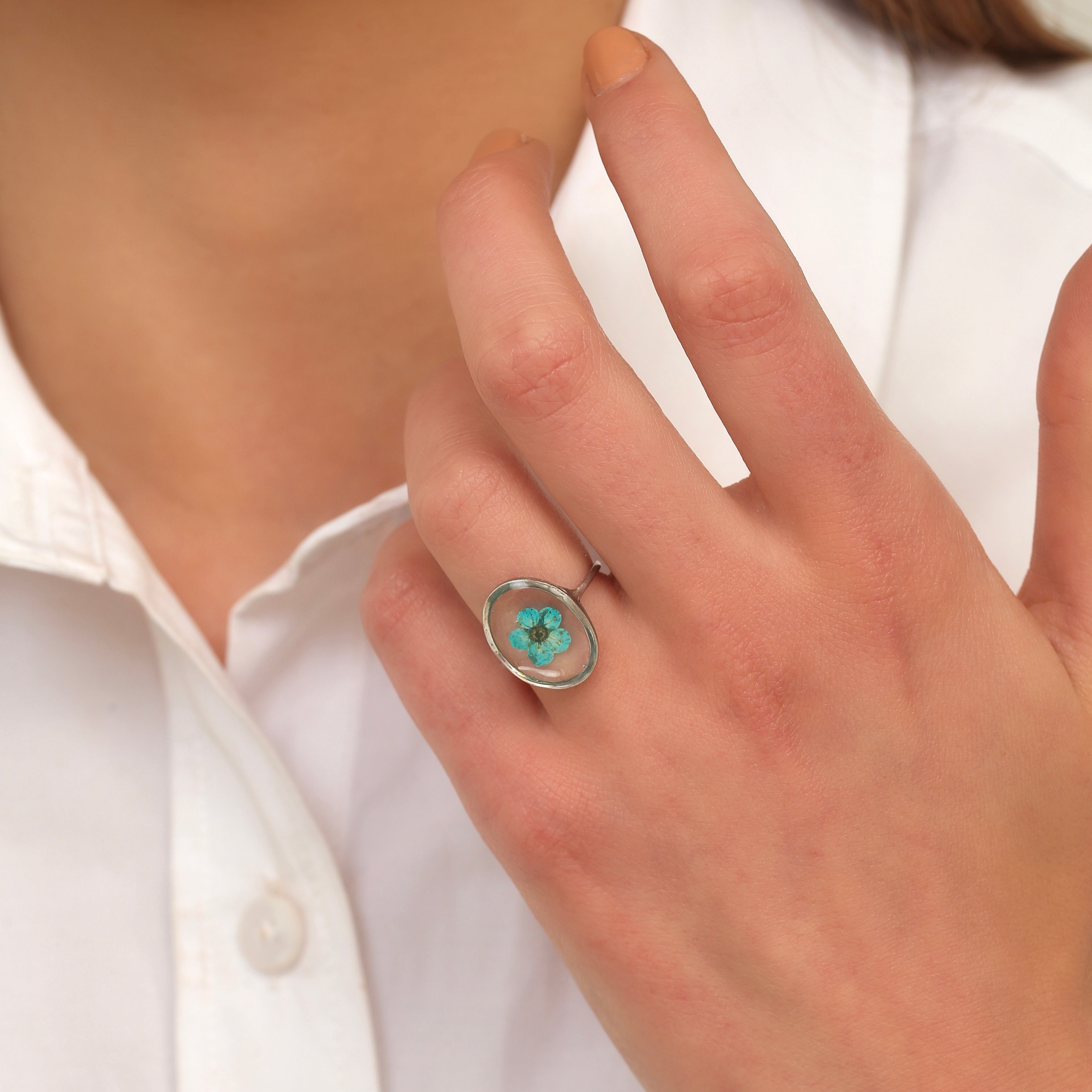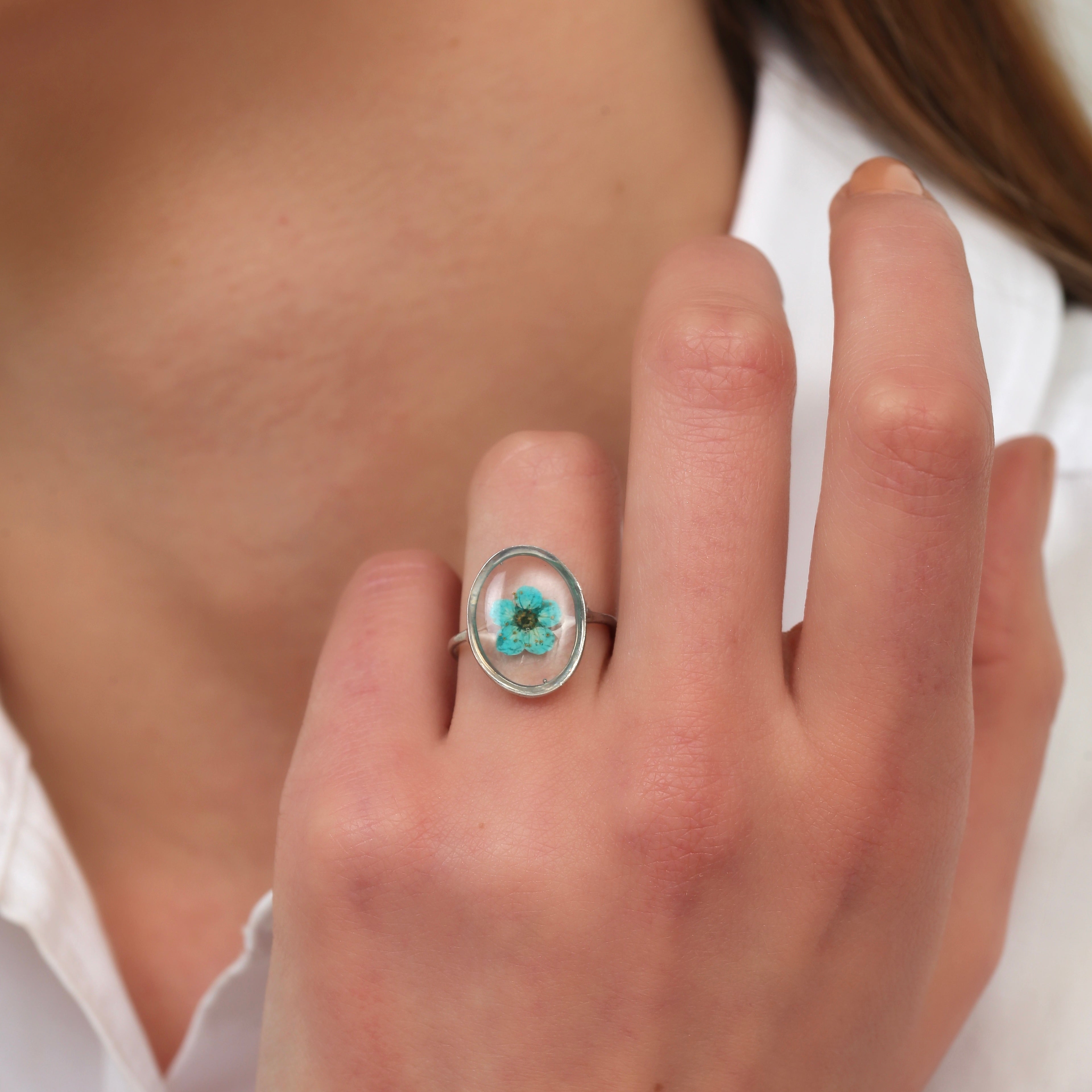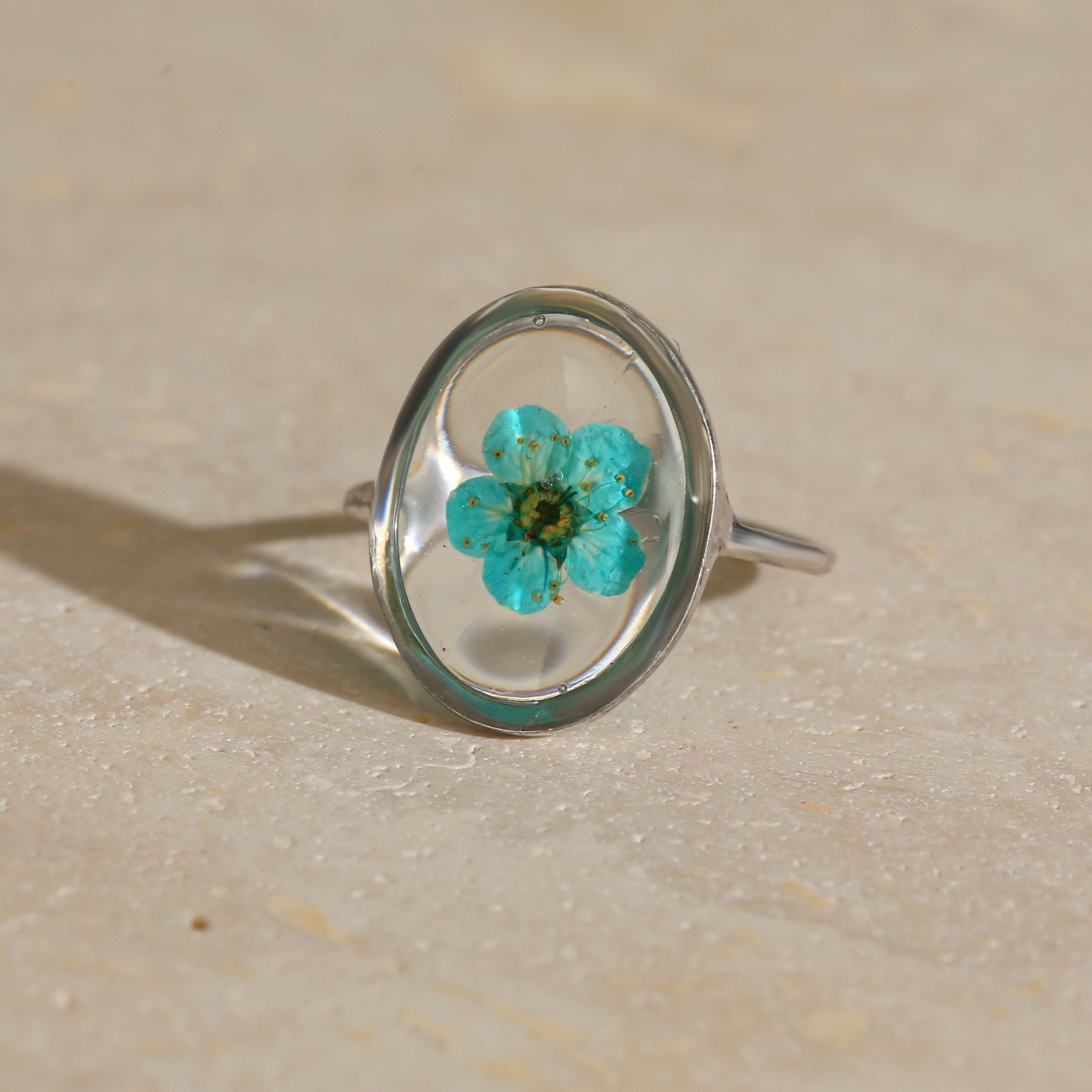 Çiçekler kuruma sürecini tamamladıktan sonra, her biri özenle minik parçalara ayrılır. Her bir çiçek parçası, reçine ile sabitlenerek koruma altına alınır. Bu sayede doğanın zarif dokusu uzun süre bozulmadan korunur ve takıların içinde ölümsüzleşir. Her detay, titizlikle işlenir ve takıya hayat verir.