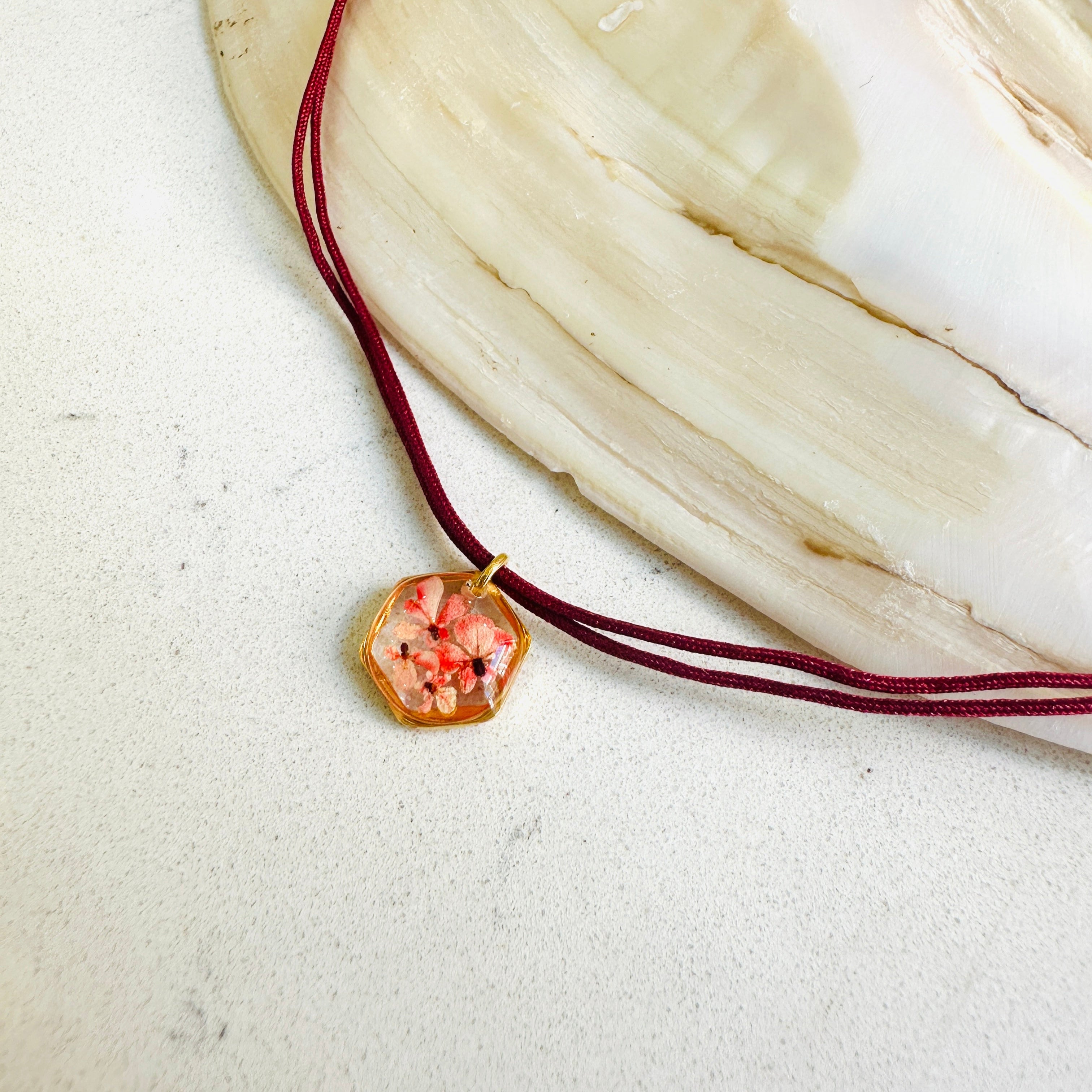 Çiçekler kuruma sürecini tamamladıktan sonra, her biri özenle minik parçalara ayrılır. Her bir çiçek parçası, reçine ile sabitlenerek koruma altına alınır. Bu sayede doğanın zarif dokusu uzun süre bozulmadan korunur ve takıların içinde ölümsüzleşir. Her detay, titizlikle işlenir ve takıya hayat verir.