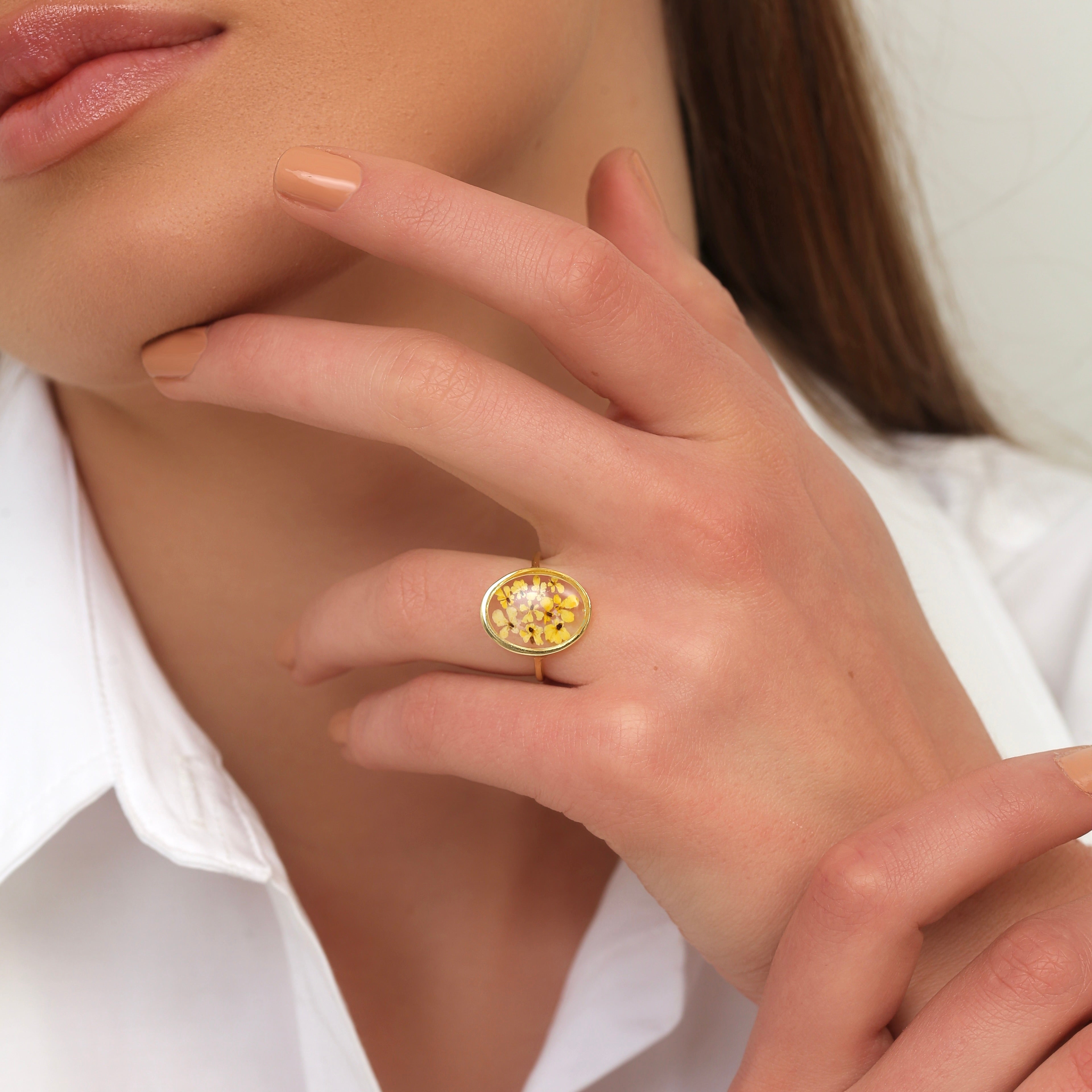Son adımda, bu benzersiz çiçek parçaları, üstün kaliteli altın kaplama materyallerle birleşir. Her takı, birer kişisel bahçe gibi tasarlanır. Fiorel takıları, sadece bir aksesuar değil, aynı zamanda her bireye özel, zarif ve anlamlı bir hikaye sunar. Her ürün, bir çiçek gibi nadir ve değerli, size özel bir dokunuş taşır.
