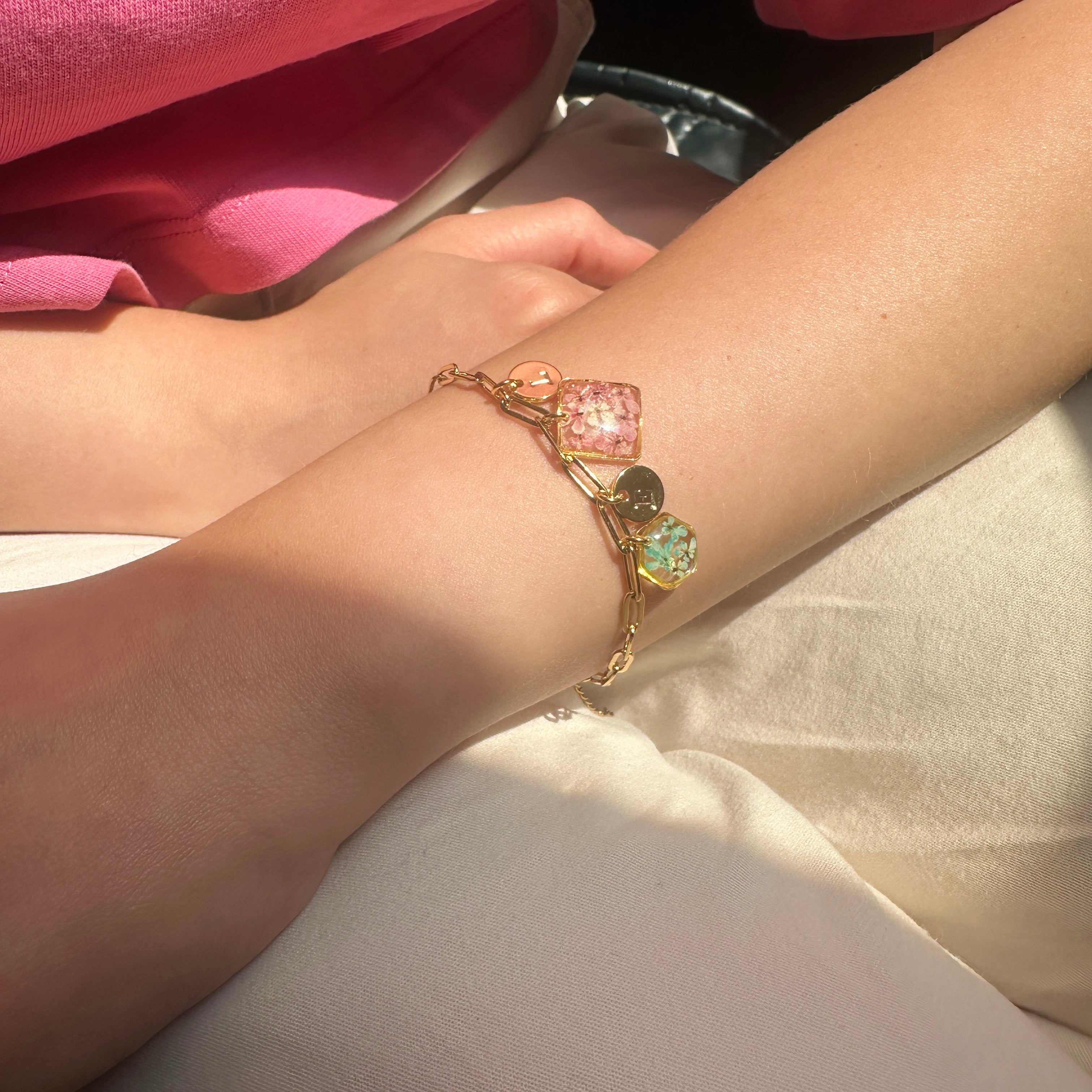 Çiçekler kuruma sürecini tamamladıktan sonra, her biri özenle minik parçalara ayrılır. Her bir çiçek parçası, reçine ile sabitlenerek koruma altına alınır. Bu sayede doğanın zarif dokusu uzun süre bozulmadan korunur ve takıların içinde ölümsüzleşir. Her detay, titizlikle işlenir ve takıya hayat verir.