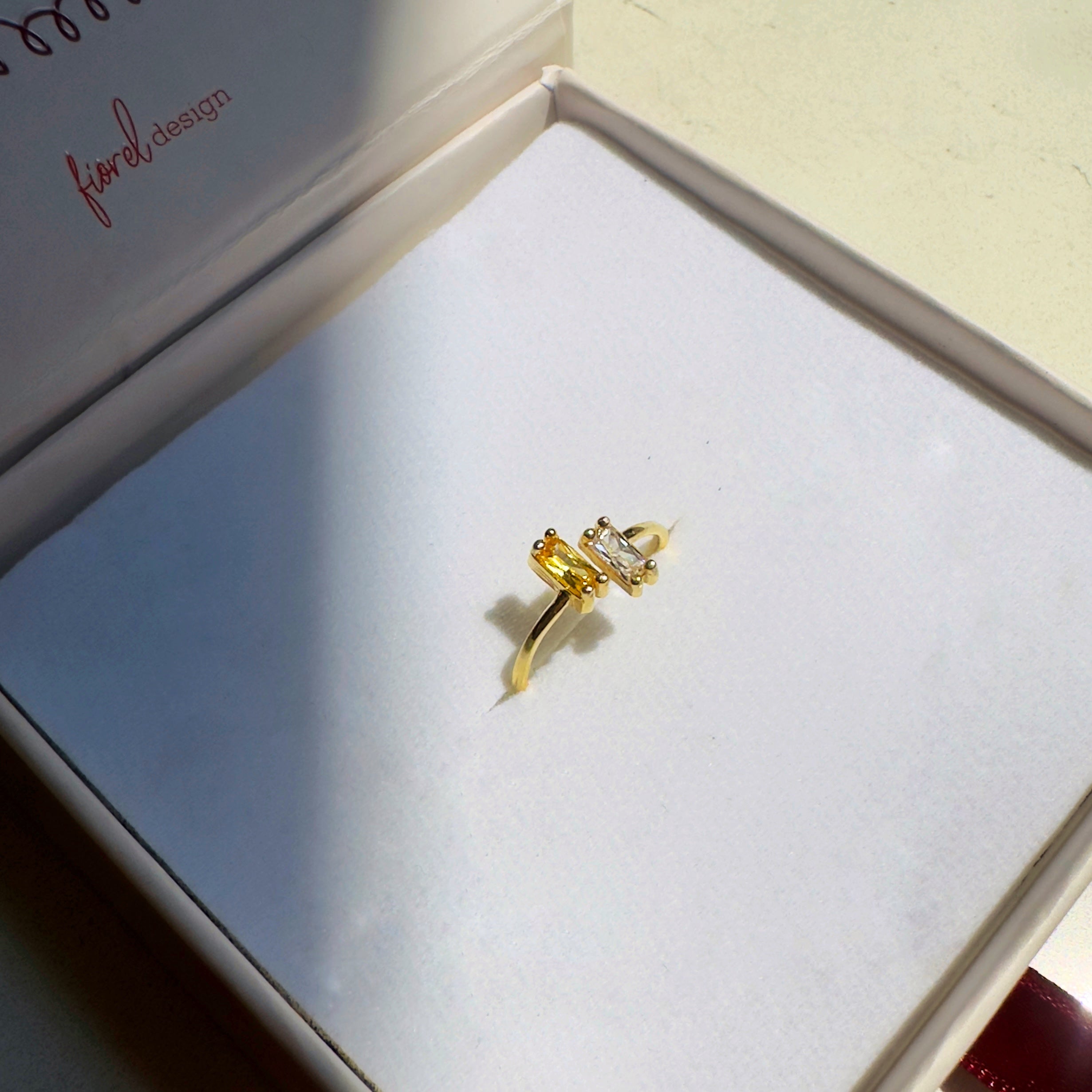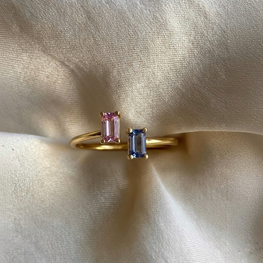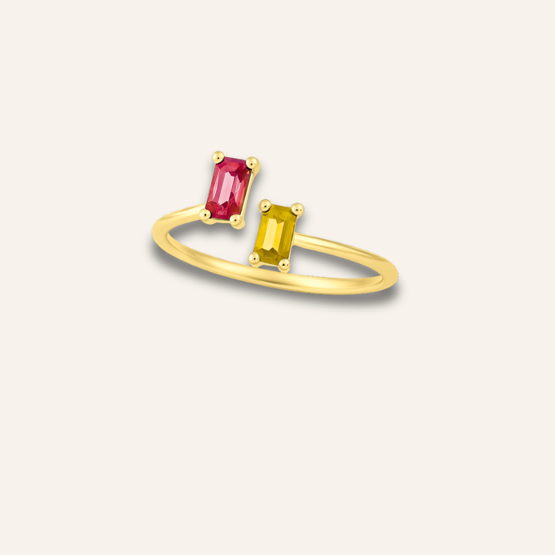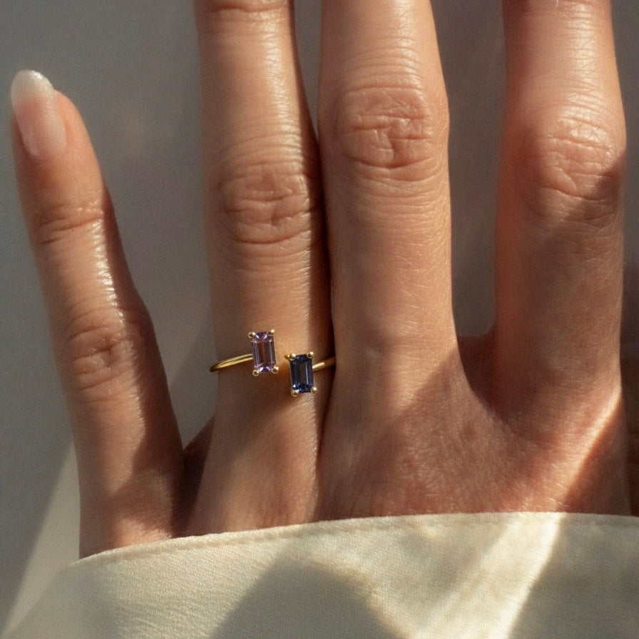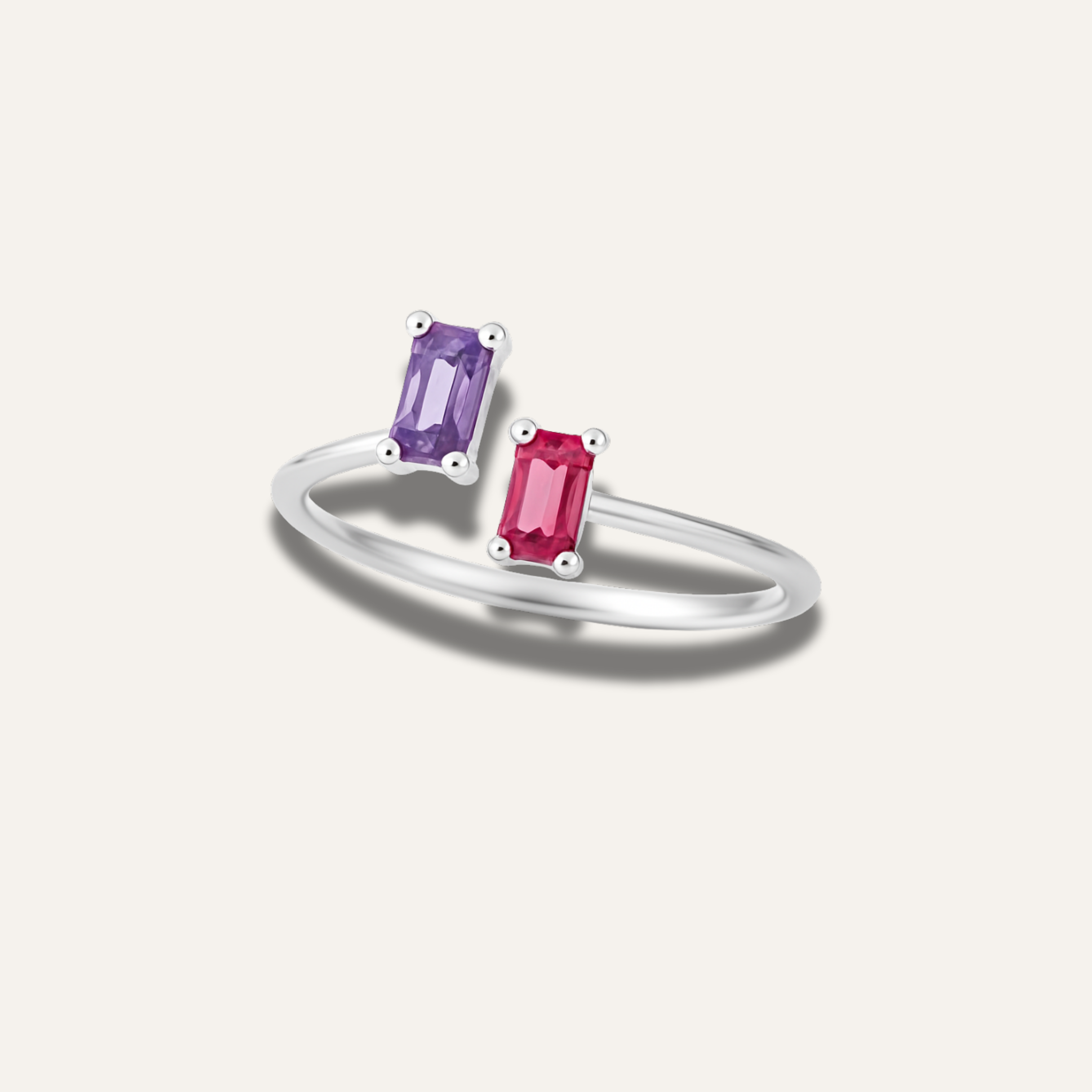 Biri sizin, diğeri onun doğum taşından oluşan iki baguette kesim taş; aynı yüzükte yan yana geliyor.