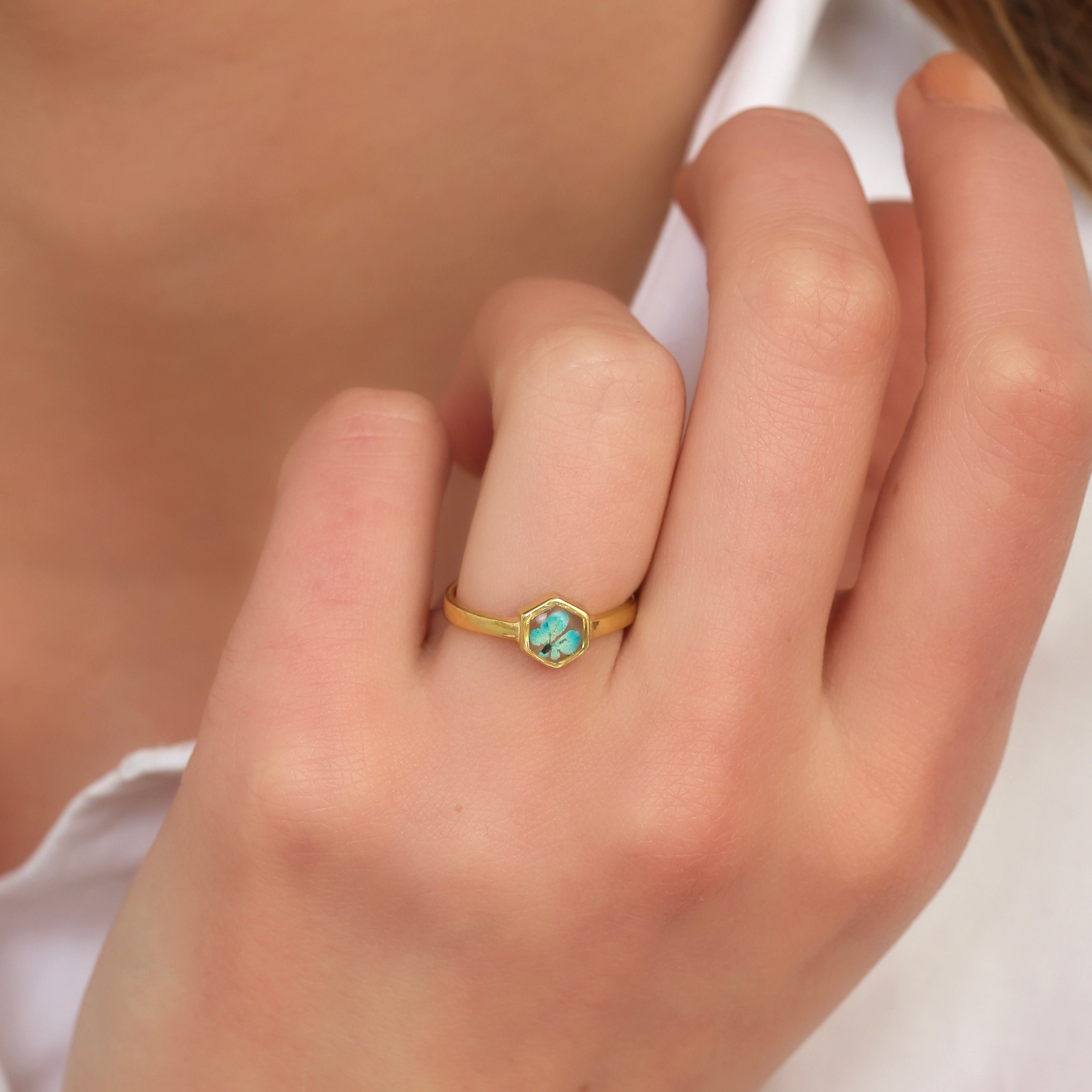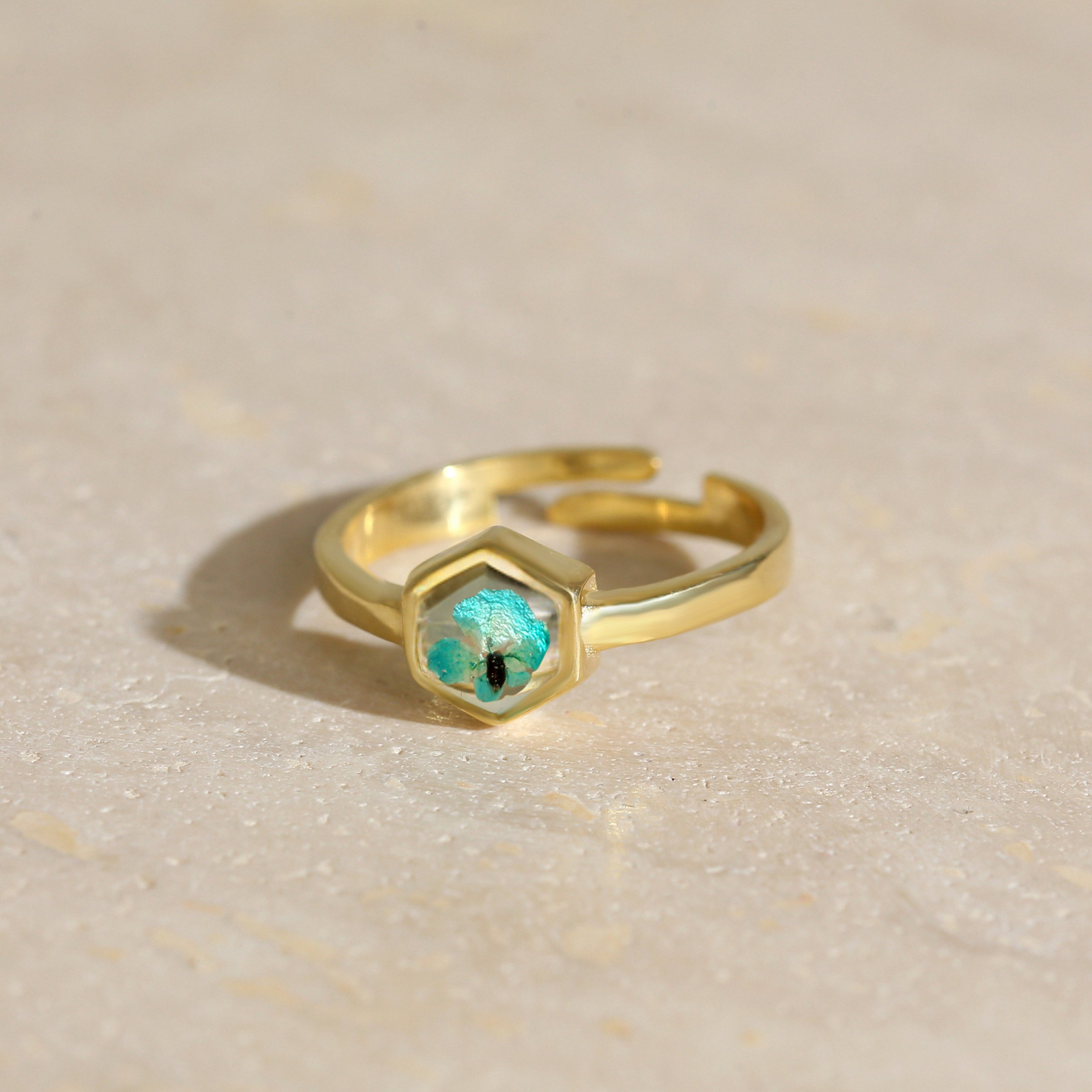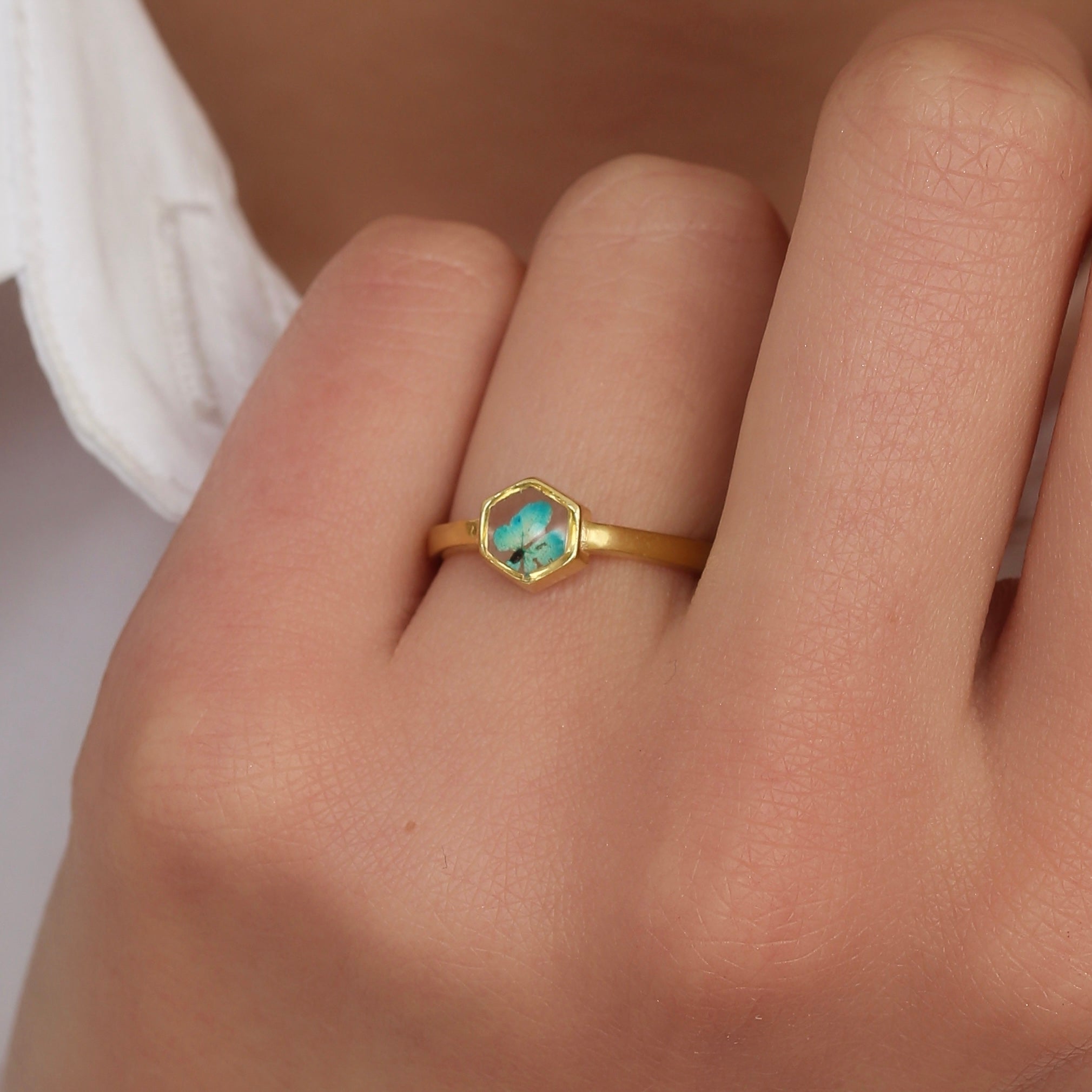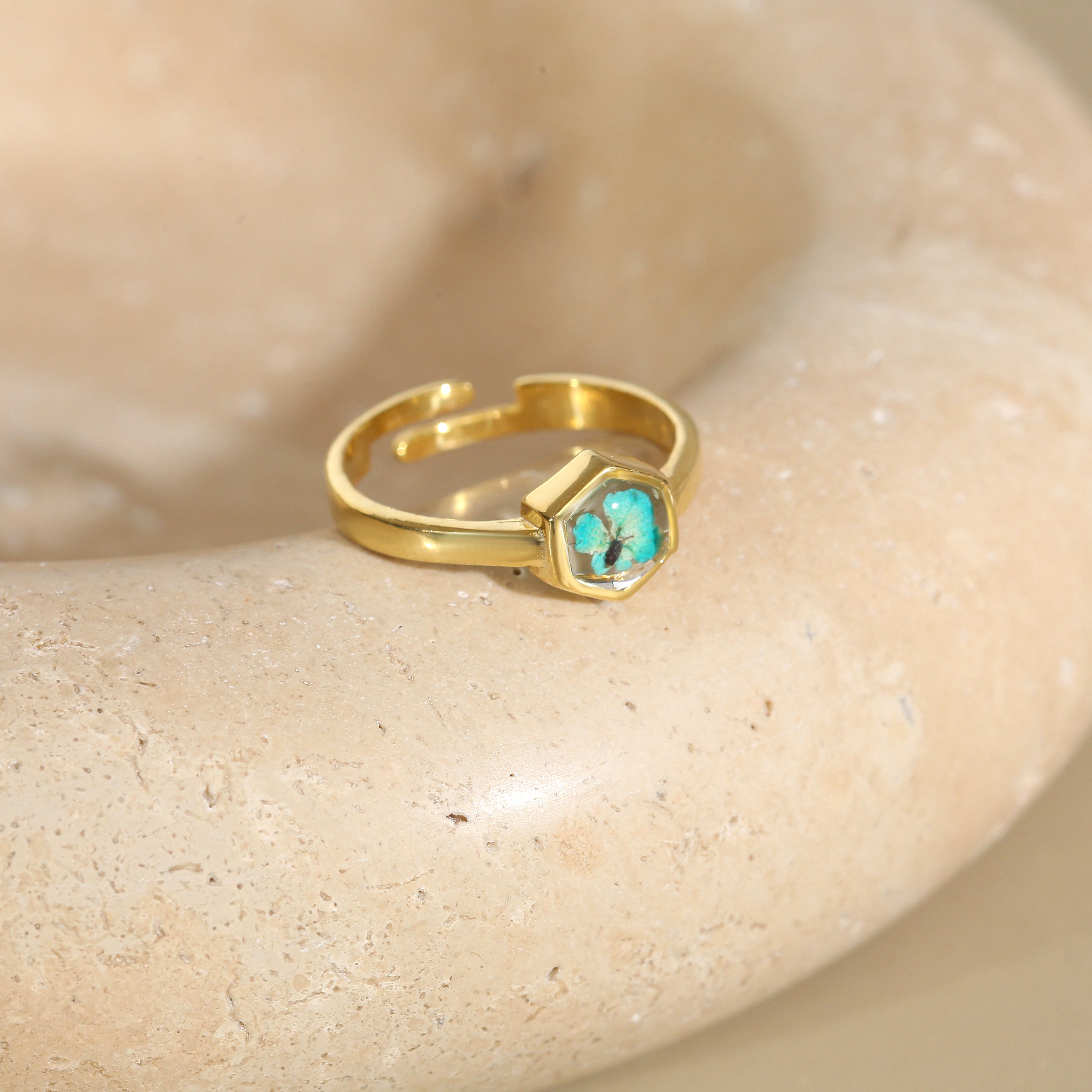 Çiçekler kuruma sürecini tamamladıktan sonra, her biri özenle minik parçalara ayrılır. Her bir çiçek parçası, reçine ile sabitlenerek koruma altına alınır. Bu sayede doğanın zarif dokusu uzun süre bozulmadan korunur ve takıların içinde ölümsüzleşir. Her detay, titizlikle işlenir ve takıya hayat verir.