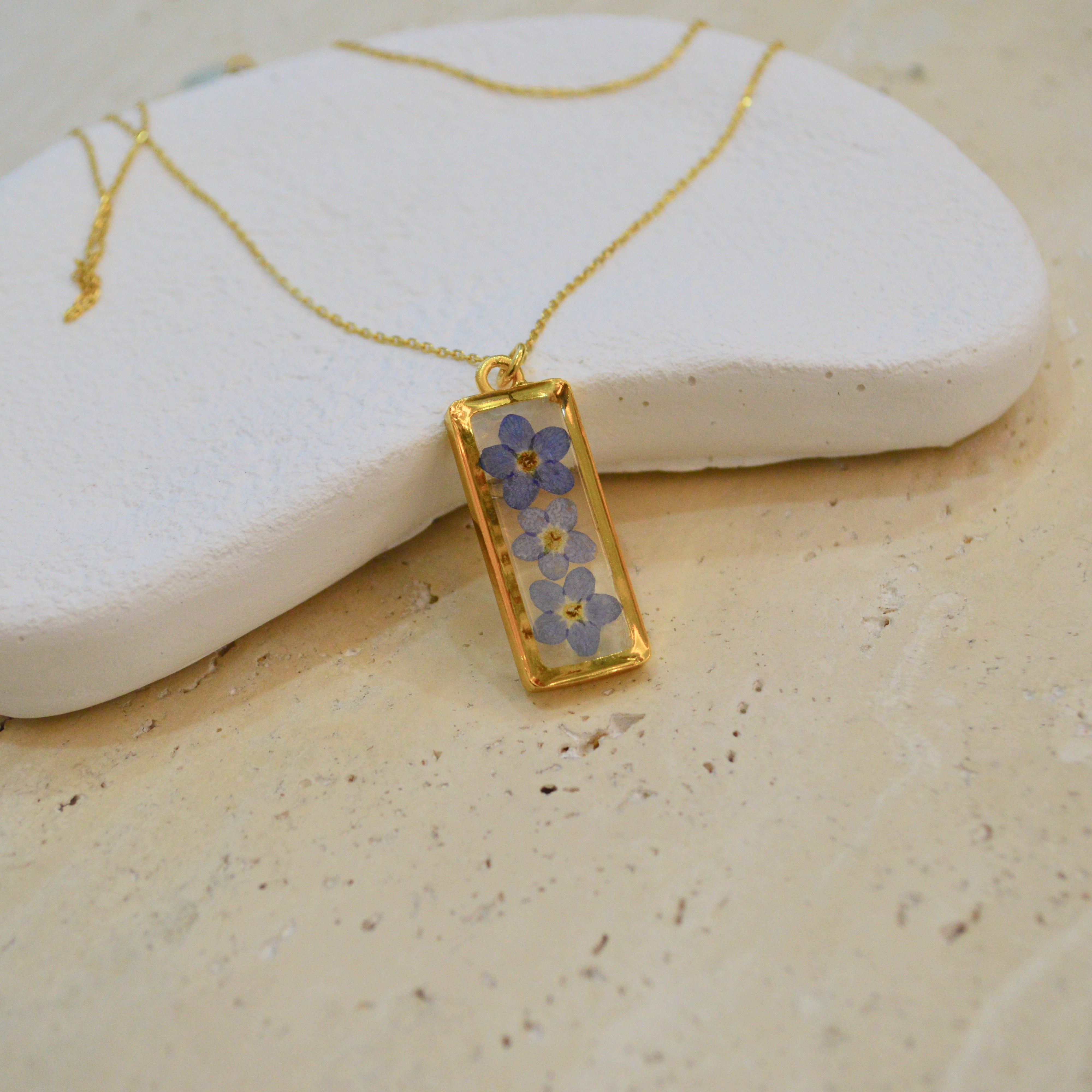 After the flowers have completed the drying process, each one is carefully cut into tiny pieces. Each flower piece is fixed with resin and protected. In this way, the elegant texture of nature is preserved for a long time and becomes immortal in the jewelry. Every detail is meticulously processed and gives life to the jewelry.