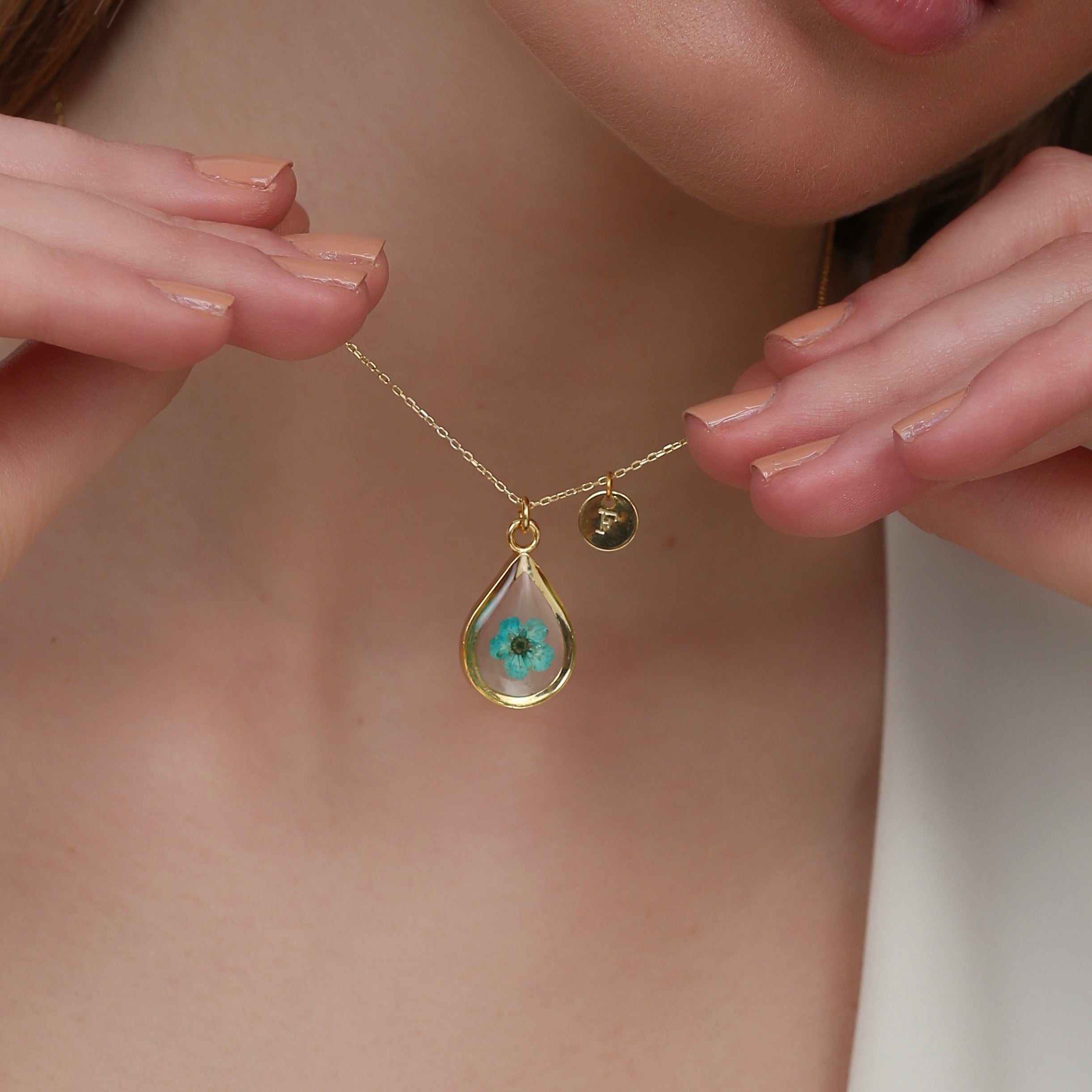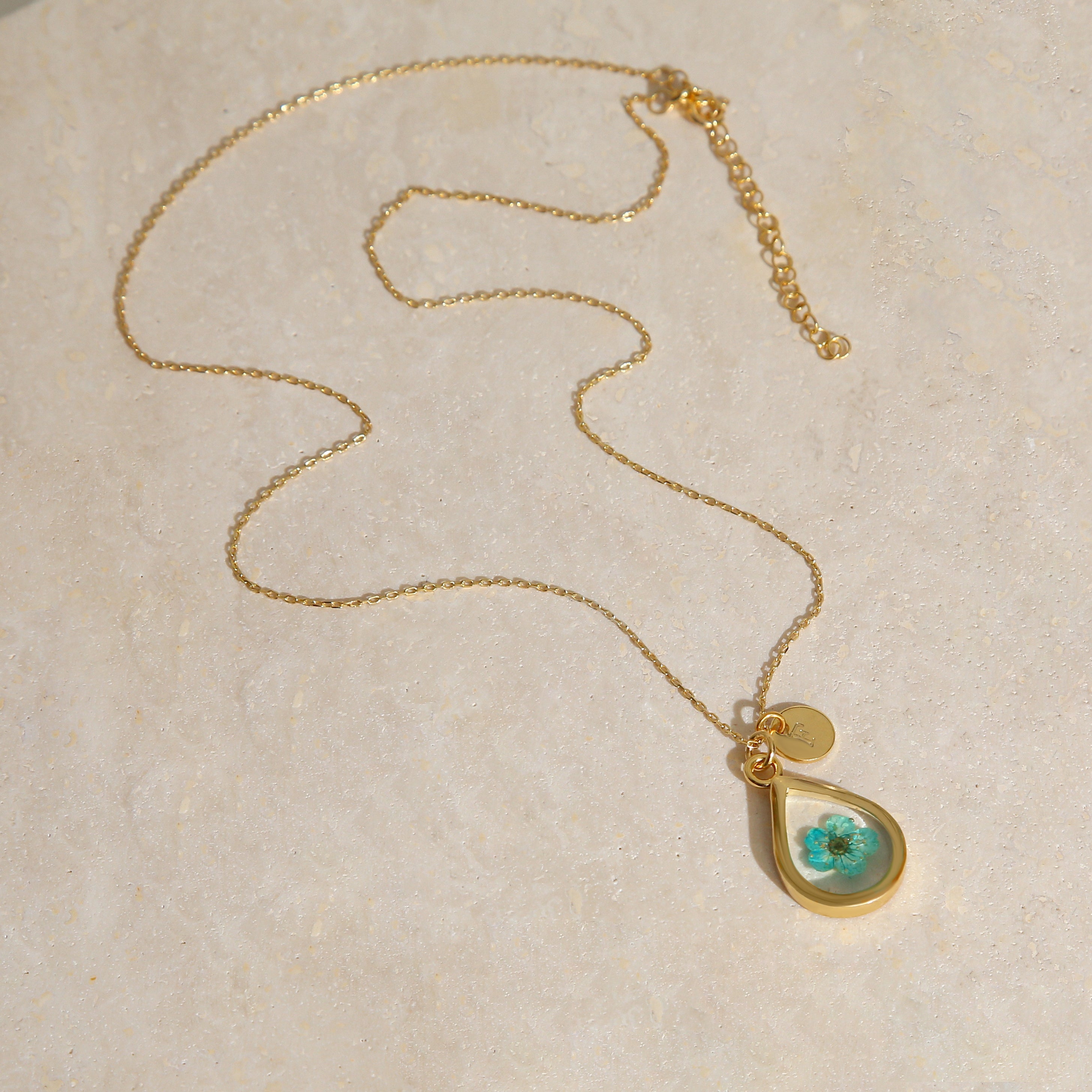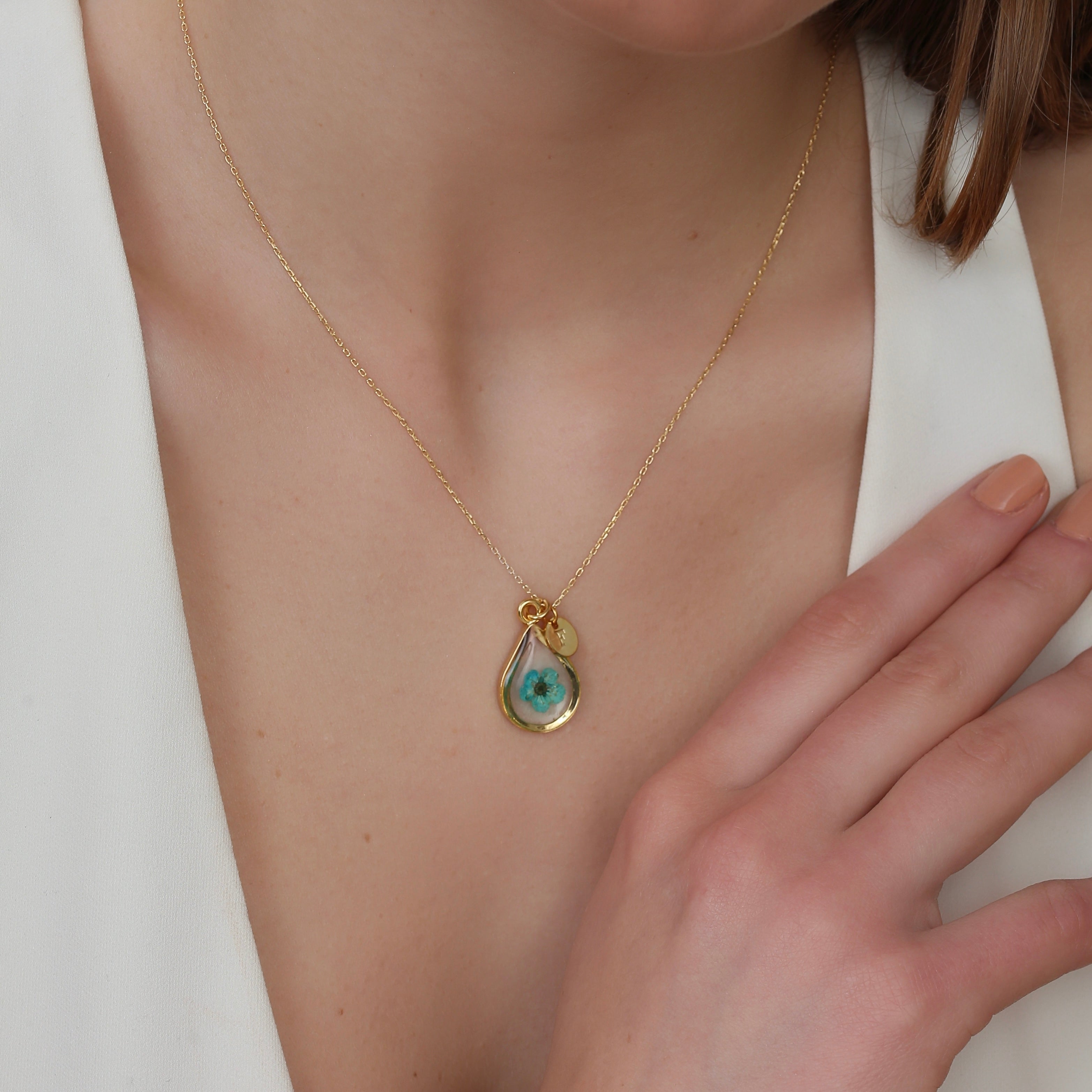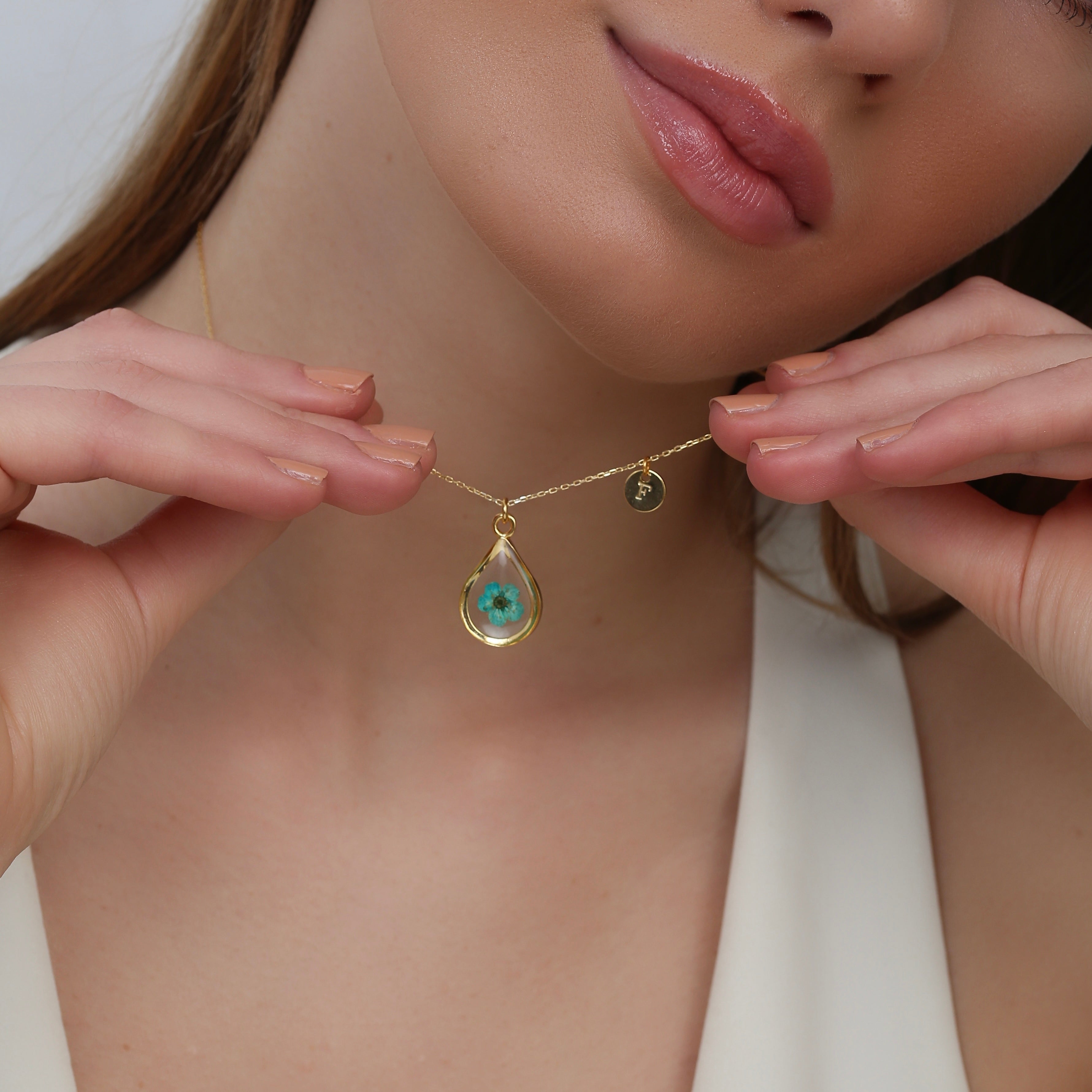 After the flowers have completed the drying process, each one is carefully cut into tiny pieces. Each flower piece is fixed with resin and protected. In this way, the elegant texture of nature is preserved for a long time and becomes immortal in the jewelry. Every detail is meticulously processed and gives life to the jewelry.