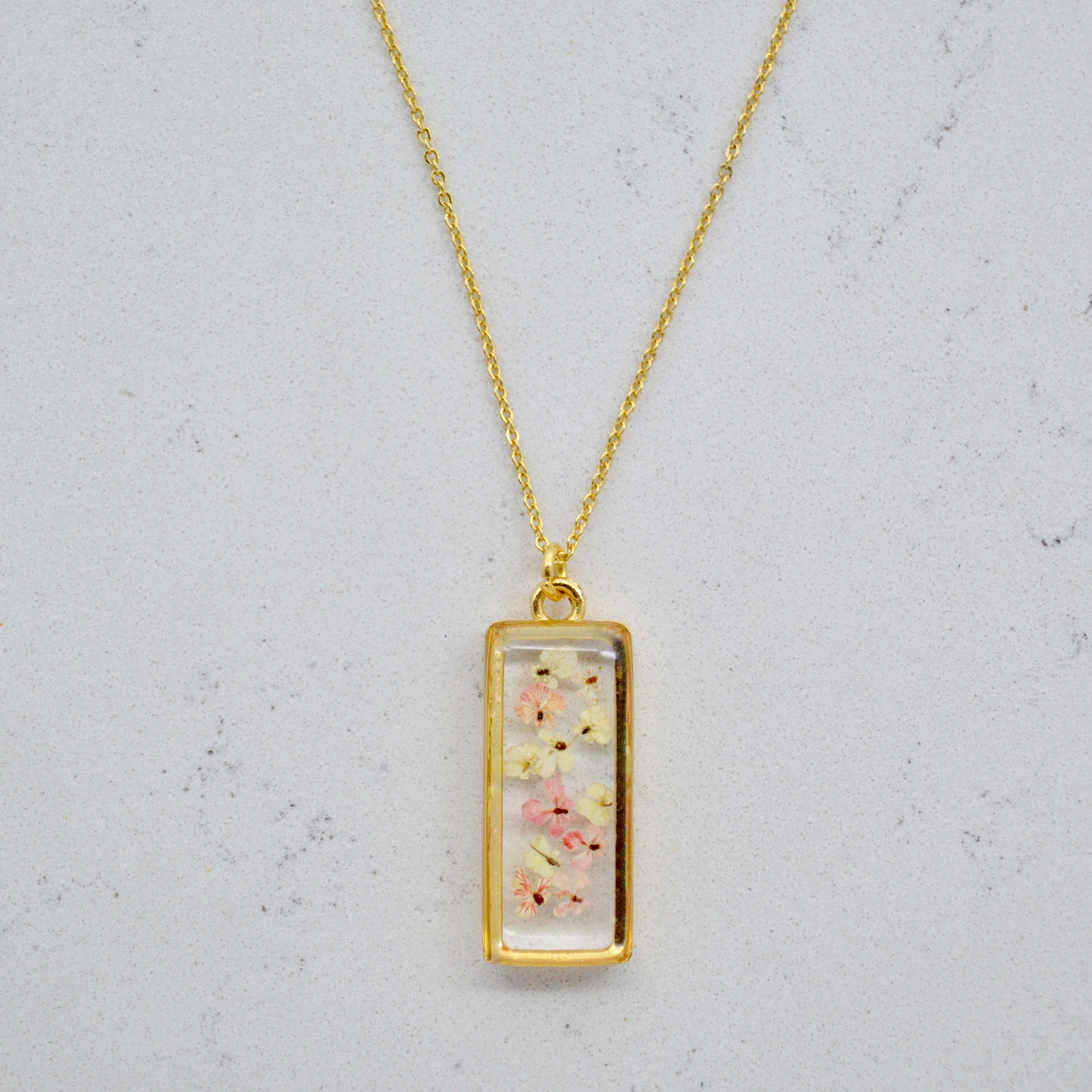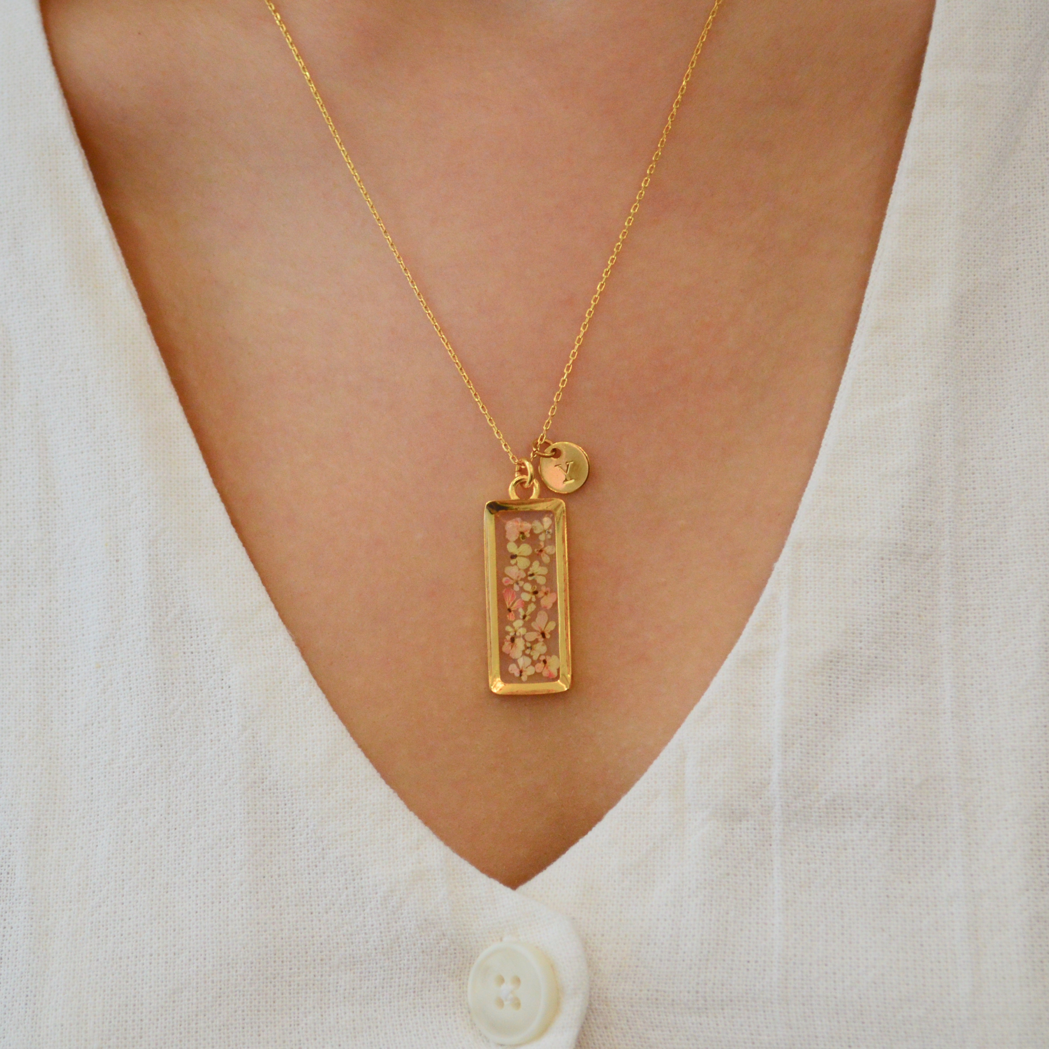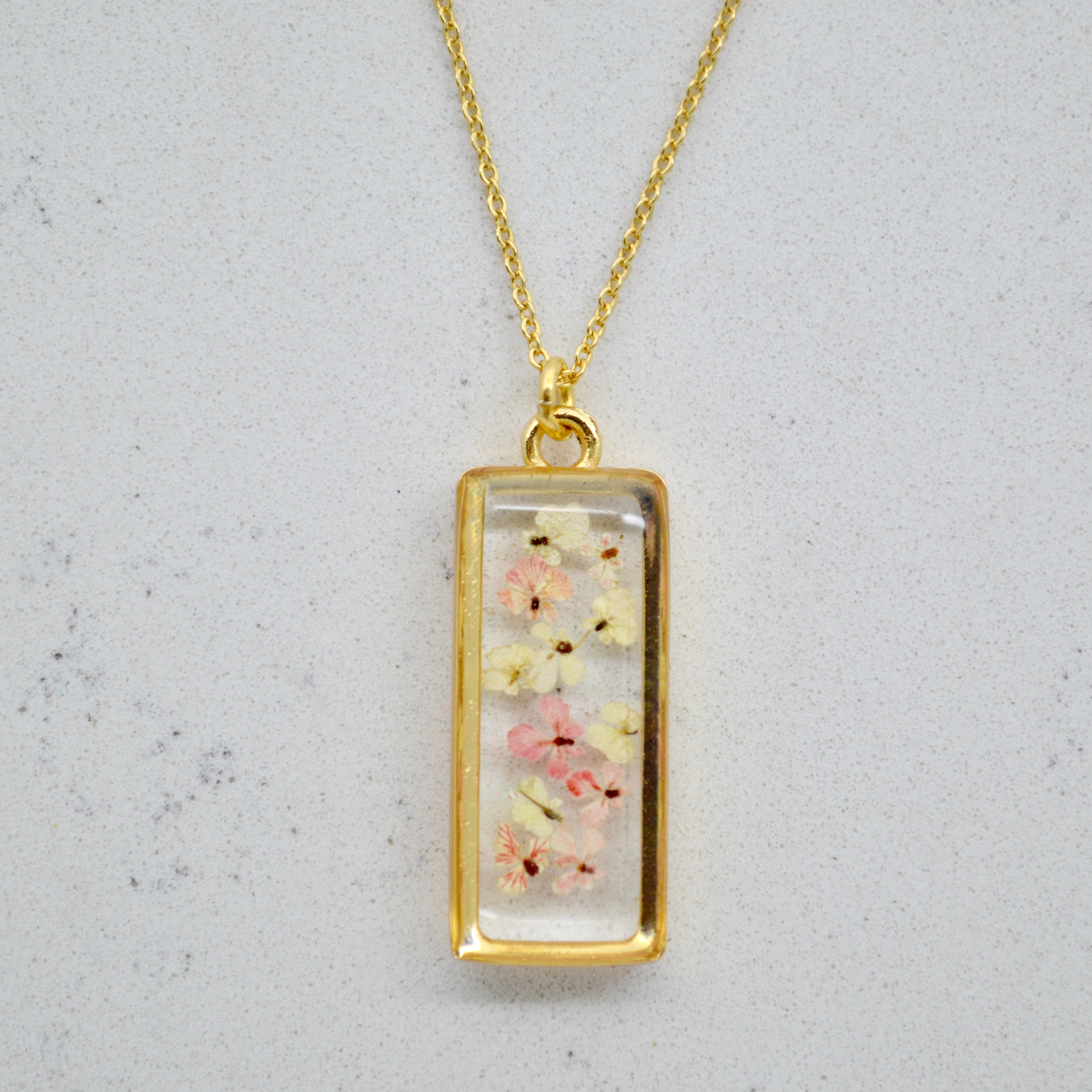 After the flowers have completed the drying process, each one is carefully cut into tiny pieces. Each flower piece is fixed with resin and protected. In this way, the elegant texture of nature is preserved for a long time and becomes immortal in the jewelry. Every detail is meticulously processed and gives life to the jewelry.