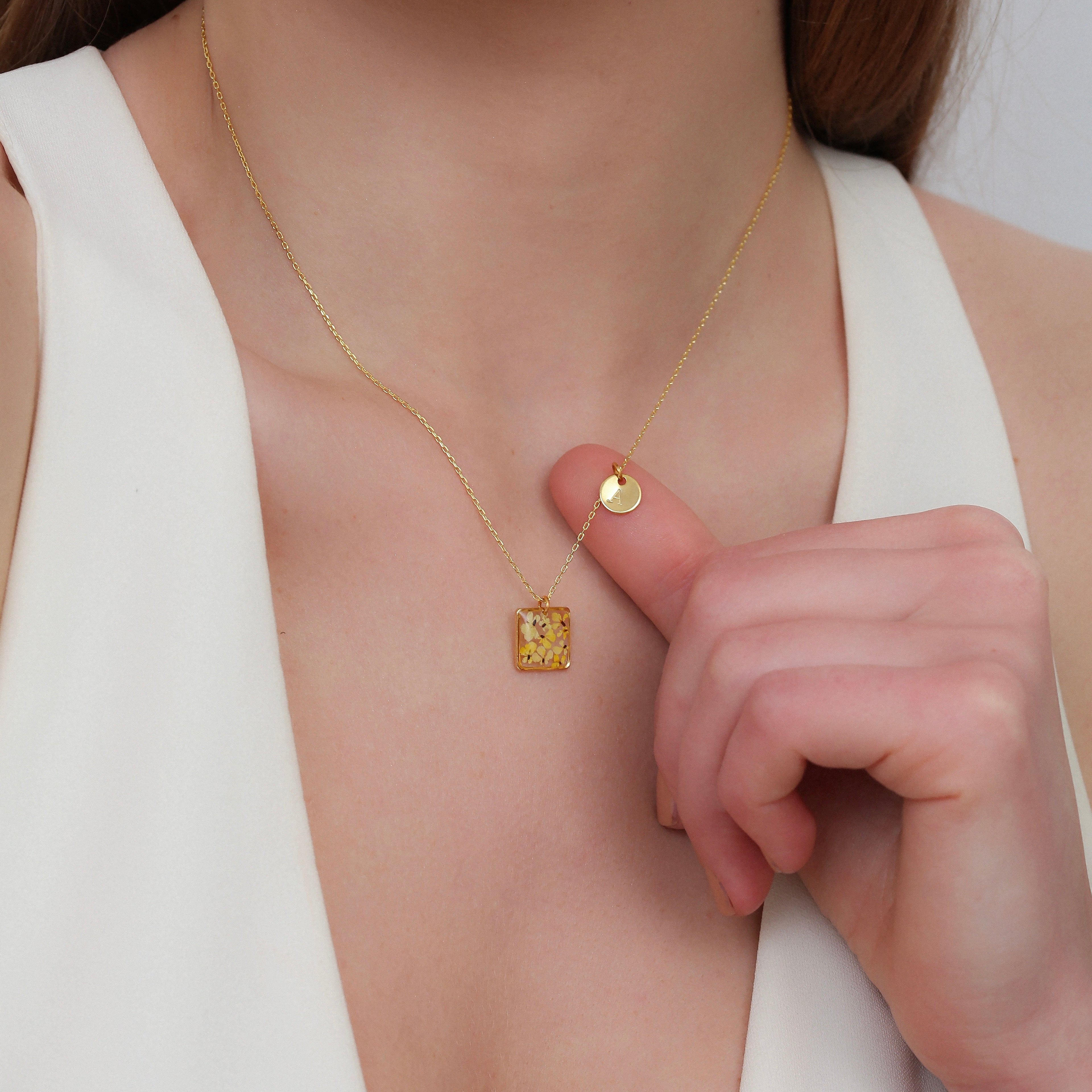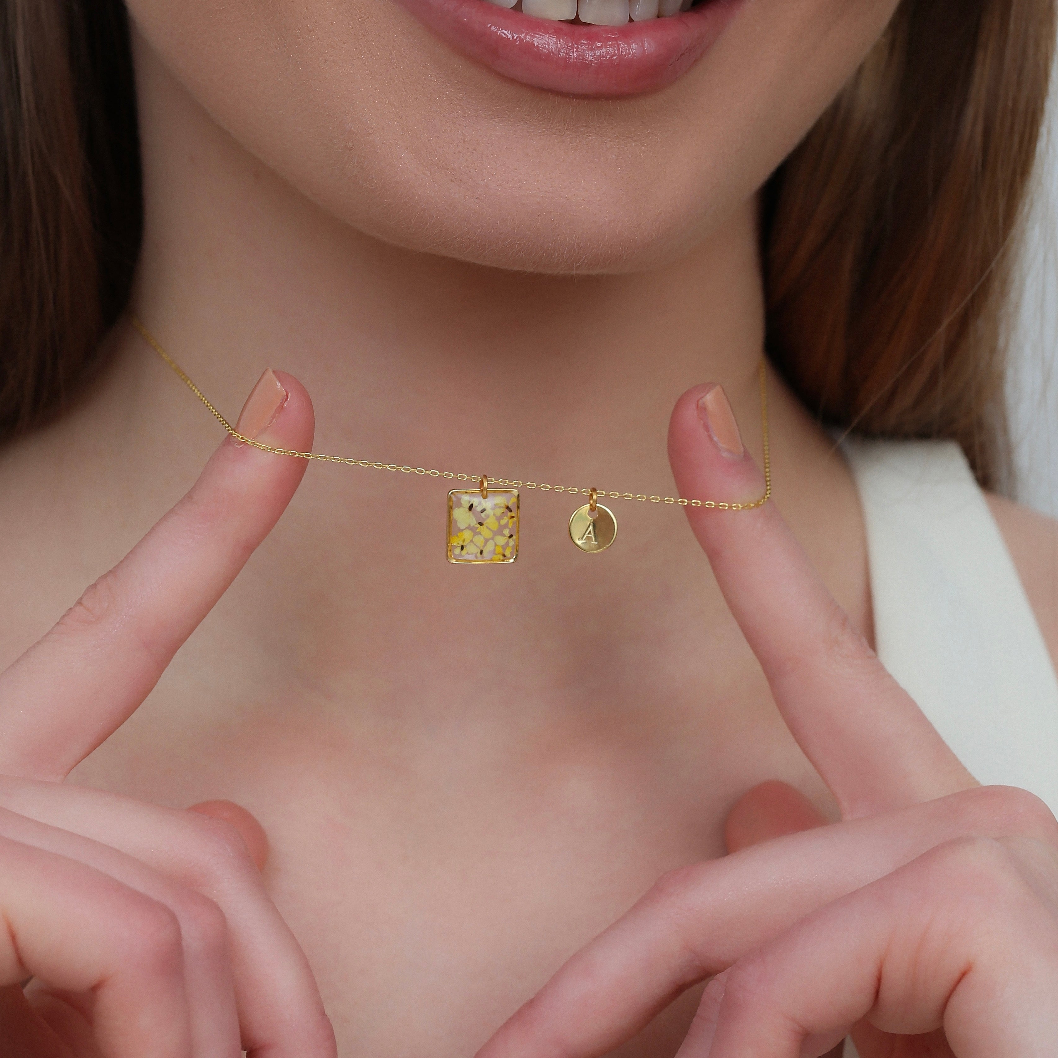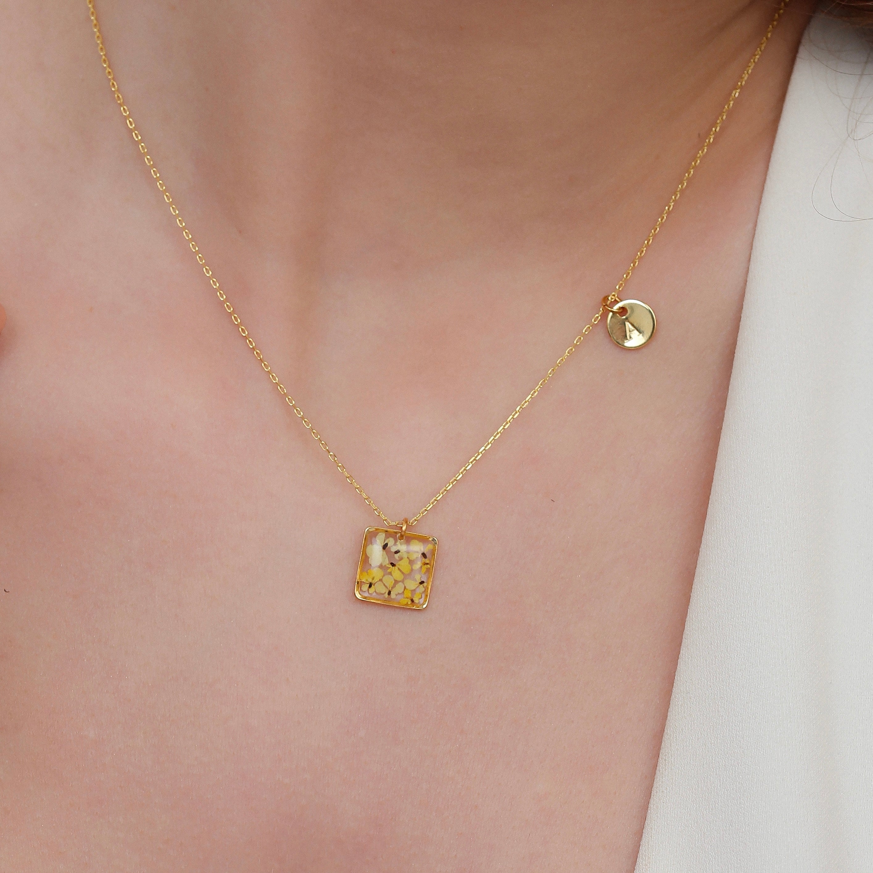 After the flowers have completed the drying process, each one is carefully cut into tiny pieces. Each flower piece is fixed with resin and protected. In this way, the elegant texture of nature is preserved for a long time and becomes immortal in the jewelry. Every detail is meticulously processed and gives life to the jewelry.