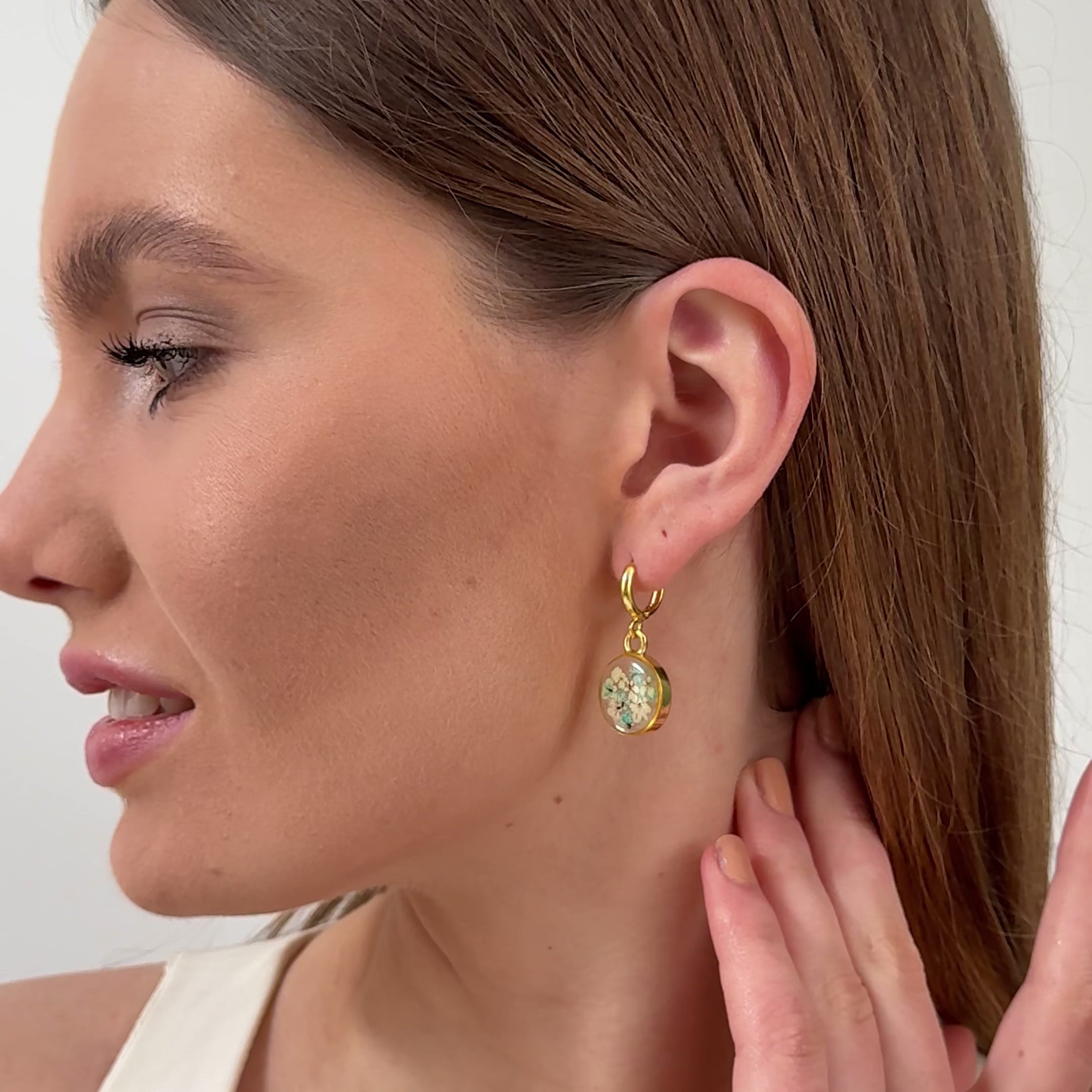 After the flowers have completed the drying process, each one is carefully cut into tiny pieces. Each flower piece is fixed with resin and protected. In this way, the elegant texture of nature is preserved for a long time and becomes immortal in the jewelry. Every detail is meticulously processed and gives life to the jewelry.