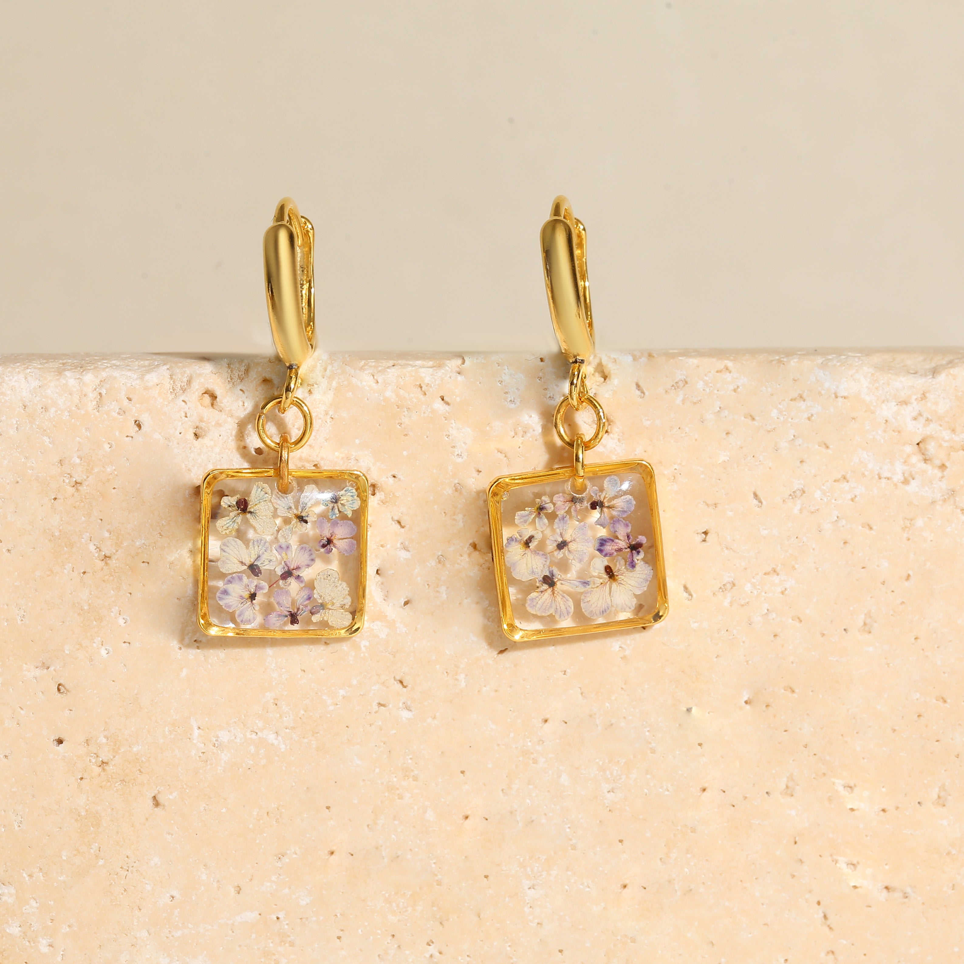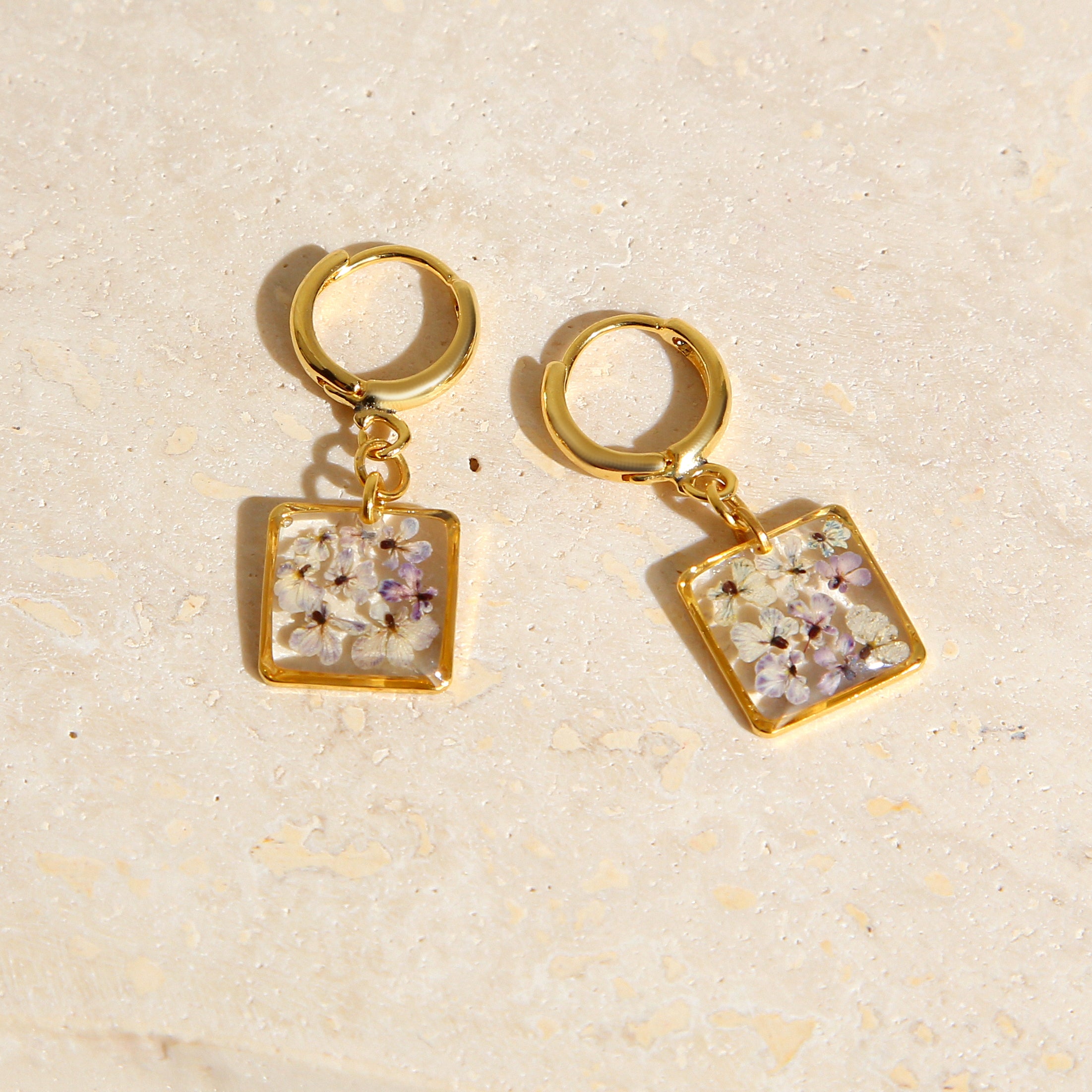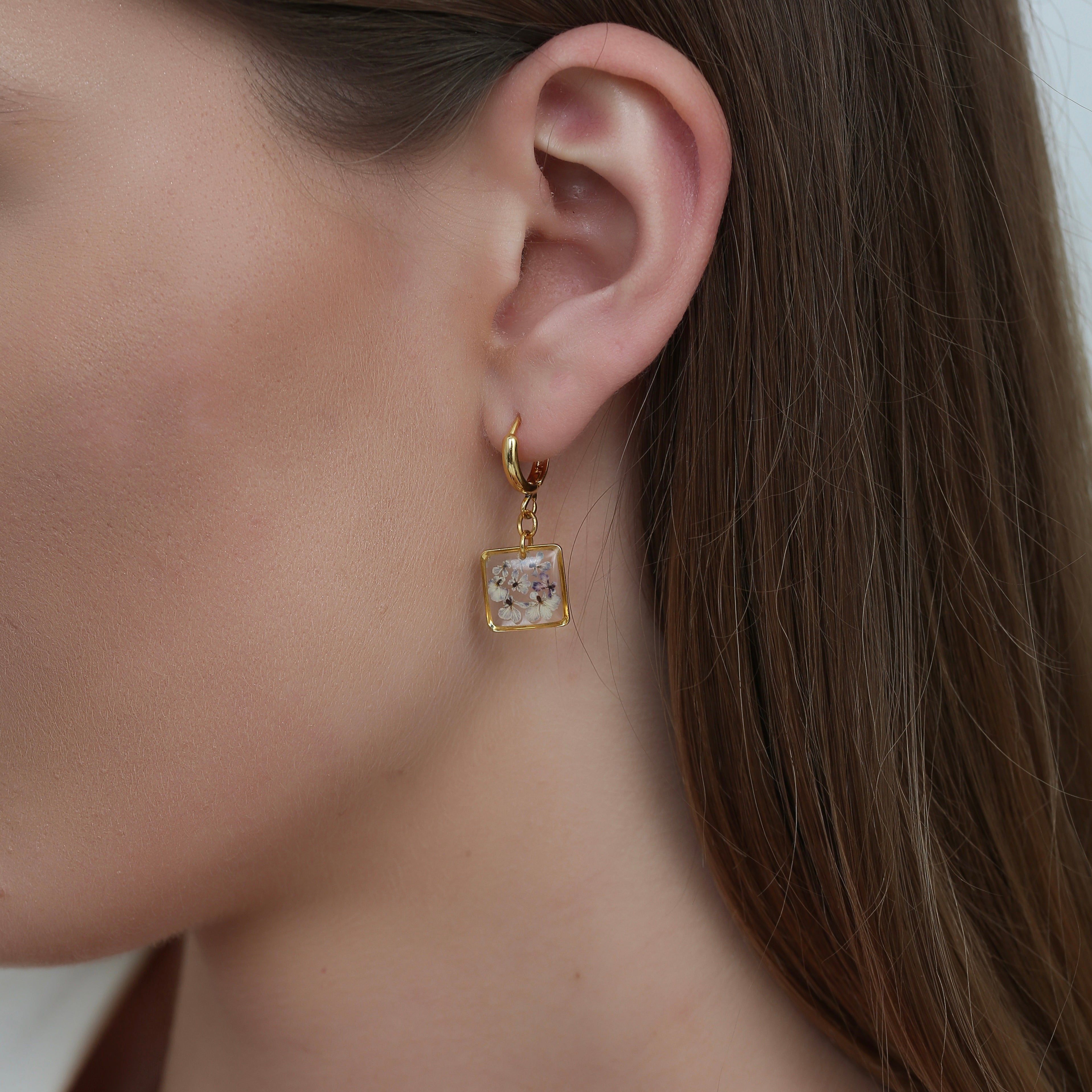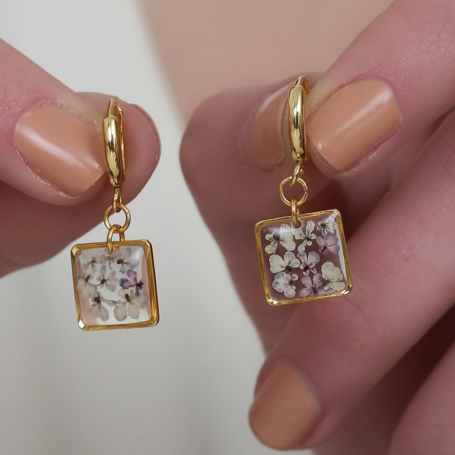 After the flowers have completed the drying process, each one is carefully cut into tiny pieces. Each flower piece is fixed with resin and protected. In this way, the elegant texture of nature is preserved for a long time and becomes immortal in the jewelry. Every detail is meticulously processed and gives life to the jewelry.