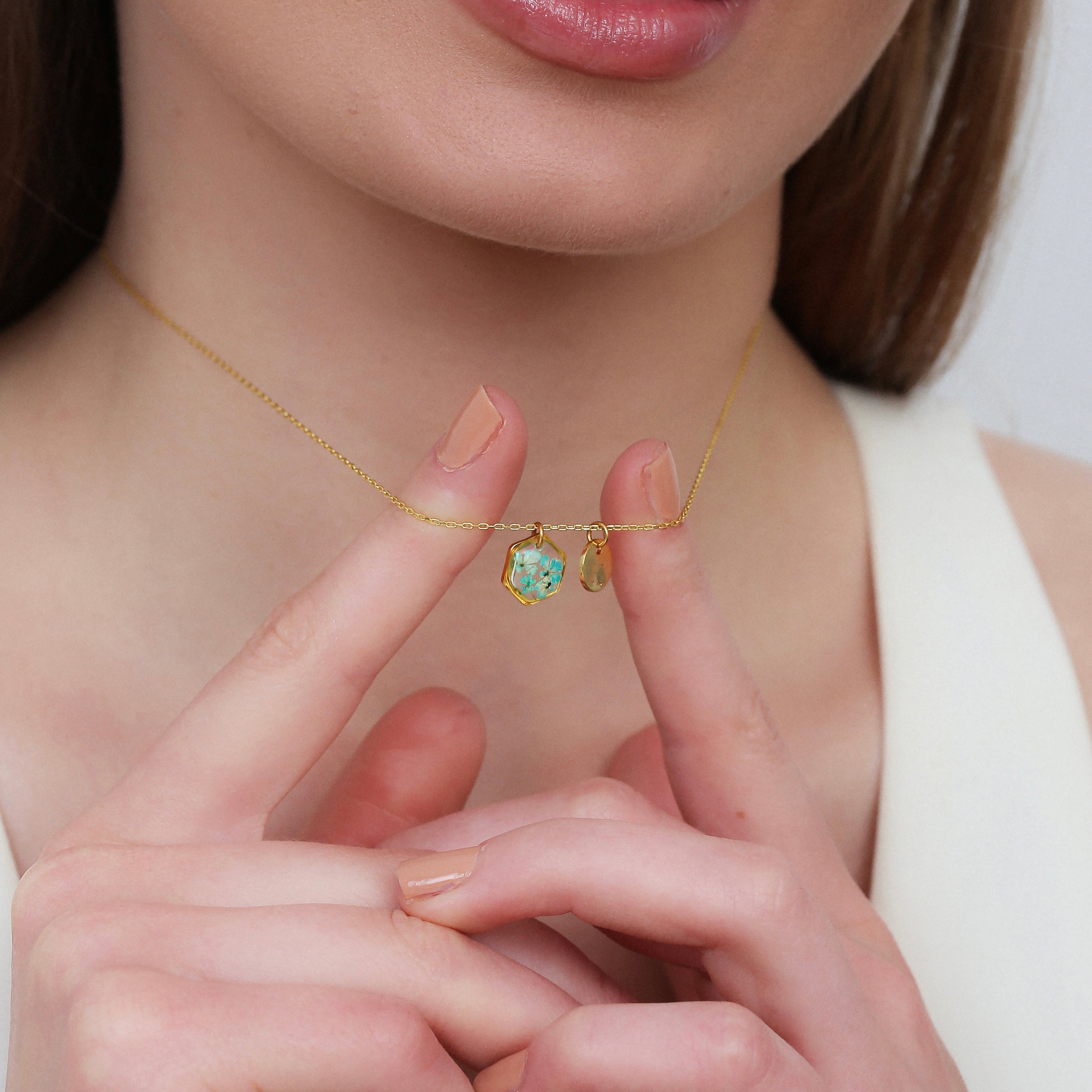 After the flowers have completed the drying process, each one is carefully cut into tiny pieces. Each flower piece is fixed with resin and protected. In this way, the elegant texture of nature is preserved for a long time and becomes immortal in the jewelry. Every detail is meticulously processed and gives life to the jewelry.