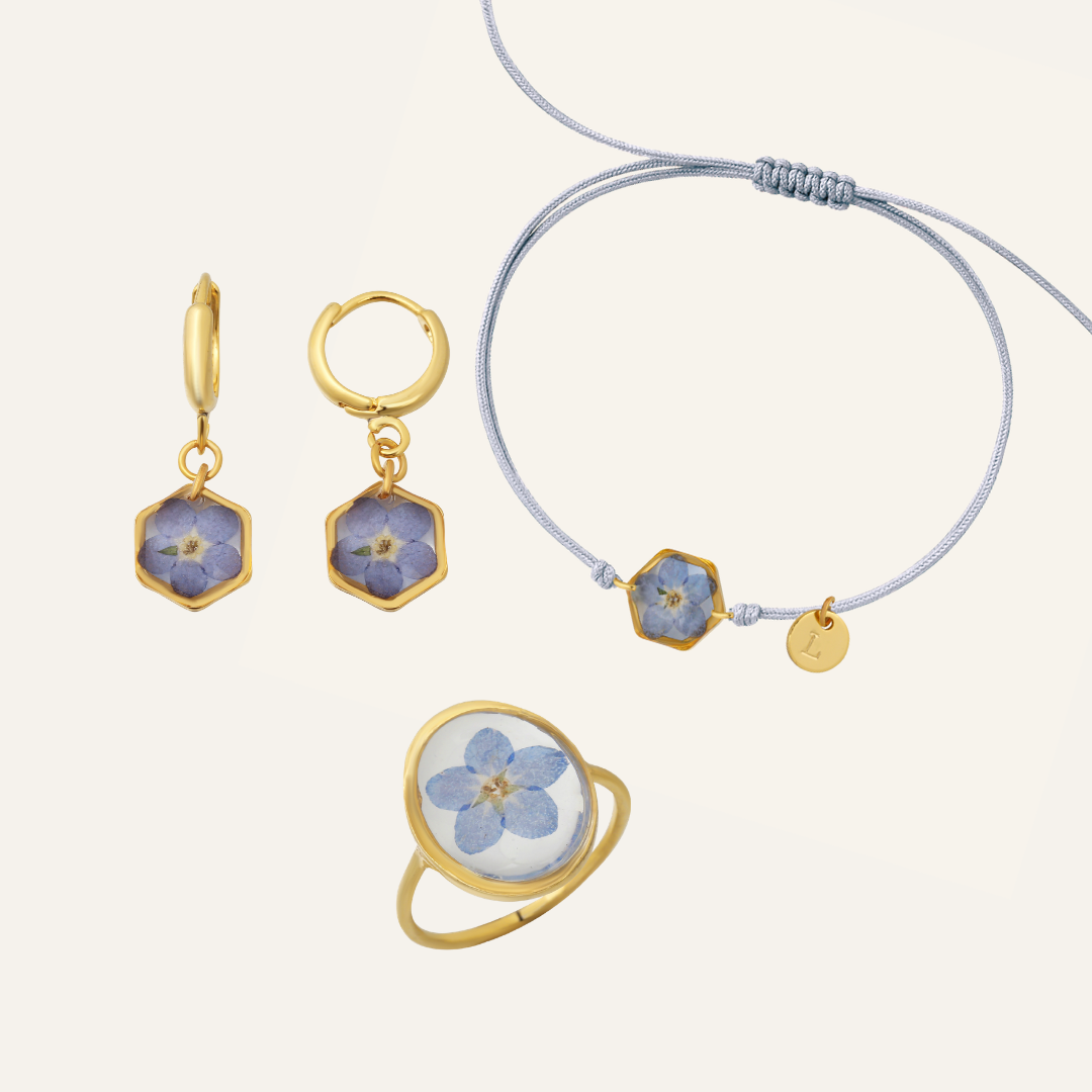 Forget Me Not Drop Set; günlük kullanımda zarif bir tamamlayıcı olurken aynı zamanda her takıldığında özel bir anıyı hatırlatan küçük bir hatıra taşır.