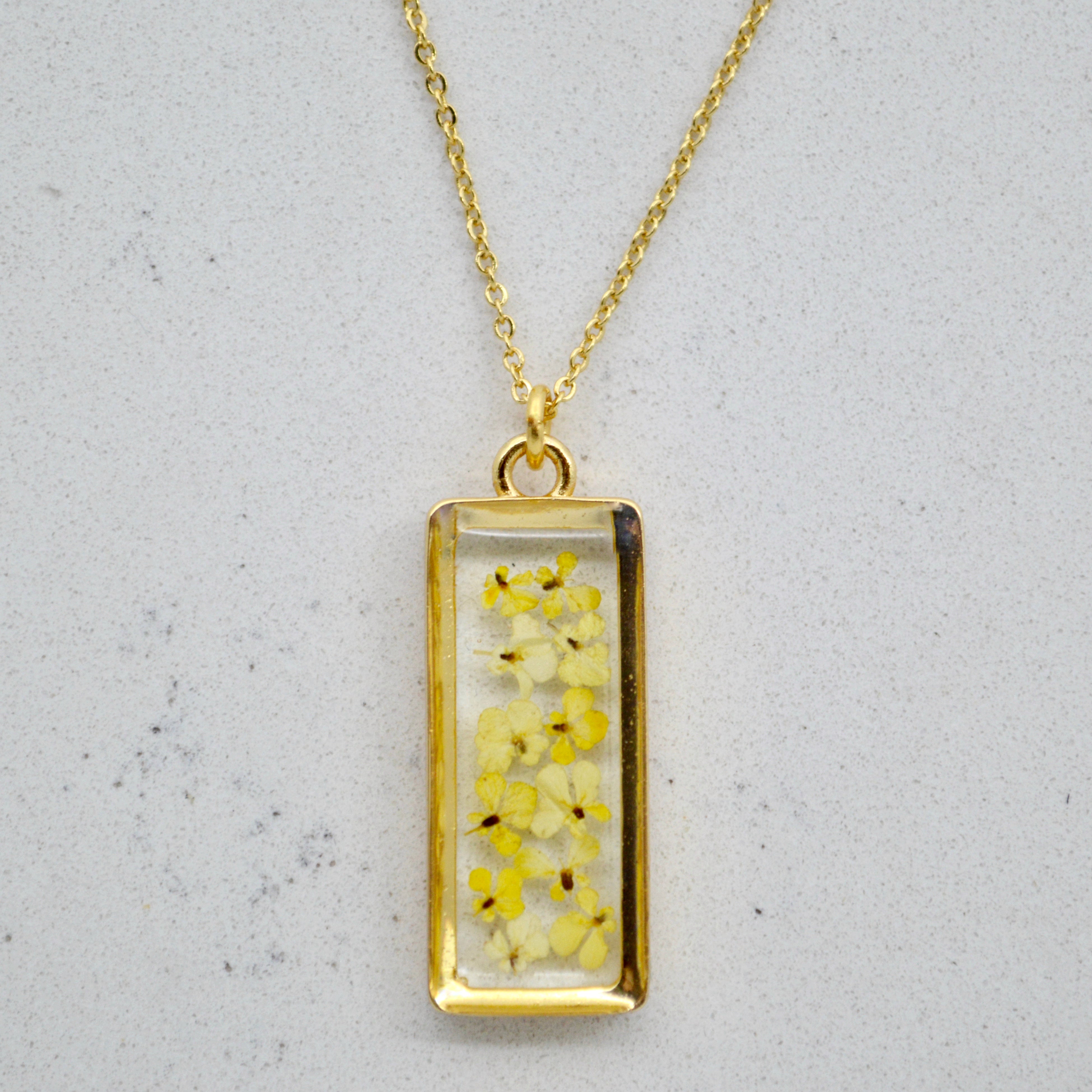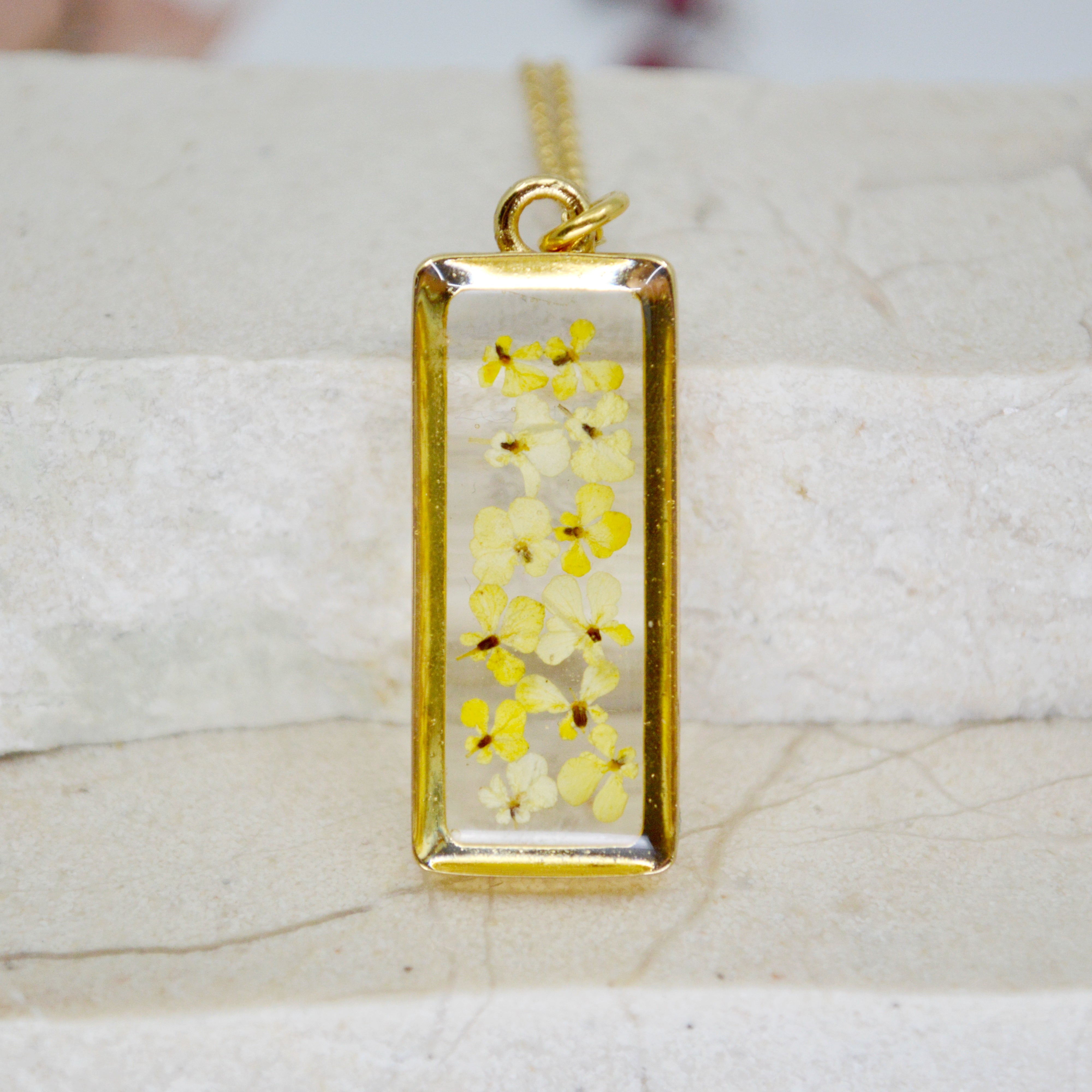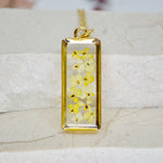 After the flowers have completed the drying process, each one is carefully cut into tiny pieces. Each flower piece is fixed with resin and protected. In this way, the elegant texture of nature is preserved for a long time and becomes immortal in the jewelry. Every detail is meticulously processed and gives life to the jewelry.