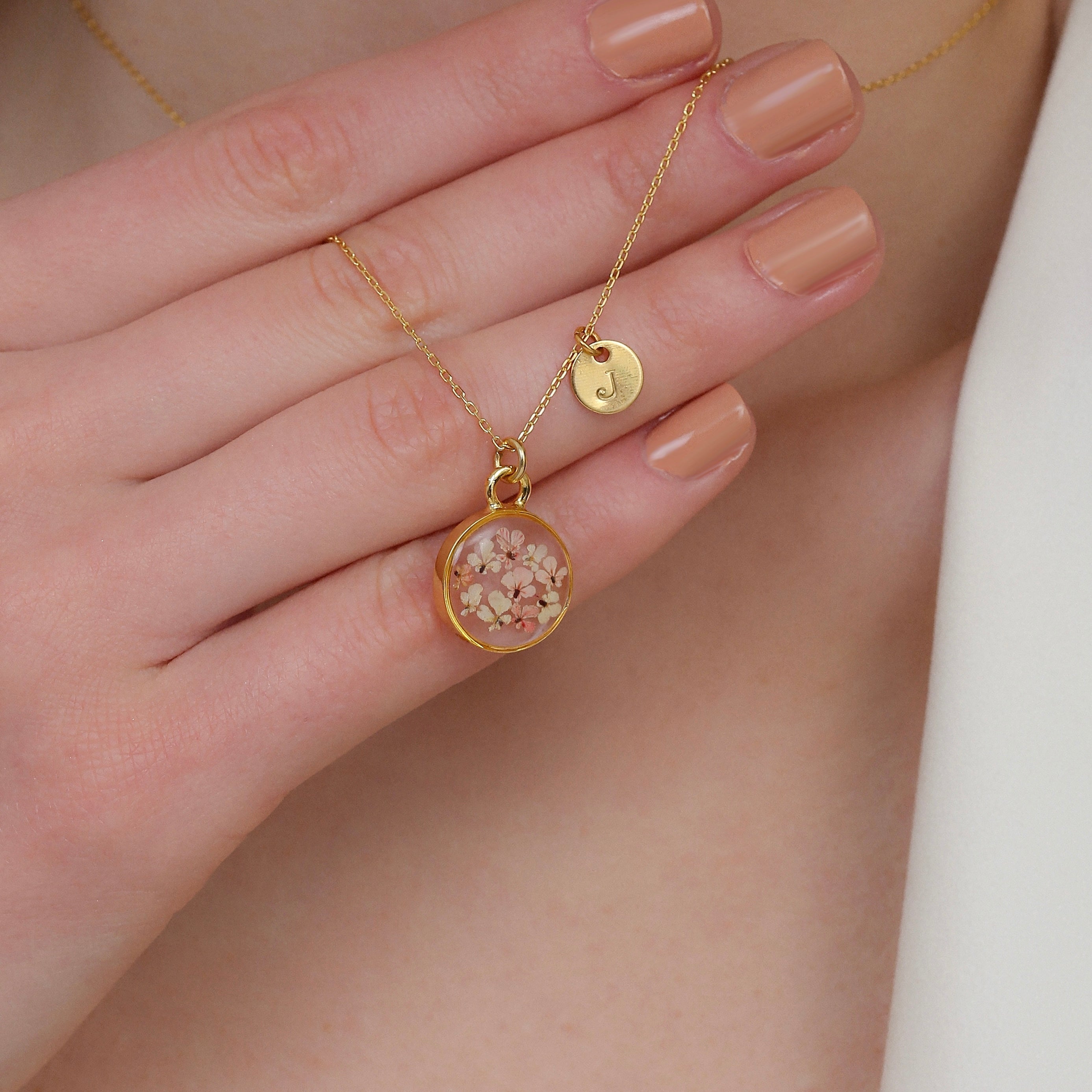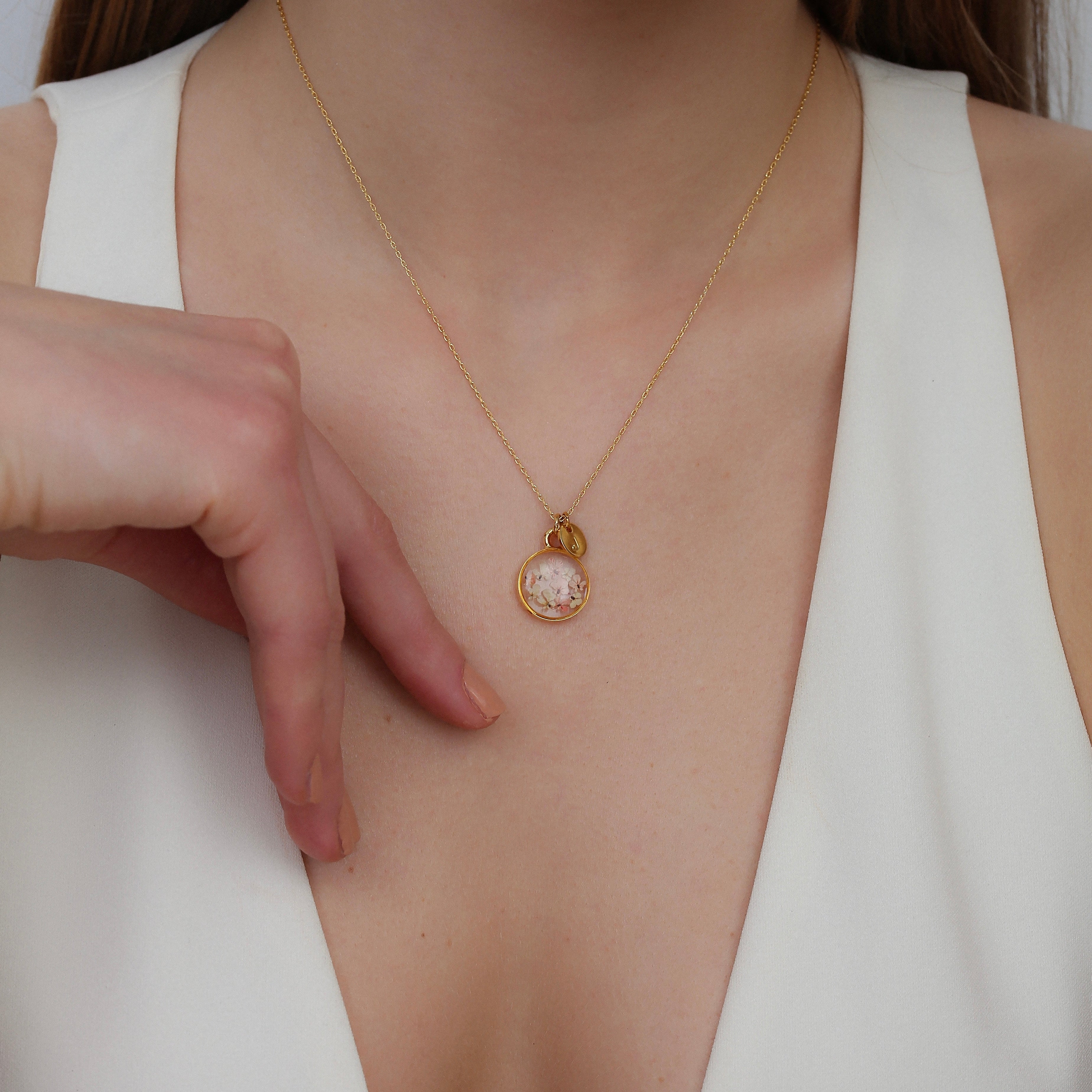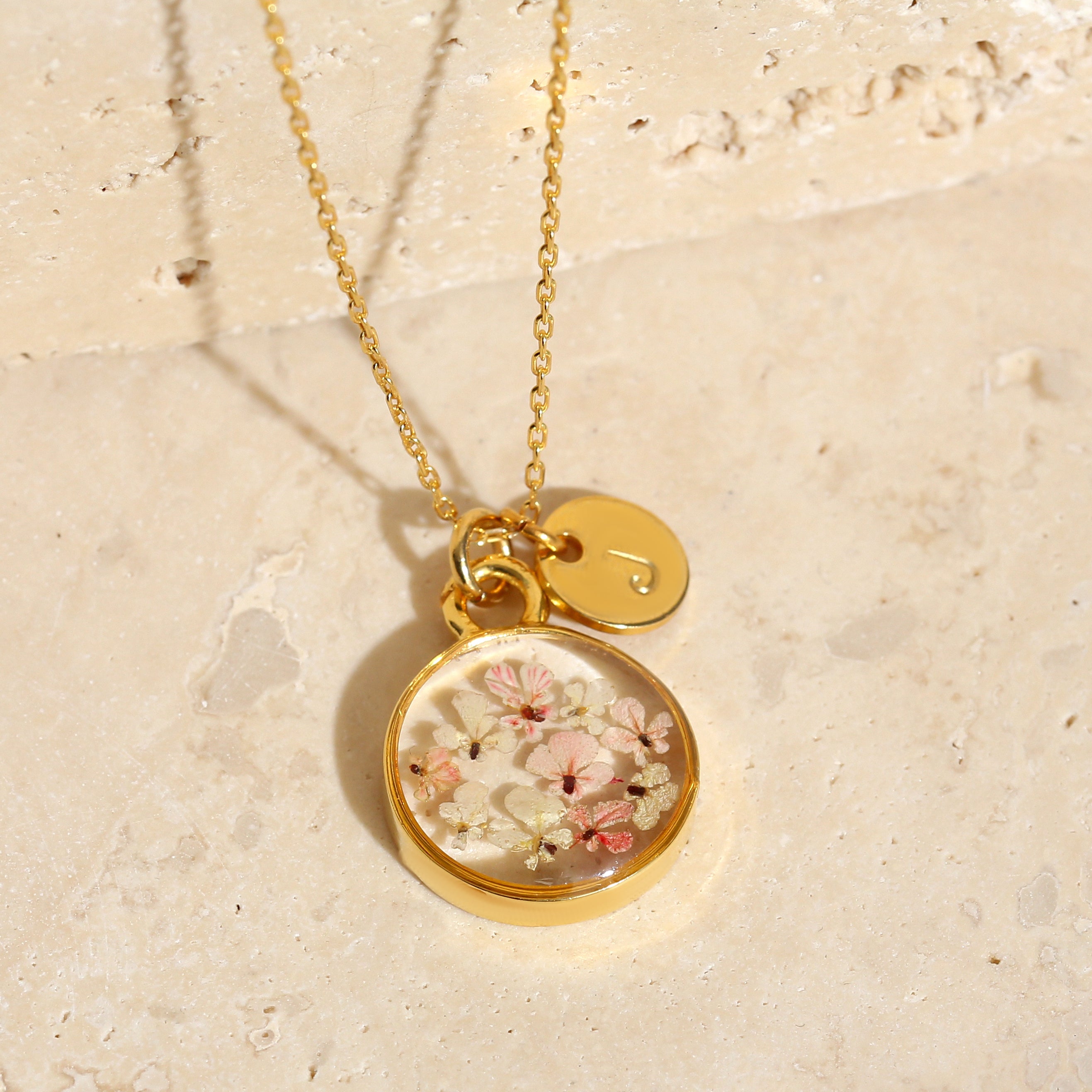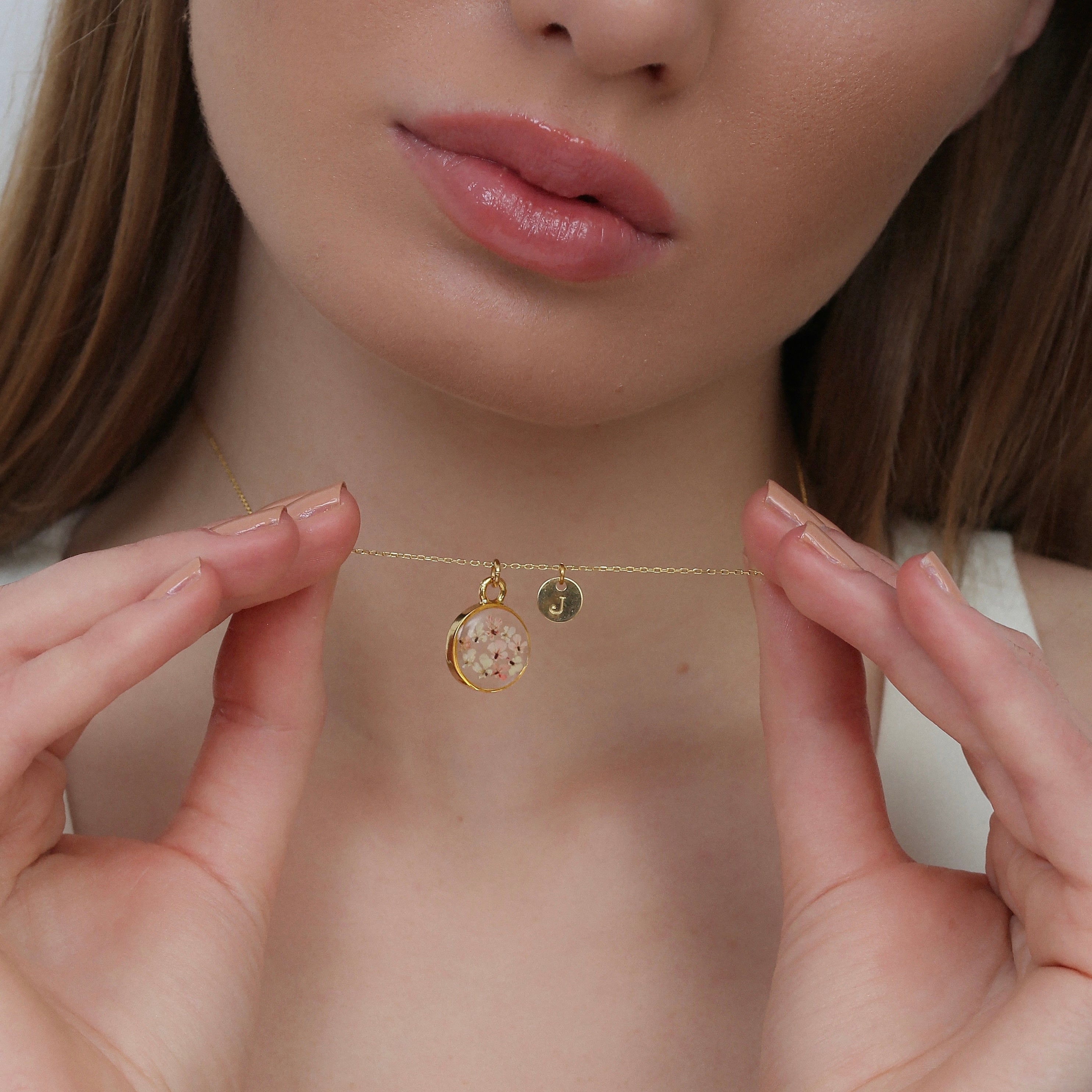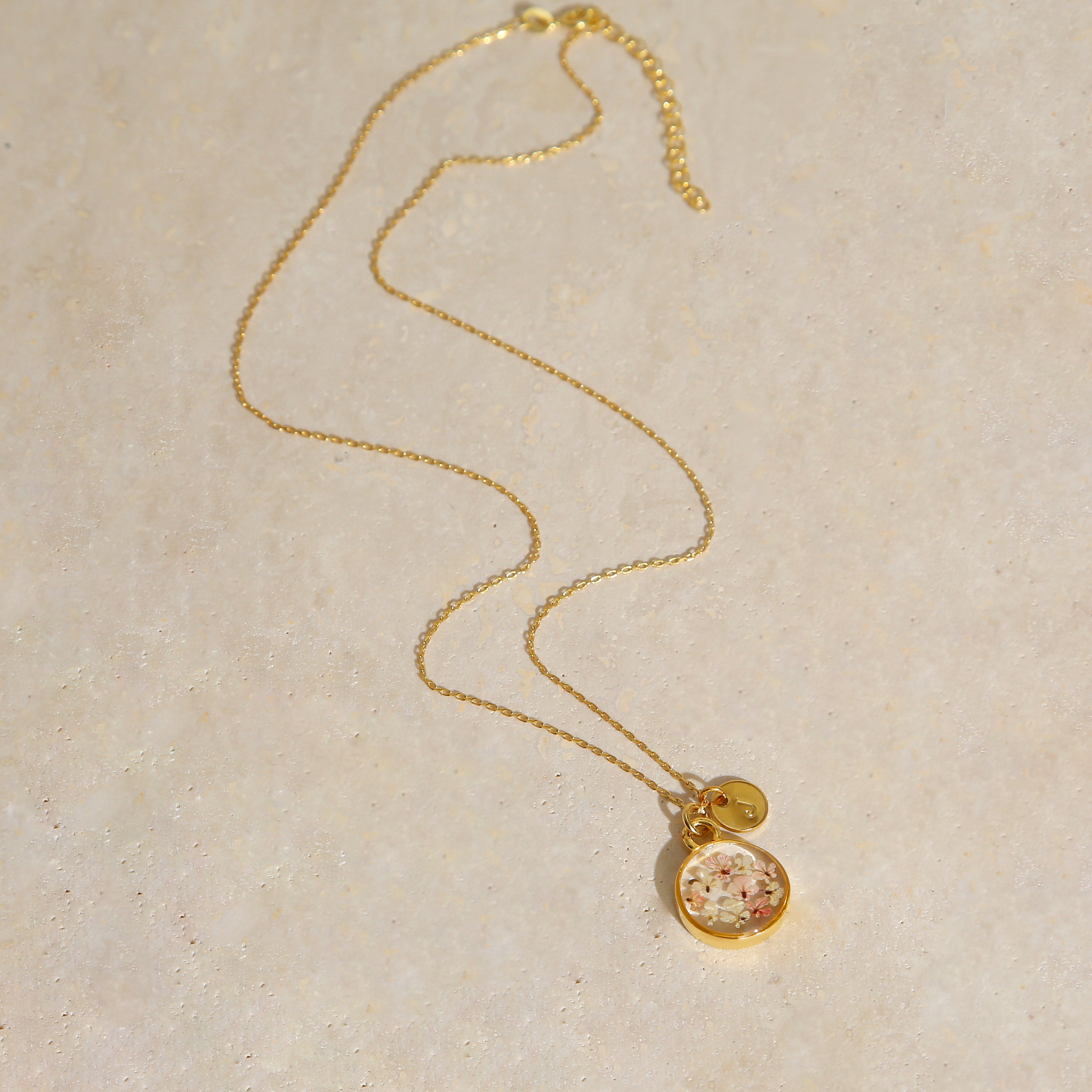 After the flowers have completed the drying process, each one is carefully cut into tiny pieces. Each flower piece is fixed with resin and protected. In this way, the elegant texture of nature is preserved for a long time and becomes immortal in the jewelry. Every detail is meticulously processed and gives life to the jewelry.