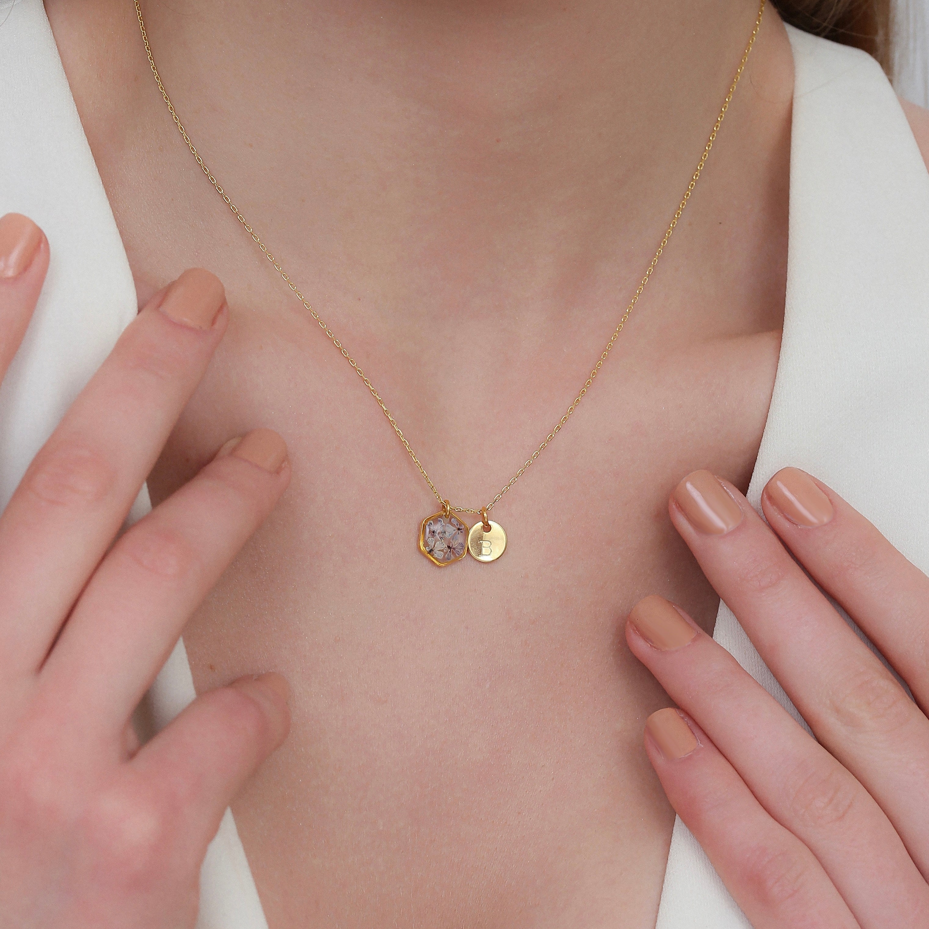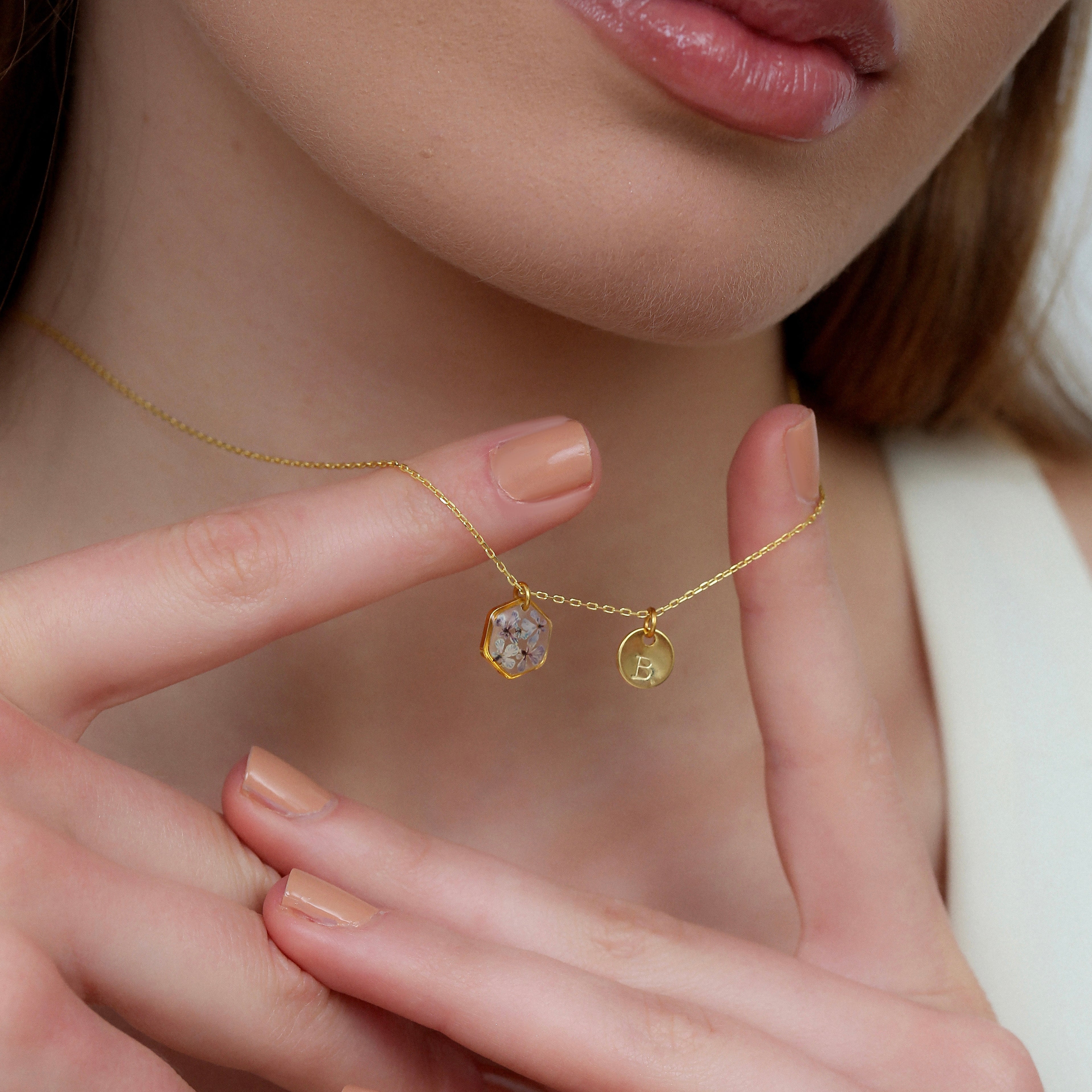 After the flowers have completed the drying process, each one is carefully cut into tiny pieces. Each flower piece is fixed with resin and protected. In this way, the elegant texture of nature is preserved for a long time and becomes immortal in the jewelry. Every detail is meticulously processed and gives life to the jewelry.