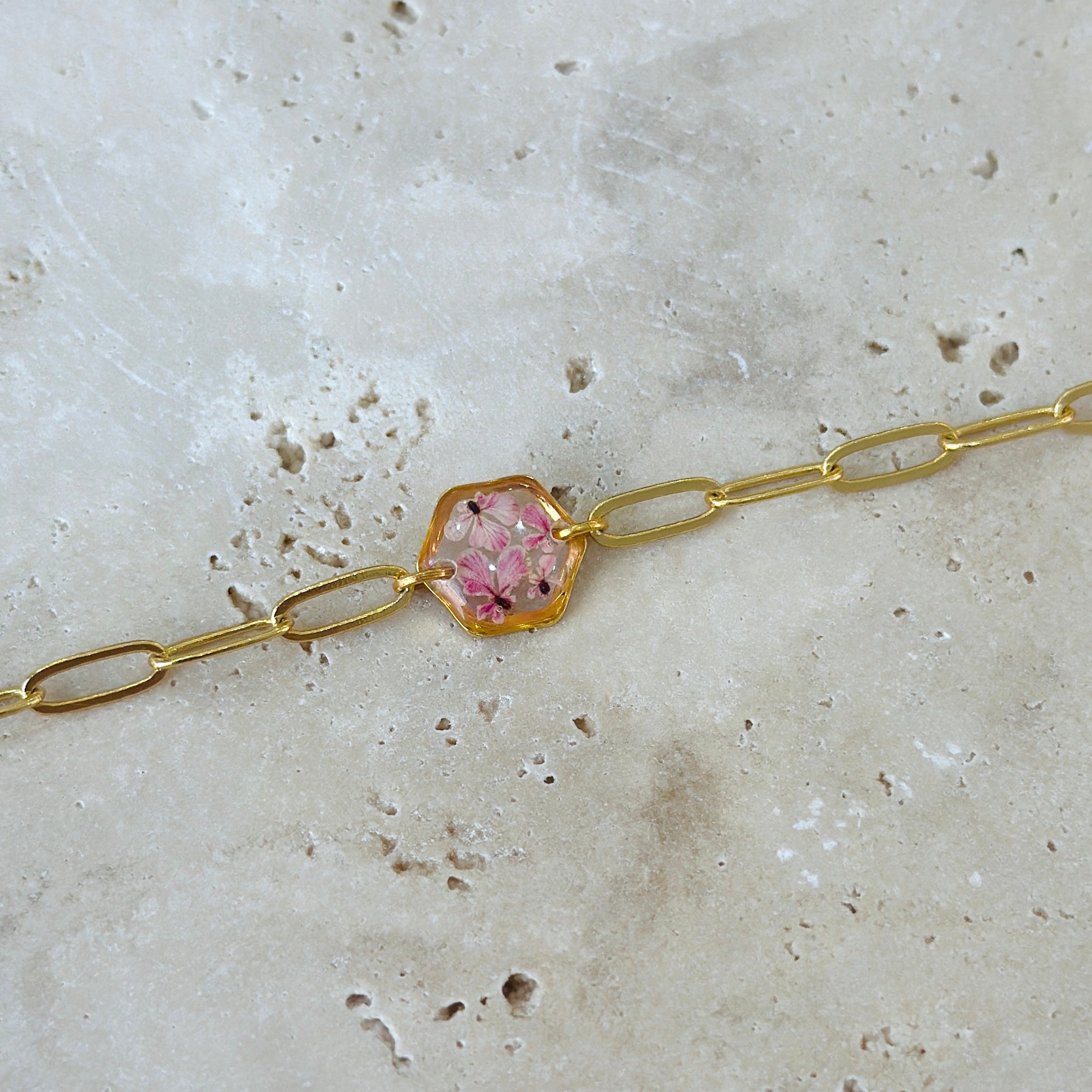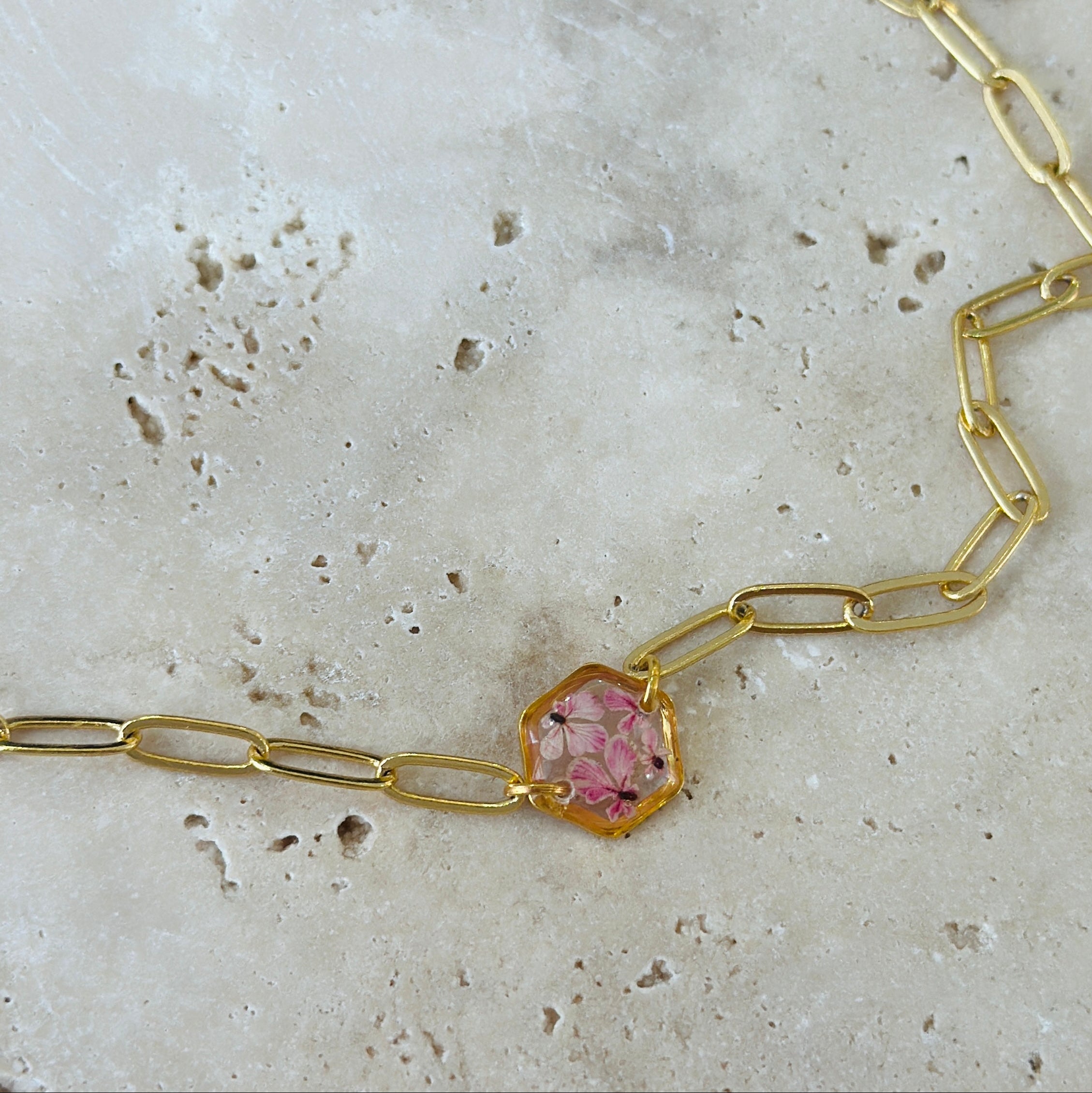 After the flowers have completed the drying process, each one is carefully cut into tiny pieces. Each flower piece is fixed with resin and protected. In this way, the elegant texture of nature is preserved for a long time and becomes immortal in the jewelry. Every detail is meticulously processed and gives life to the jewelry.
